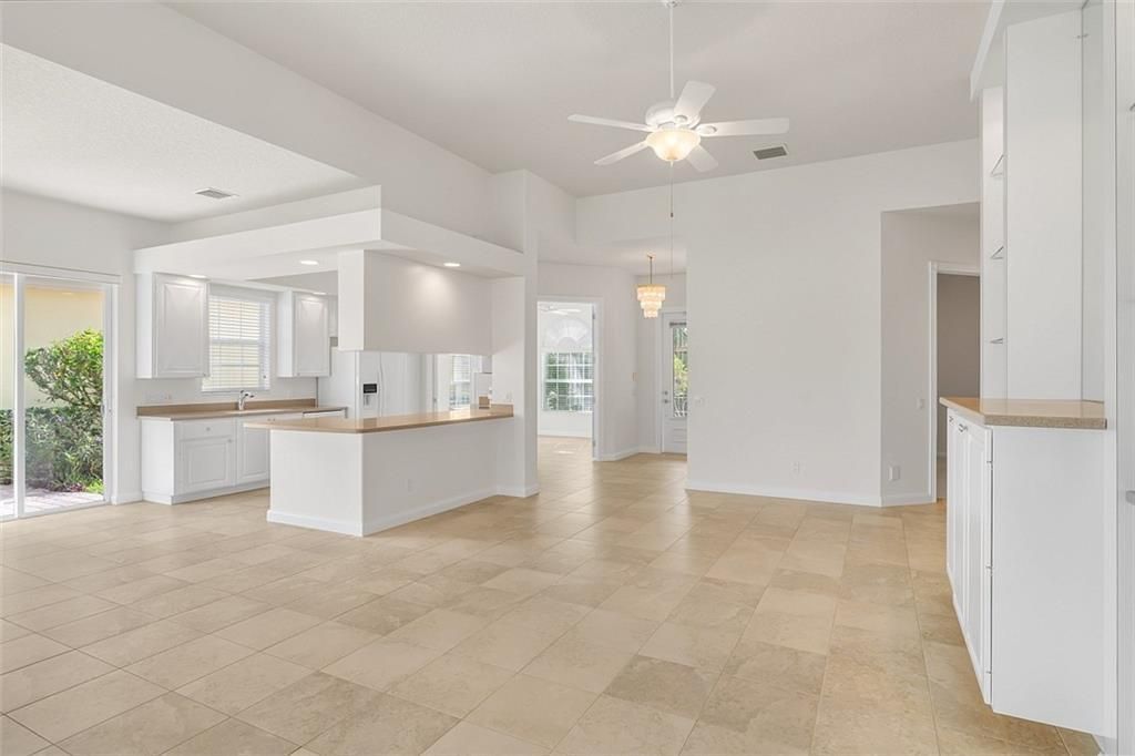 Relax and Enjoy this charming Oakmont Model Home - 3BD/3BA w/Den overlooking the lake! NEW 2025 AC; Freshly painted inside & out included the 2 car garage. The Kitchen boasts white cabinets & corian countertops; white appliances; tile throughout main living area; beautiful built-in wall unit w/glass shelves; new carpet in Primary Bedroom w/walk in the closets & his & her bathroom; accordion shutters. Extended brick paver patio to enjoy Florida's sunrises and sunsets. Resort style amenities incl. clubhouse, heated pool, tennis/pickleball courts, fitness center and gathering area for our many social events!