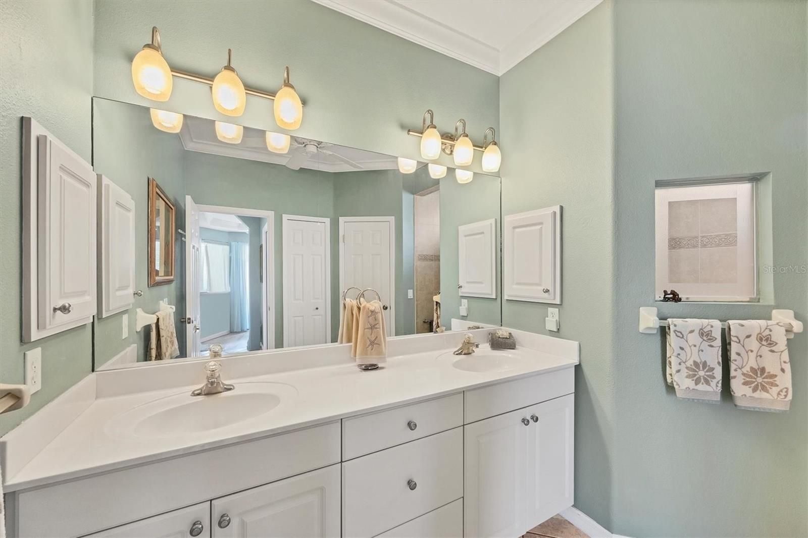 *HERON CREEK GOLF AND CC** Panoramic GOLF & WATER VIEWS | 3 Bed | 2 Bath | POOL AND SPA ! Welcome to "VISTA VERDE" this pristine and move-in-ready home is ideally positioned on an oversized lot overlooking the 6th fairway of the Oaks Course. With sweeping views of lush green fairways and sparkling water, this casually elegant retreat embodies the Florida lifestyle. Step through double glass entry doors into a light and airy interior where high ceilings, classic crown molding, and ceramic tile laid on the diagonal create timeless appeal. A fresh neutral color palette is beautifully accented with pops of succulent green, soft sage, sea glass and sand tones, all complemented by crisp bright trim and thoughtful architectural detailing. The popular “open concept” floor plan features a designated dining area spacious great room with a cascading wall of sliding glass doors that seamlessly blend indoor and outdoor living. The kitchen is as functional as it is stylish, boasting: Steepled cabinetry with abundant storage Solid surface countertops and generous workspace, Tumbled tile backsplash and under-cabinet lighting for ambiance, Slate appliance suite, Built-in desk and double-door pantry and a sun-filled dining nook framed by a charming 2-panel aquarium window. Guests will enjoy privacy with a full suite at the front of the home, while a third bedroom off the great room is ideal as a convertible home office, featuring a custom closet redesign—perfect for the “not-quite-retired” or work-from-home lifestyle. The primary suite is a true sanctuary, offering ample space for a sitting area, a large walk-in closet, direct access to the lanai, and an ensuite bath with: Oversized walk-in shower, Dual-sink vanity, Private water closet, and Generous linen storage closet. Step outside to a spacious covered lanai, perfect for relaxing or entertaining. Expand your shade with the motorized awning or take a dip in the heated pool and spa while soaking in unobstructed golf course views from the CLEARVIEW lanai screening. This home is move in ready, sports a NEW TILE ROOF(2024), Freshly epoxied garage floor, meticulously maintained systems, and her stylish furnishings will be available under separate contract. This home exudes a fresh, coastal, and casually elegant vibe—a true gem in one of North Port’s most desirable gated golf communities. Heron Creek offers exceptional amenities including a 21,000 sq ft clubhouse, 27 holes of Championship golf Arthur Hills design, resort style pool & spa, a robust social calendar, fitness center, Tennis courts & formal & casual dining options! *NO CDD FEES * LOW HOA FEES conveniently located w/easy access to I-75 & US-41, Cocoa Plum Shopping , WELLEN PARK, Braves Stadium, COSTCO & just 3 miles to the new 450 Million SMH Hospital Coming to I-75 / Sumter Blvd!