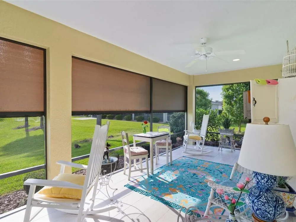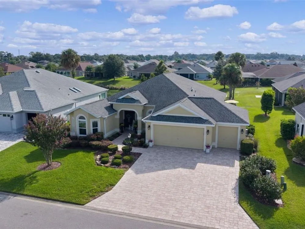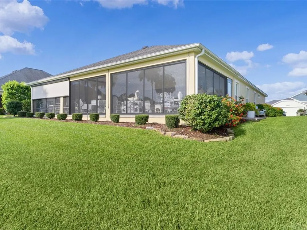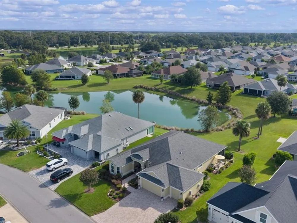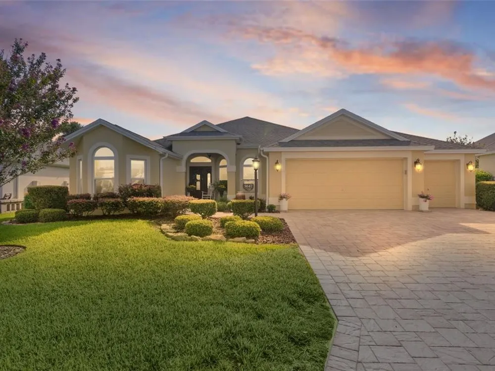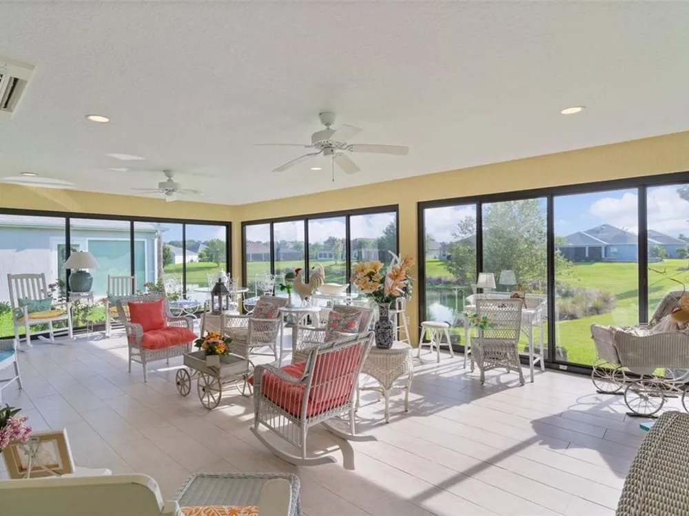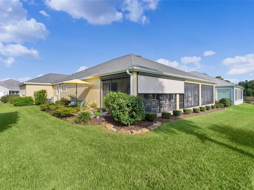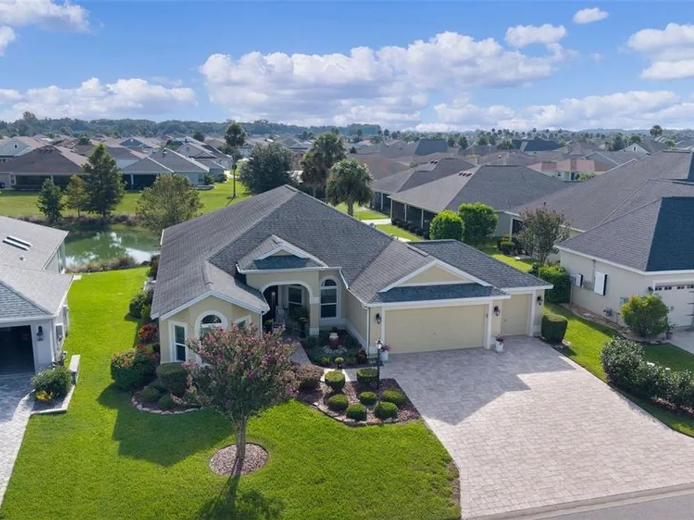 Welcome to this stunning expanded Gardenia model in the highly sought-after Village of Fenney! From the moment you arrive, you’ll be captivated by the beautiful water feature that sets the tone for the elegance and serenity this home offers. Inside, the open layout has been thoughtfully designed without the standard Gardenia dining room columns, creating a seamless, spacious flow throughout the main living areas. The home features 3 bedrooms and 2 bathrooms, each bedroom offering a built-in closet for convenience. The gourmet kitchen is equipped with granite countertops, light contemporary cabinetry, and a charming breakfast nook, while the home also boasts a formal dining room and formal living room—ideal for both everyday living and entertaining. The expansive enclosed, air-conditioned lanai is truly a highlight, overlooking a tranquil pond view. With two oversized sections, it provides the perfect setting for entertaining guests or enjoying peaceful Florida evenings. The luxurious master suite offers a spa-like retreat with split vanities, his & hers walk-in closets, and a roll-in walk-in shower, blending comfort and accessibility. Additional features include: *Vaulted and high ceilings with rounded corners for a refined finish *Ceramic tile throughout living areas and cozy carpet in the bedrooms *2-car garage PLUS golf cart garage with pull-down attic stairs *Whole-house water purifier This block stucco home combines high-end details with thoughtful functionality, all set in the natural beauty and vibrant lifestyle of The Villages.
