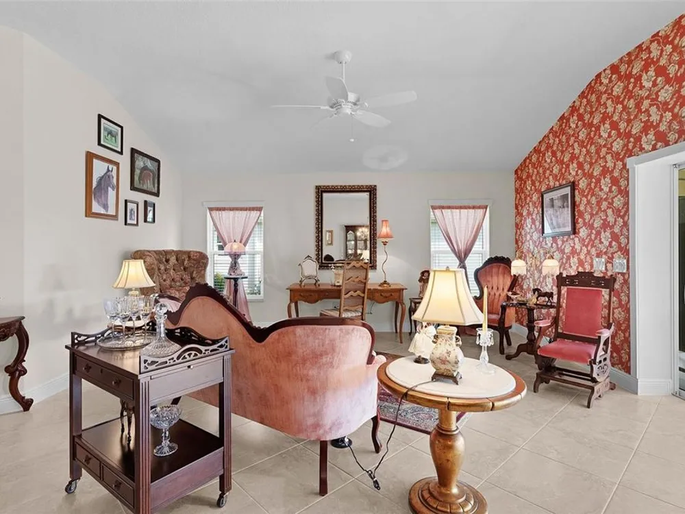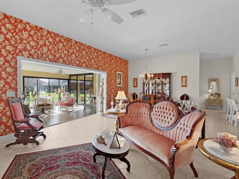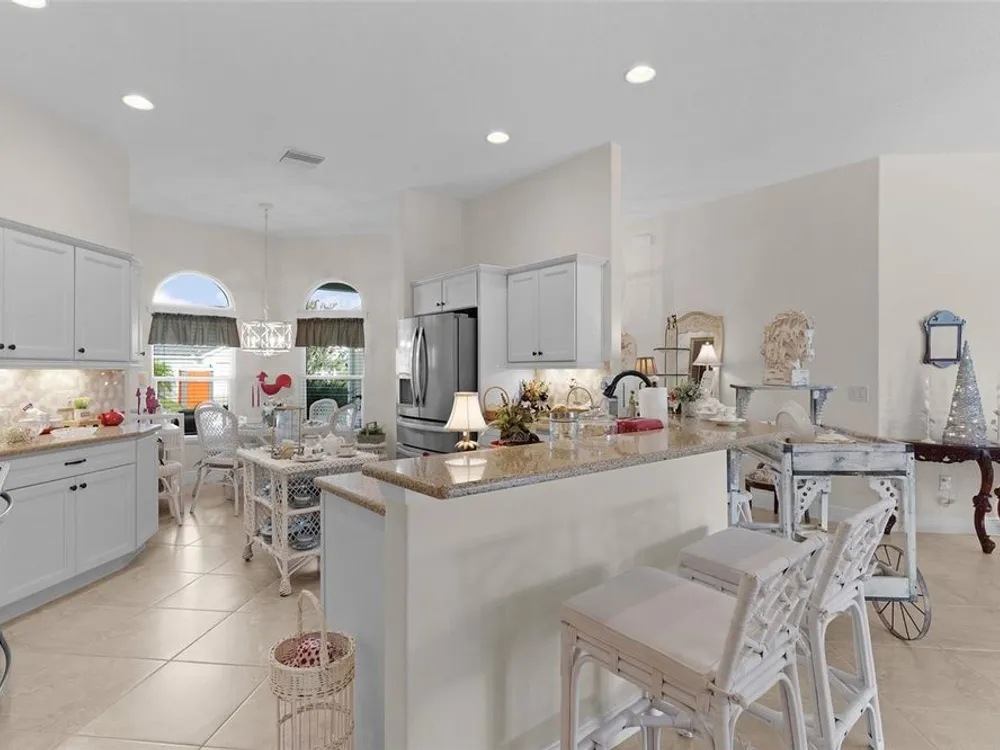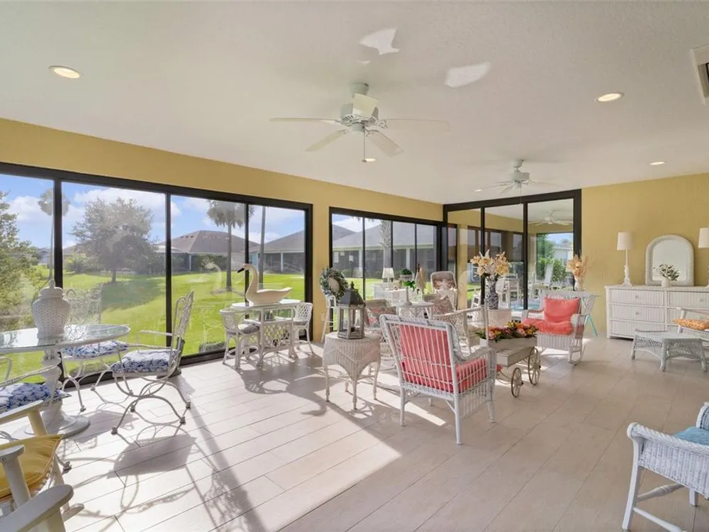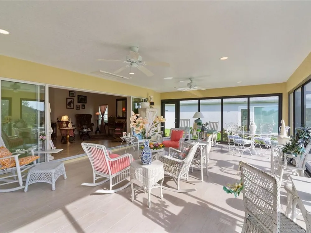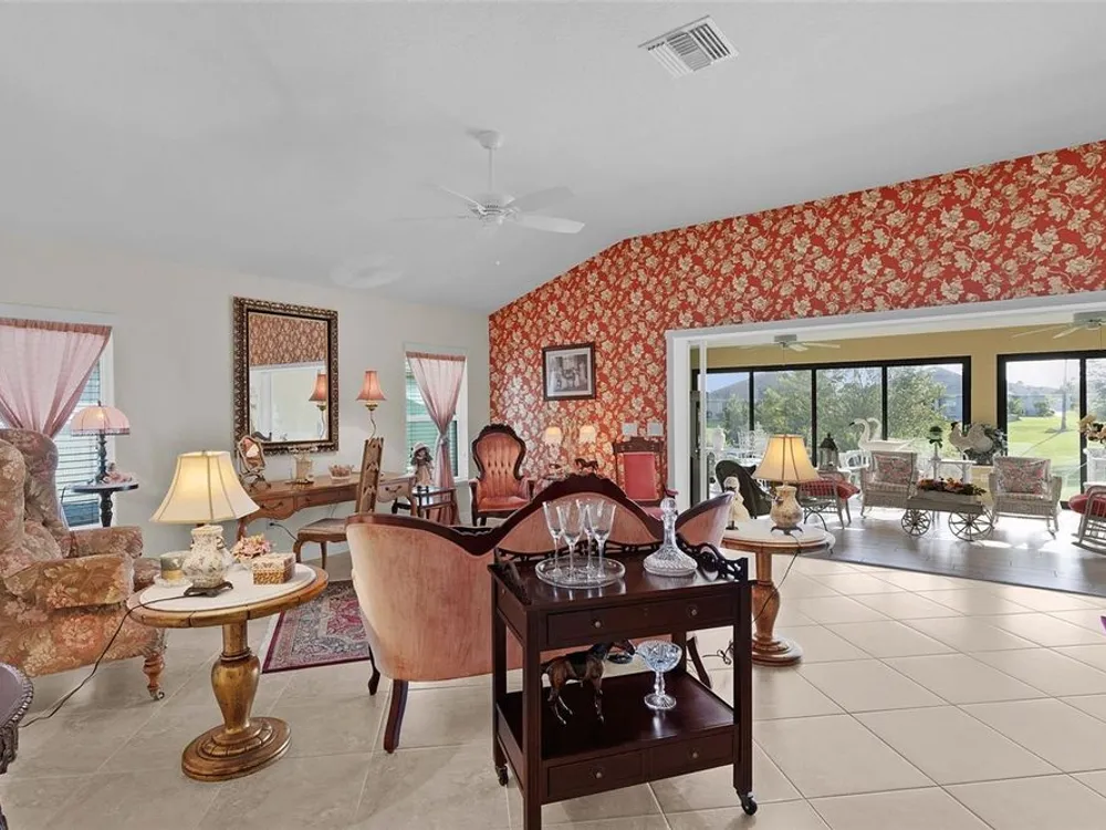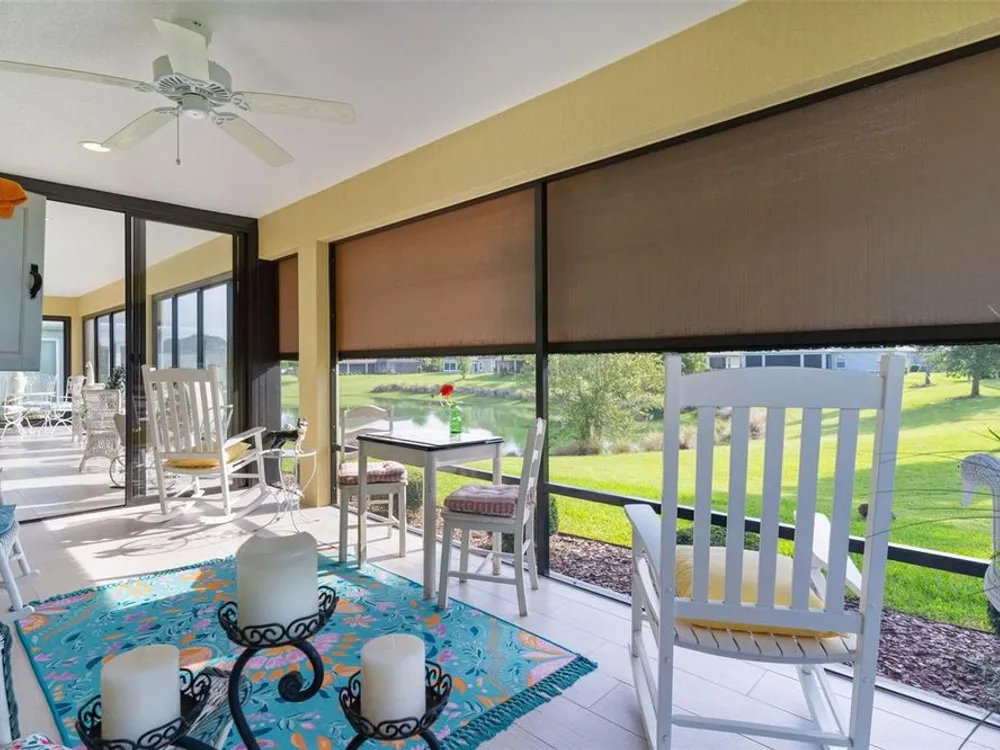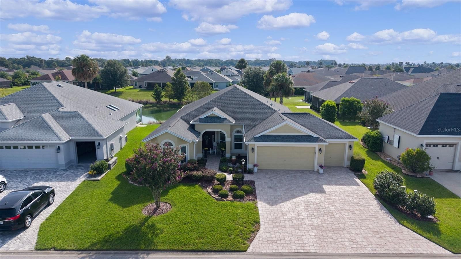 Welcome to this stunning expanded Gardenia model in the highly sought-after Village of Fenney! From the moment you arrive, you’ll be captivated by the beautiful water feature that sets the tone for the elegance and serenity this home offers. Inside, the open layout has been thoughtfully designed without the standard Gardenia dining room columns, creating a seamless, spacious flow throughout the main living areas. The home features 3 bedrooms and 2 bathrooms, each bedroom offering a built-in closet for convenience. The gourmet kitchen is equipped with granite countertops, light contemporary cabinetry, and a charming breakfast nook, while the home also boasts a formal dining room and formal living room—ideal for both everyday living and entertaining. The expansive enclosed, air-conditioned lanai is truly a highlight, overlooking a tranquil pond view. With two oversized sections, it provides the perfect setting for entertaining guests or enjoying peaceful Florida evenings. The luxurious master suite offers a spa-like retreat with split vanities, his & hers walk-in closets, and a roll-in walk-in shower, blending comfort and accessibility. Additional features include: *Vaulted and high ceilings with rounded corners for a refined finish *Ceramic tile throughout living areas and cozy carpet in the bedrooms *2-car garage PLUS golf cart garage with pull-down attic stairs *Whole-house water purifier This block stucco home combines high-end details with thoughtful functionality, all set in the natural beauty and vibrant lifestyle of The Villages.