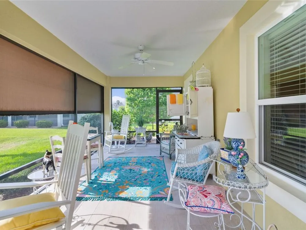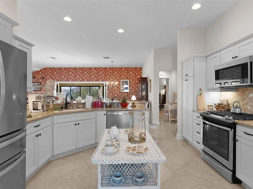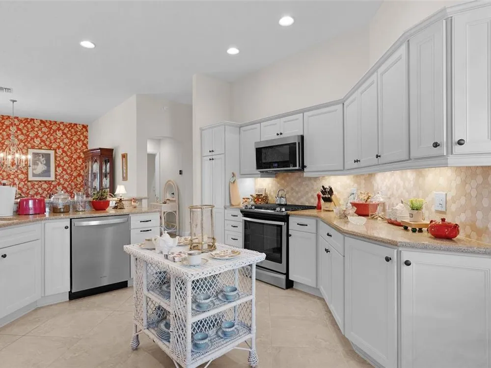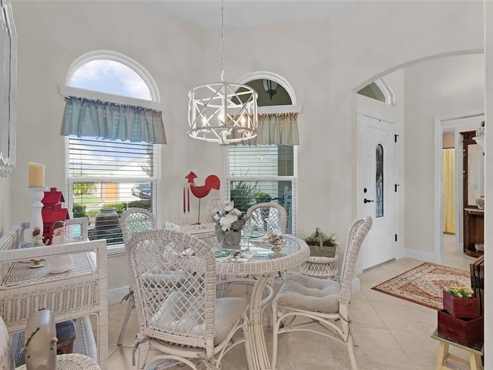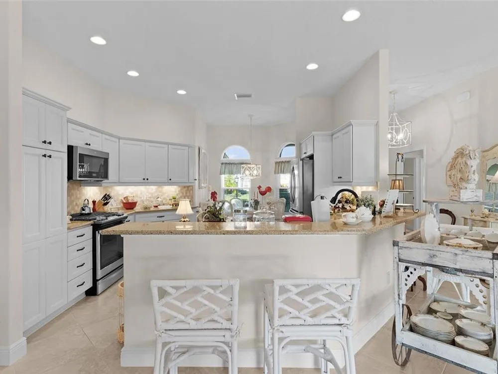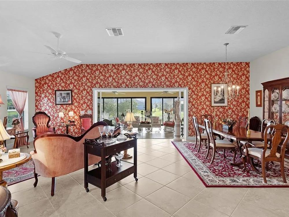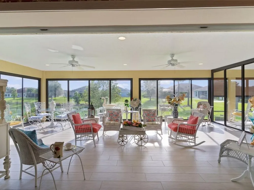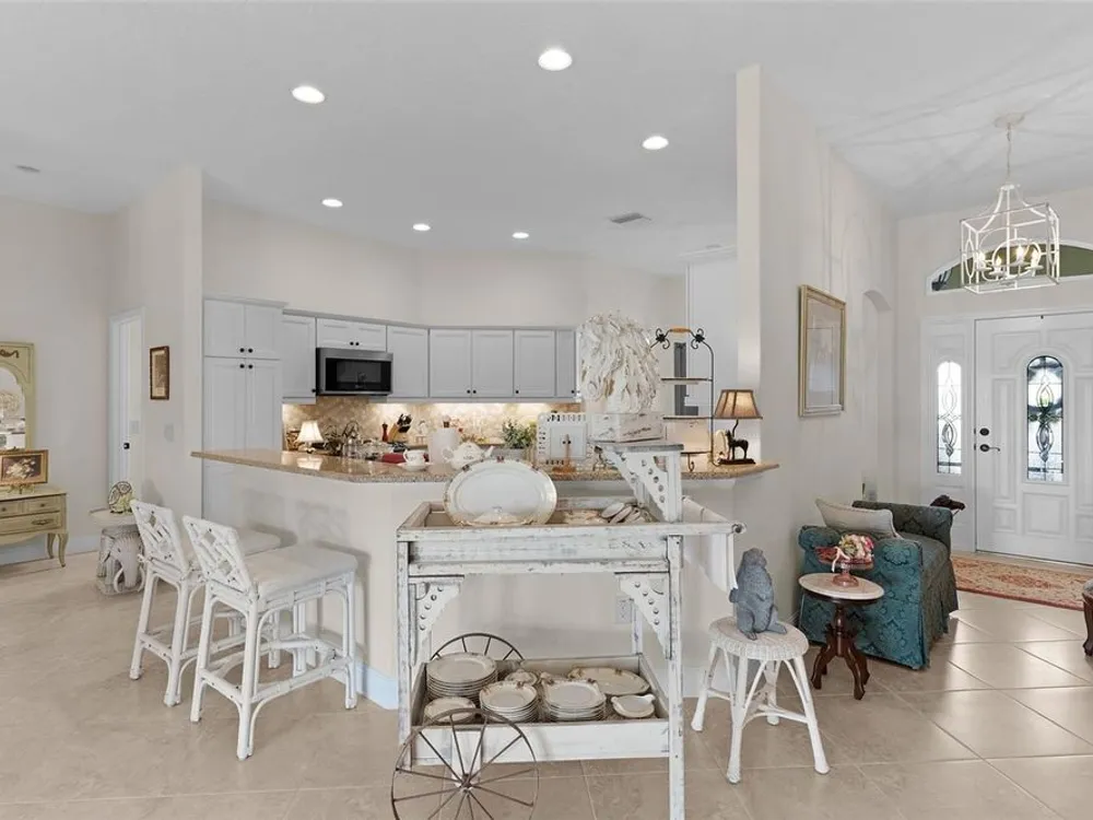Welcome to this stunning expanded Gardenia model in the highly sought-after Village of Fenney! From the moment you arrive, you’ll be captivated by the beautiful water feature that sets the tone for the elegance and serenity this home offers. Inside, the open layout has been thoughtfully designed without the standard Gardenia dining room columns, creating a seamless, spacious flow throughout the main living areas. The home features 3 bedrooms and 2 bathrooms, each bedroom offering a built-in closet for convenience. The gourmet kitchen is equipped with granite countertops, light contemporary cabinetry, and a charming breakfast nook, while the home also boasts a formal dining room and formal living room—ideal for both everyday living and entertaining. The expansive enclosed, air-conditioned lanai is truly a highlight, overlooking a tranquil pond view. With two oversized sections, it provides the perfect setting for entertaining guests or enjoying peaceful Florida evenings. The luxurious master suite offers a spa-like retreat with split vanities, his & hers walk-in closets, and a roll-in walk-in shower, blending comfort and accessibility. Additional features include: *Vaulted and high ceilings with rounded corners for a refined finish *Ceramic tile throughout living areas and cozy carpet in the bedrooms *2-car garage PLUS golf cart garage with pull-down attic stairs *Whole-house water purifier This block stucco home combines high-end details with thoughtful functionality, all set in the natural beauty and vibrant lifestyle of The Villages.