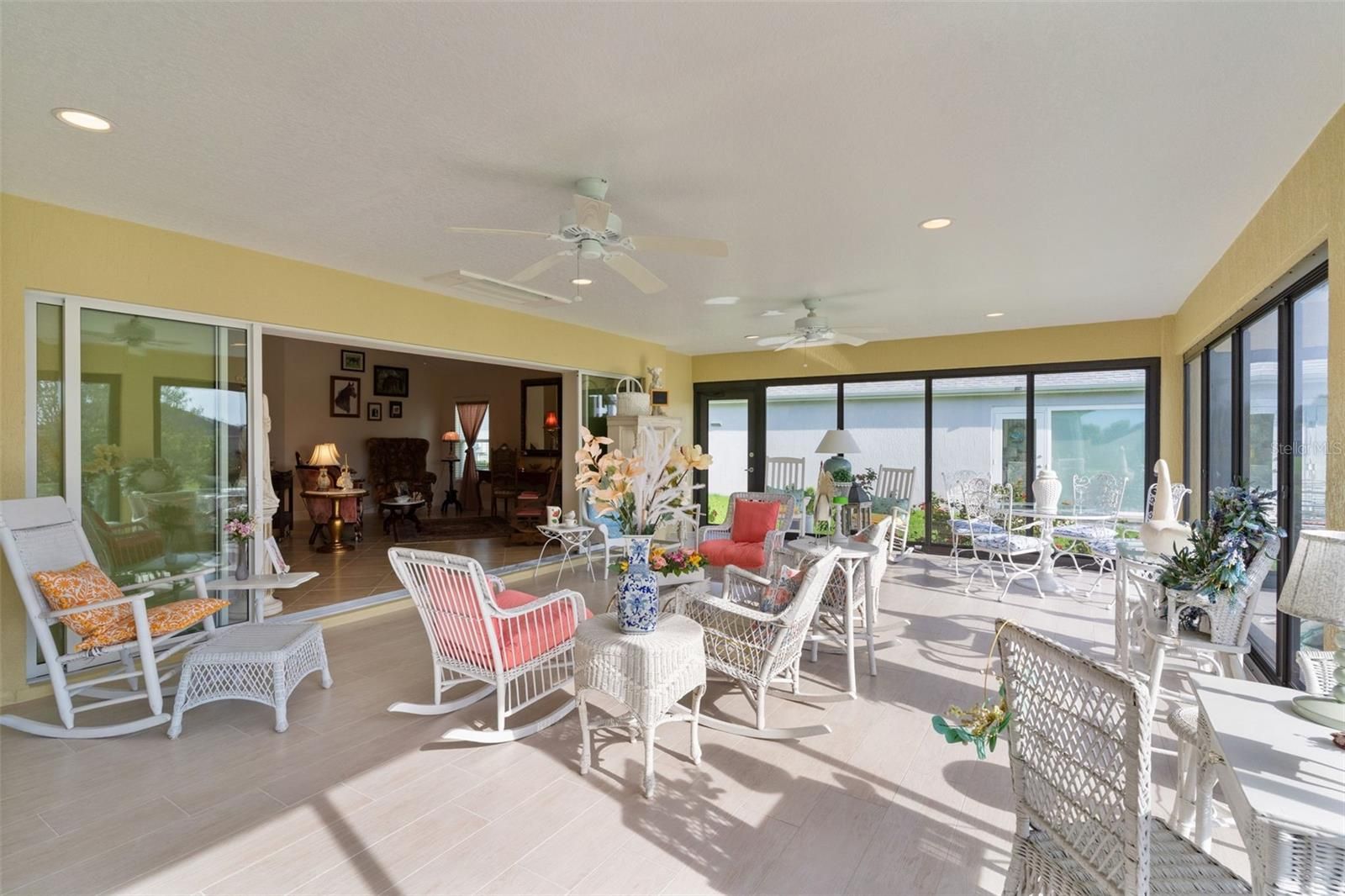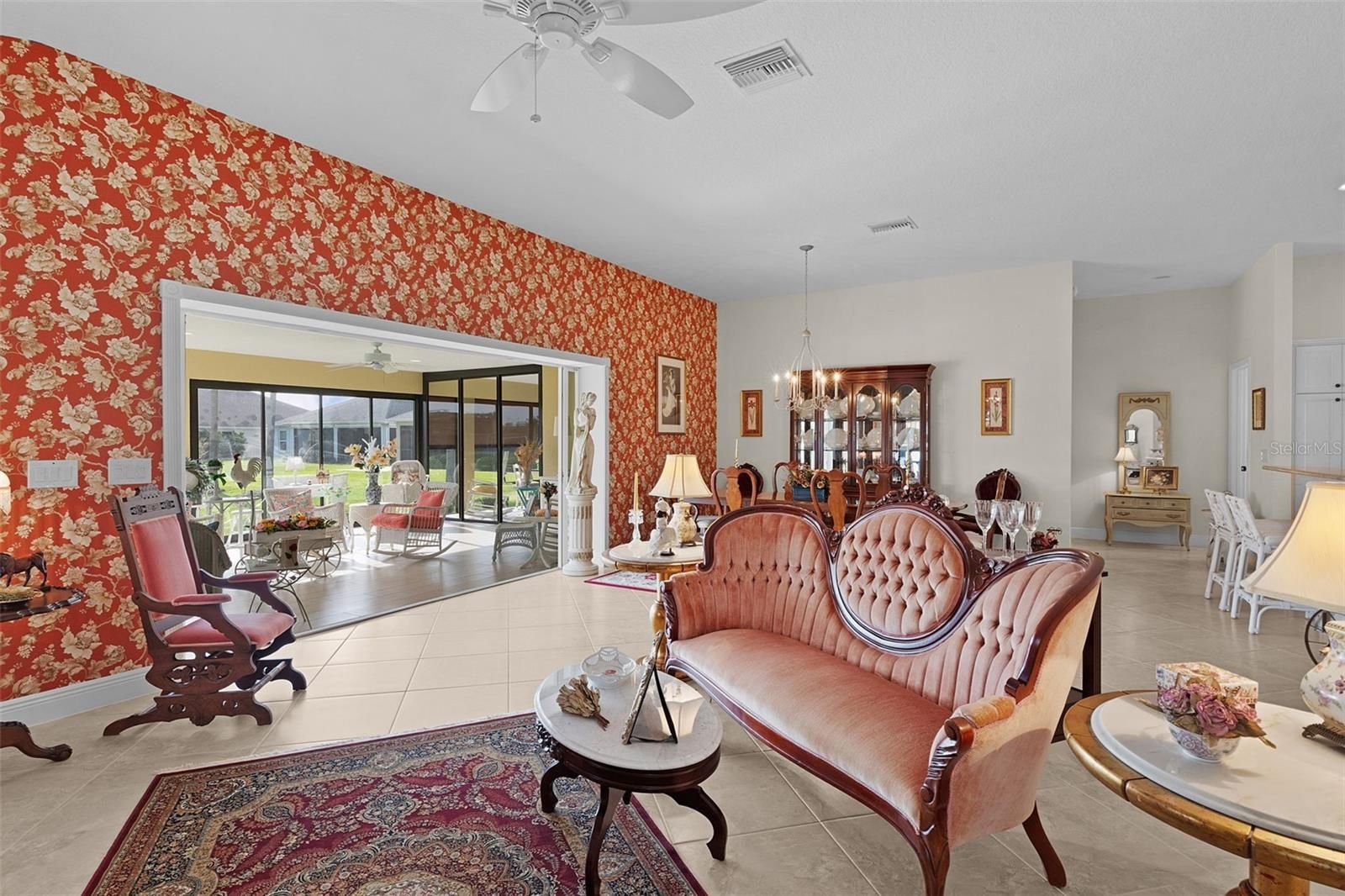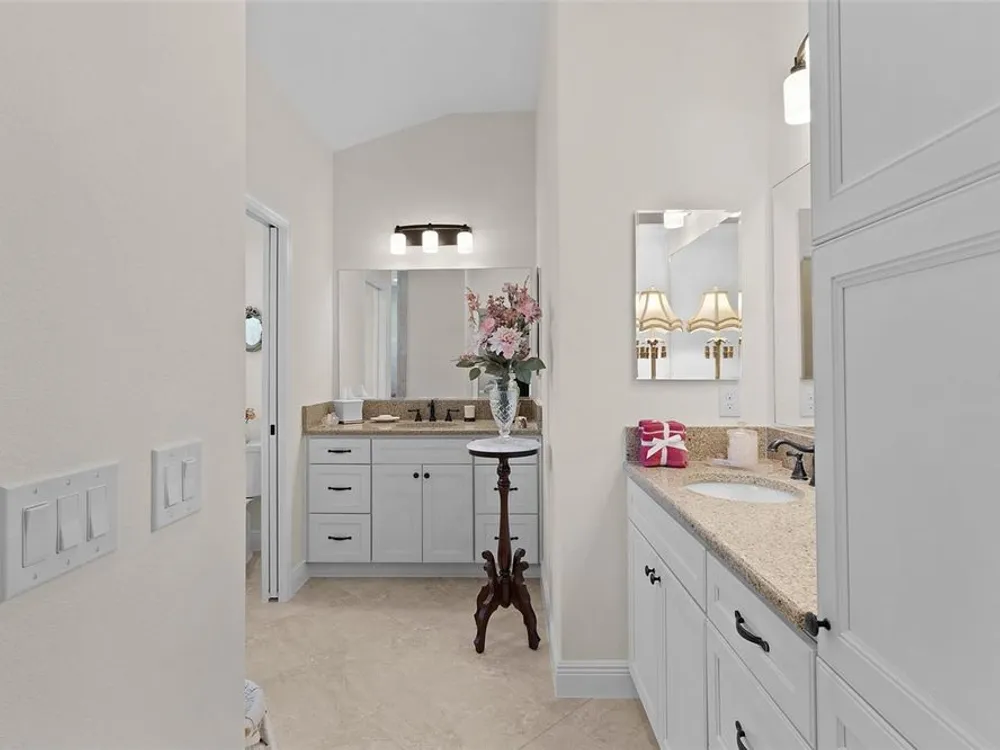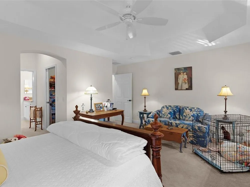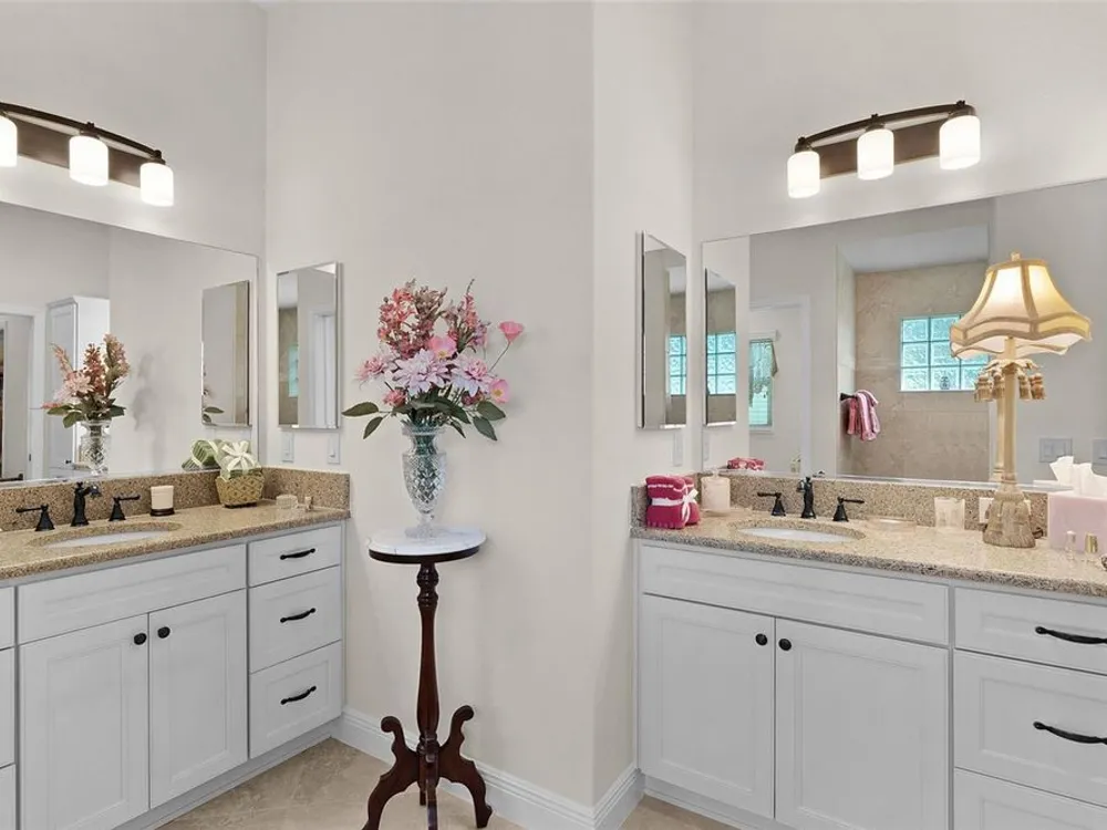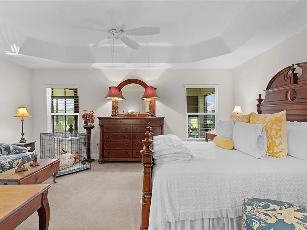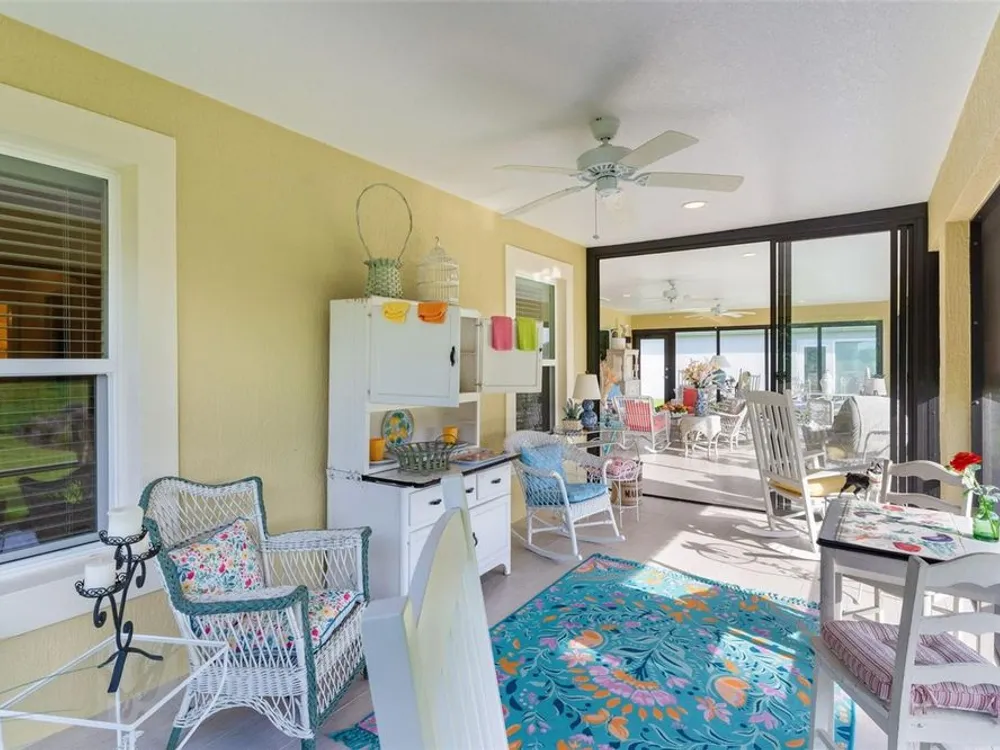 Welcome to this stunning expanded Gardenia model in the highly sought-after Village of Fenney! From the moment you arrive, you’ll be captivated by the beautiful water feature that sets the tone for the elegance and serenity this home offers. Inside, the open layout has been thoughtfully designed without the standard Gardenia dining room columns, creating a seamless, spacious flow throughout the main living areas. The home features 3 bedrooms and 2 bathrooms, each bedroom offering a built-in closet for convenience. The gourmet kitchen is equipped with granite countertops, light contemporary cabinetry, and a charming breakfast nook, while the home also boasts a formal dining room and formal living room—ideal for both everyday living and entertaining. The expansive enclosed, air-conditioned lanai is truly a highlight, overlooking a tranquil pond view. With two oversized sections, it provides the perfect setting for entertaining guests or enjoying peaceful Florida evenings. The luxurious master suite offers a spa-like retreat with split vanities, his & hers walk-in closets, and a roll-in walk-in shower, blending comfort and accessibility. Additional features include: *Vaulted and high ceilings with rounded corners for a refined finish *Ceramic tile throughout living areas and cozy carpet in the bedrooms *2-car garage PLUS golf cart garage with pull-down attic stairs *Whole-house water purifier This block stucco home combines high-end details with thoughtful functionality, all set in the natural beauty and vibrant lifestyle of The Villages.
