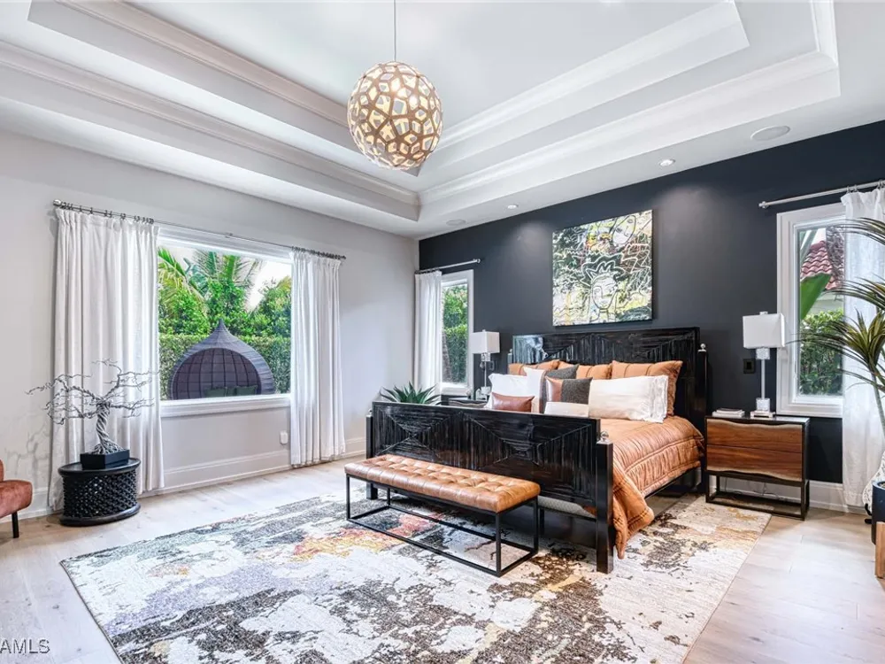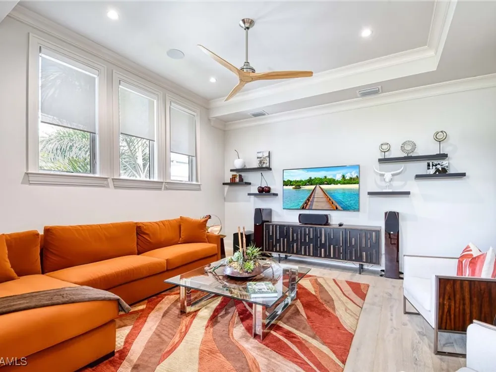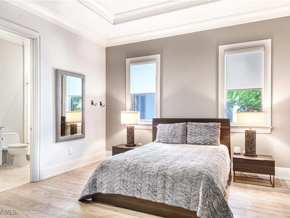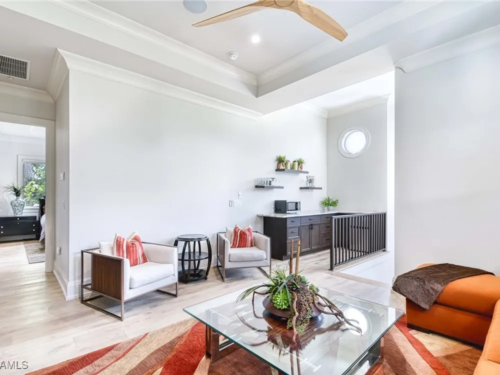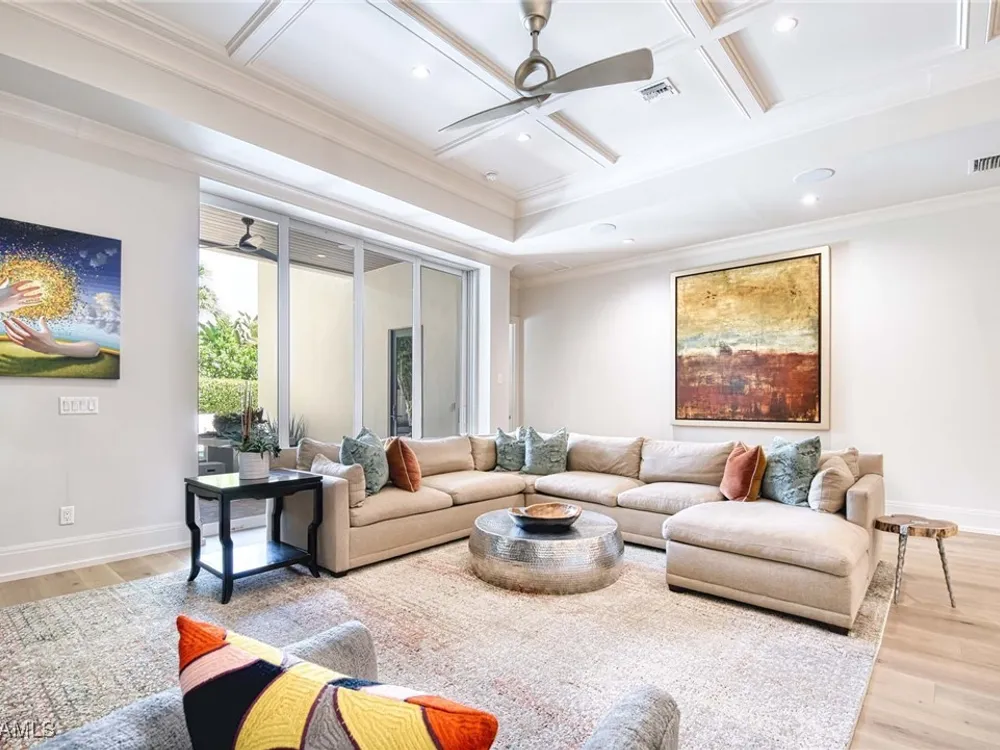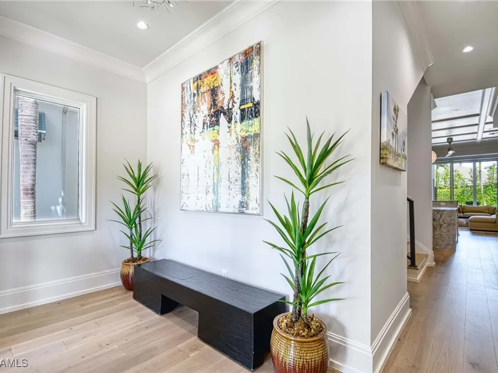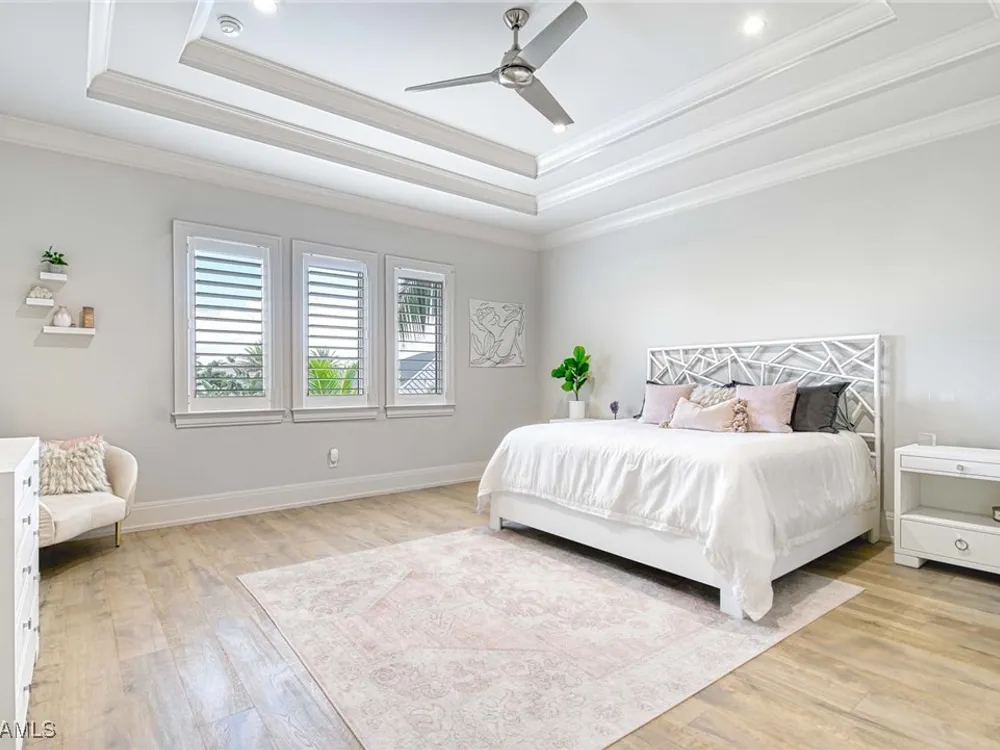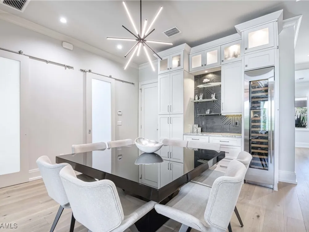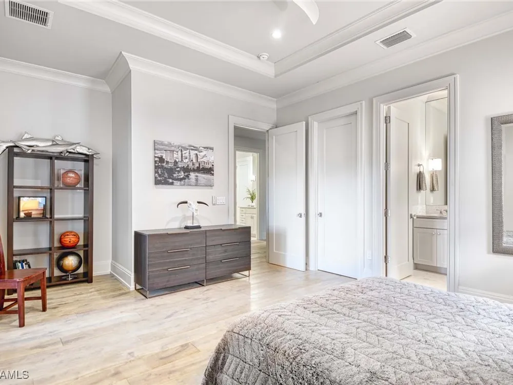 Experience the ultimate Naples lifestyle in this stunning single-family home, ideally positioned on a highly desirable elevated “X500” Flood Zone parcel in the prestigious Moorings neighborhood, just a short walk to the world renowned sugar sand beach. A true value in today’s market, this single-family home offers the benefits of generous living space without the maintenance of an oversized property. Designed with luxury and elegance in mind, every room and every square foot has been thoughtfully planned to maximize comfort and livability. With four en-suite bedrooms and an open, well-balanced layout, the residence delivers a seamless blend of high-end finishes, functionality, and value, an exceptional find in Naples. Built in 2016 and presenting like newer construction, this 4,084 sq. ft. coastal retreat offers four spacious en-suite bedrooms, a powder room, and a pool bath. The open concept main level is designed for entertaining, featuring European wide-plank white oak flooring, high coffered ceilings, custom lighting, and motorized blinds throughout. At the heart of the home, the gourmet kitchen is appointed with Wolf & Sub-Zero appliances, a gas range, quartz countertops, a waterfall island, Emtek hardware, tiled backsplash, and a dual-temperature Sub-Zero wine cooler. Upgrades such as a central vacuum, motorized blinds and a security system add smart convenience. The primary suite is a serene escape with custom walk-in closets and a spa-like bath showcasing teak flooring, double vanities, soaking tub, and a walk-in shower. Upstairs, a family room loft anchors a second primary suite plus two additional guest suites, each with walk-in closets and private baths. A beverage station and screened terrace overlook the resort-style pool. Seamless indoor-outdoor living defines the backyard oasis with a fire pit, gas heated pool and integrated spa lit by vibrant LED lights, a covered lounge lanai with a full summer kitchen, plus a pool accessible bath. The fully fenced yard features landscape lighting that turns evenings magical. As a resident, you’ll have the option to join the Moorings Property Owners Association, granting beach access with exclusive parking, dining pavilion, seating areas, and restrooms. This exceptional property combines contemporary elegance, countless upgrades, and an unmatched location, a perfect opportunity for even the most discerning Naples homebuyer. A must see!
