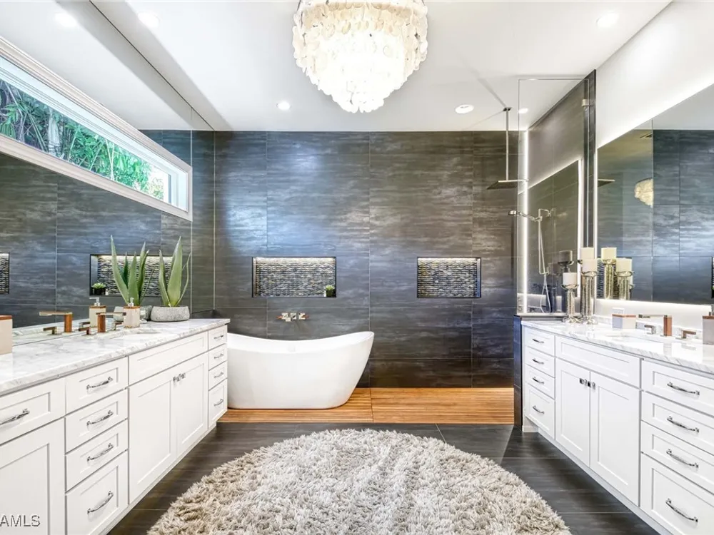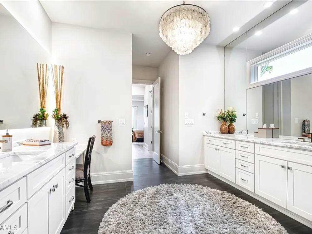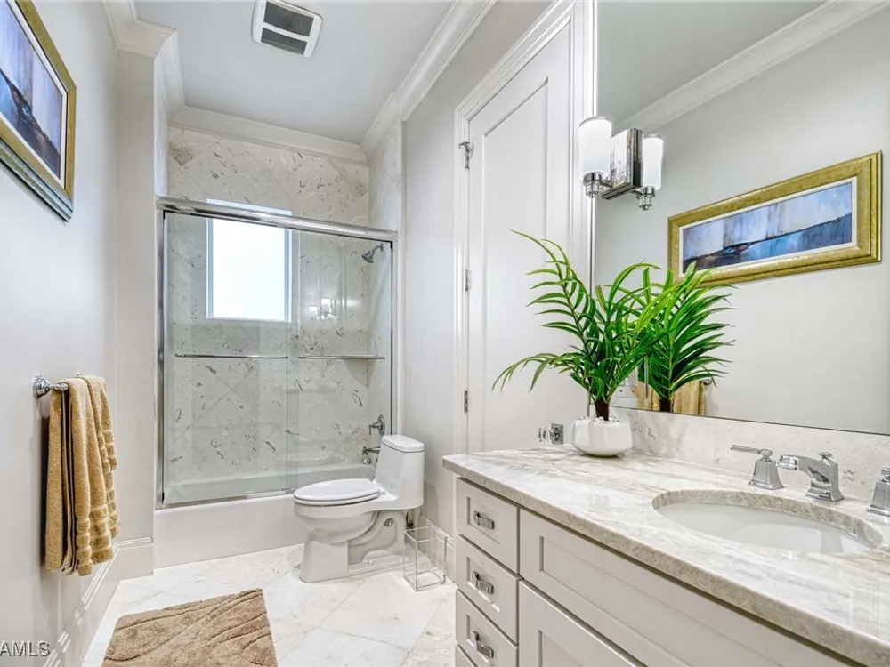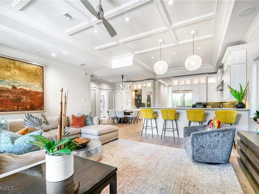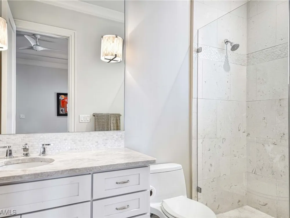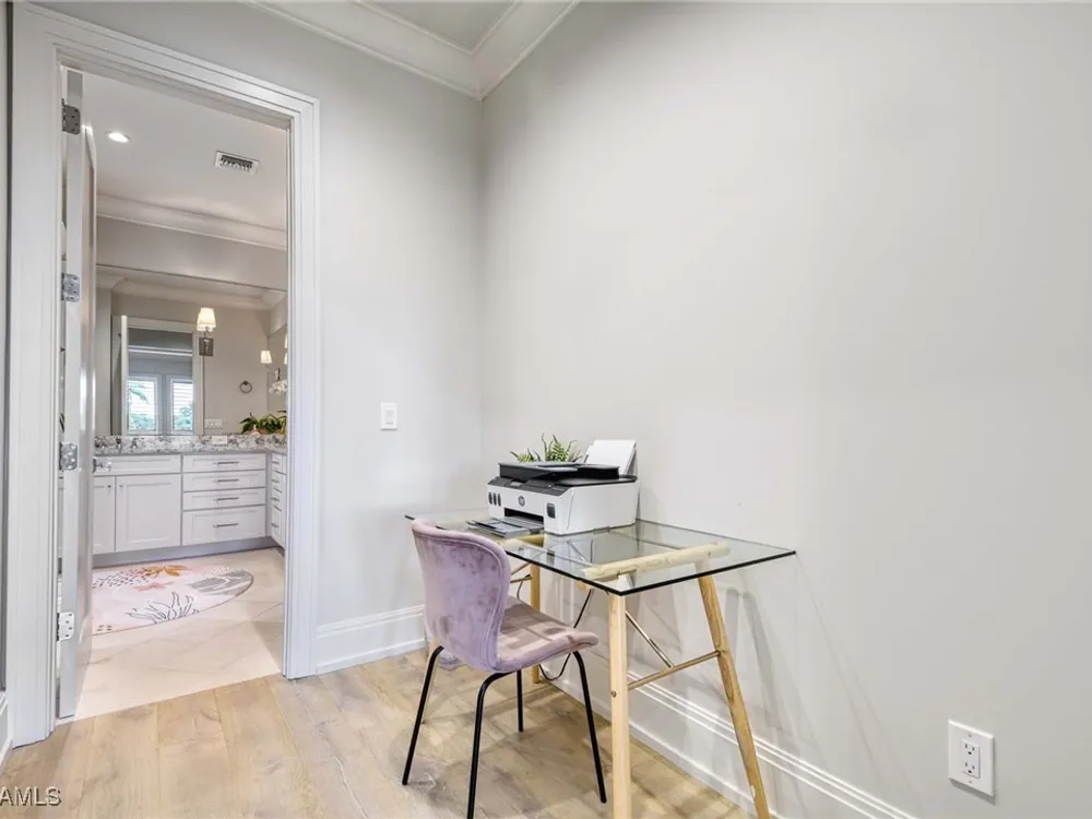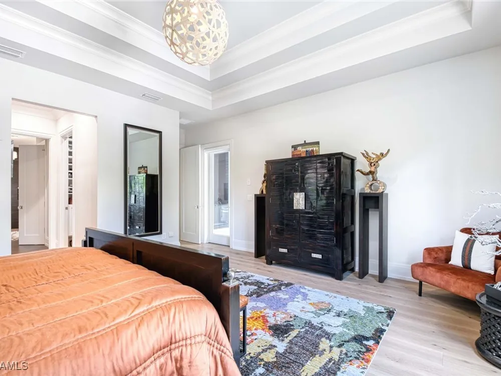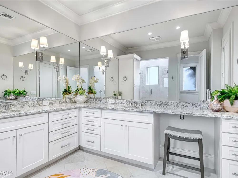 Experience the ultimate Naples lifestyle in this stunning single-family home, ideally positioned on a highly desirable elevated “X500” Flood Zone parcel in the prestigious Moorings neighborhood, just a short walk to the world renowned sugar sand beach. A true value in today’s market, this single-family home offers the benefits of generous living space without the maintenance of an oversized property. Designed with luxury and elegance in mind, every room and every square foot has been thoughtfully planned to maximize comfort and livability. With four en-suite bedrooms and an open, well-balanced layout, the residence delivers a seamless blend of high-end finishes, functionality, and value, an exceptional find in Naples. Built in 2016 and presenting like newer construction, this 4,084 sq. ft. coastal retreat offers four spacious en-suite bedrooms, a powder room, and a pool bath. The open concept main level is designed for entertaining, featuring European wide-plank white oak flooring, high coffered ceilings, custom lighting, and motorized blinds throughout. At the heart of the home, the gourmet kitchen is appointed with Wolf & Sub-Zero appliances, a gas range, quartz countertops, a waterfall island, Emtek hardware, tiled backsplash, and a dual-temperature Sub-Zero wine cooler. Upgrades such as a central vacuum, motorized blinds and a security system add smart convenience. The primary suite is a serene escape with custom walk-in closets and a spa-like bath showcasing teak flooring, double vanities, soaking tub, and a walk-in shower. Upstairs, a family room loft anchors a second primary suite plus two additional guest suites, each with walk-in closets and private baths. A beverage station and screened terrace overlook the resort-style pool. Seamless indoor-outdoor living defines the backyard oasis with a fire pit, gas heated pool and integrated spa lit by vibrant LED lights, a covered lounge lanai with a full summer kitchen, plus a pool accessible bath. The fully fenced yard features landscape lighting that turns evenings magical. As a resident, you’ll have the option to join the Moorings Property Owners Association, granting beach access with exclusive parking, dining pavilion, seating areas, and restrooms. This exceptional property combines contemporary elegance, countless upgrades, and an unmatched location, a perfect opportunity for even the most discerning Naples homebuyer. A must see!