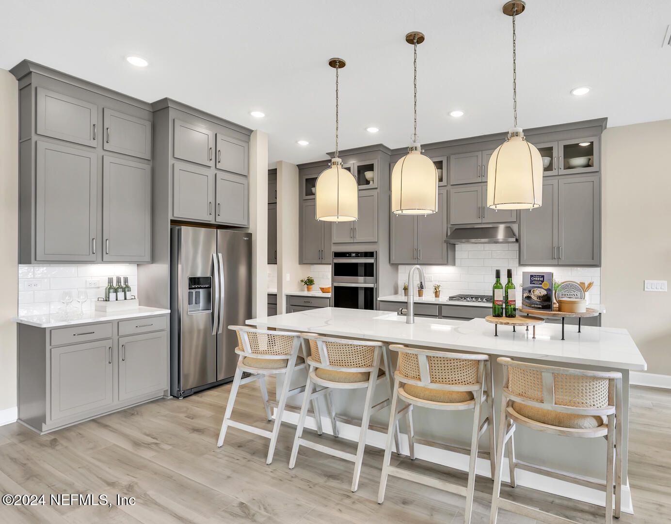 Cooper C - Low Country Ready this December at Reverie at Silverleaf, an active adult community. This beautiful home offers 10-foot ceilings, tray ceilings, and 8-foot doors throughout. The gourmet kitchen features white cabinetry, quartz countertops, and a spacious layout perfect for entertaining. Enjoy tile/LVP flooring throughout, plus a summer kitchen prep area The owner's suite serves as a private retreat, complete with a spa-inspired bathroom featuring dual vanities and a luxurious walk-in closet. A versatile flex room near the home's entrance can function as a home office, formal dining room, or third bedroom, while a second bedroom with its own full bath ensures comfort for family members or guests.