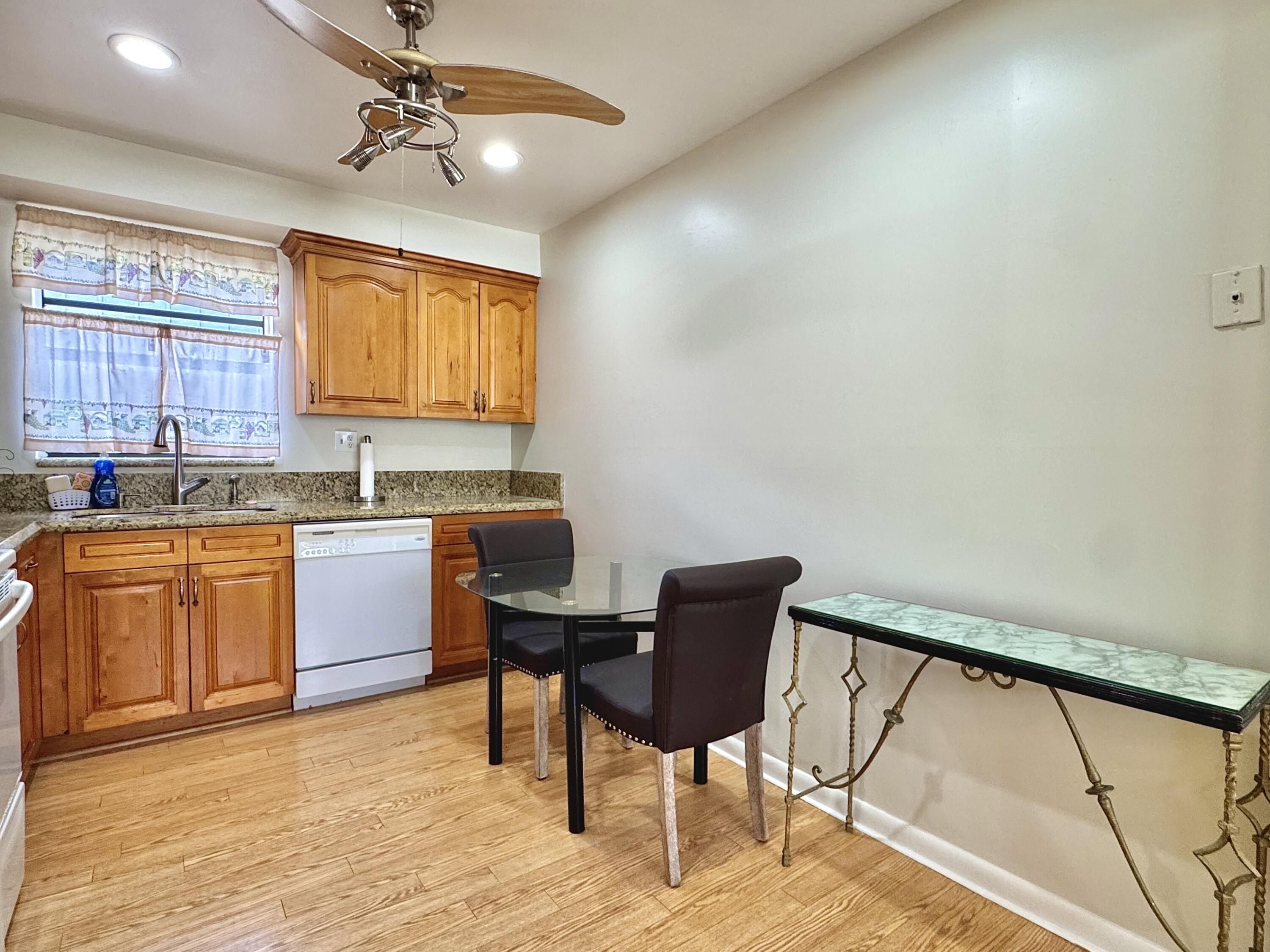 Rare and desirable layout in Kings Point's sought after Piedmont section. This well maintained 2 bed 2 bath condo offers rare privacy with bedrooms positioned on opposite sides of the unit and only one small back wall shared with a neighbor. This gives an ultimate feel of privacy and extra windows providing ample natural light on all sides and rooms. Features include wood flooring, granite countertops and real wood cabinetry. The unique floor plan lives larger than most 2 BR units and includes an oversized enclosed patio with serene golf course views. Conveniently located close proximity to a real elevator, not a lift. Enjoy Kings Point's Resort Style Amenities including clubhouses, restaurant, indoor/outdoor pools, golf, tennis, fitness center, theatre, workshops and more!