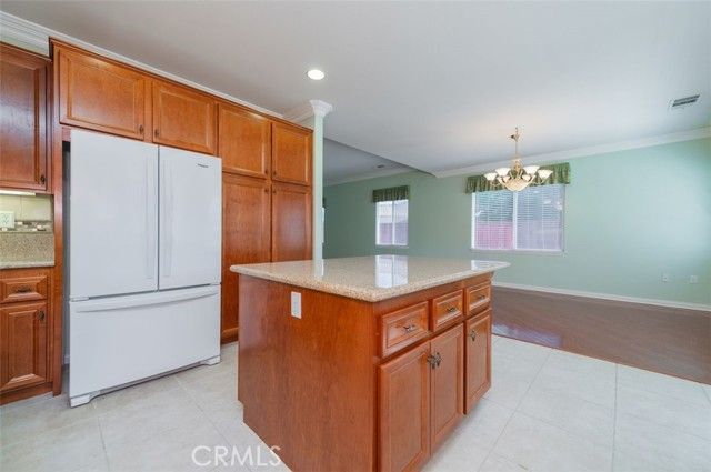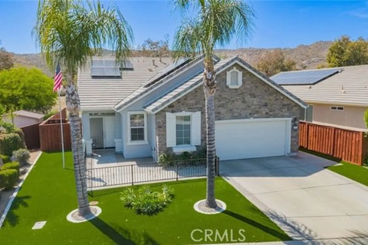 Welcome to Four Seasons Hemet. This is 2bedroom, 2bathroom, 2026 SF home. The current owner has gradually renovated this house to ensure a comfortable life, addressing all issues before repairs became necessary. They have decided to sell this home to move to a smaller one. The solar panels have already been paid for and also has eliminated their monthly electricity bills. In fact, the electric utility company has paid them over the years to receive the homeowner's electricity. A portable generator is available to connect to the home's system immediately in case of a power outage. The exterior walls were painted three years ago. The entire interior is constructed with floor base molding while the spacious living room, dining room, and kitchen walls have an crown molding in addition. The sun-facing windows have a window film tint to reduce sunlight. The backyard faces a golf course and is covered with a protective net that is unnoticeable unless viewed up close. The front yard is covered with artificial turf so no need to water anything.