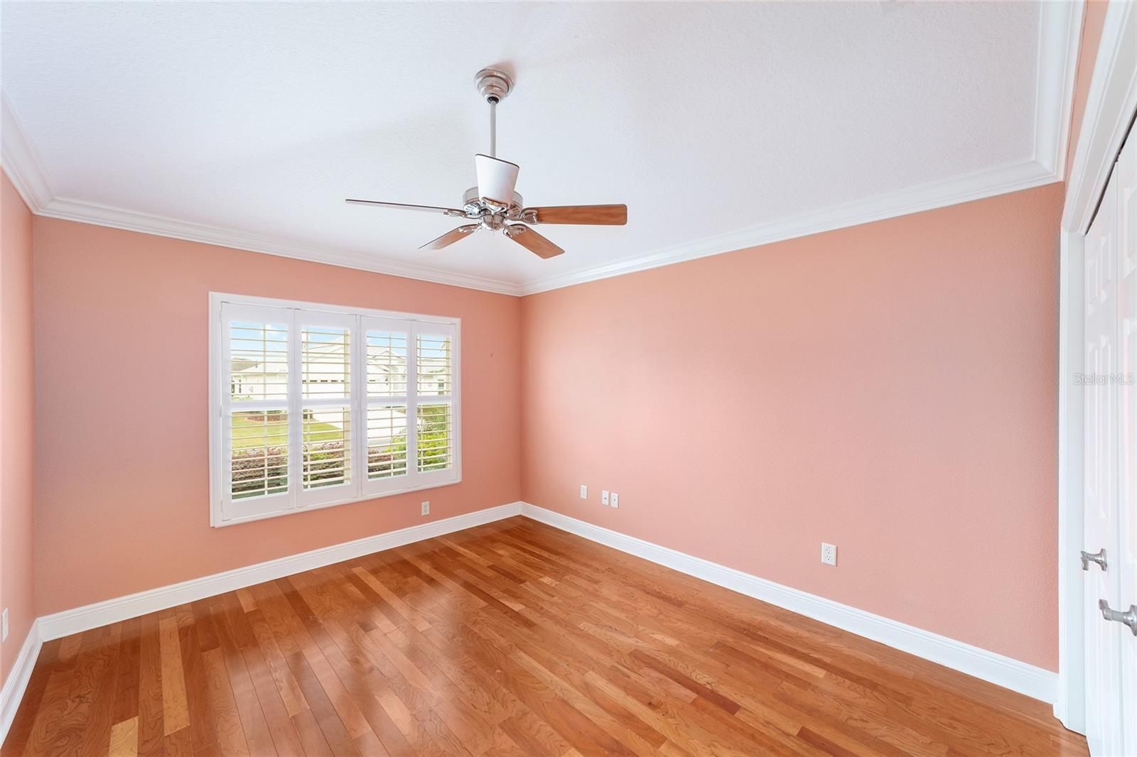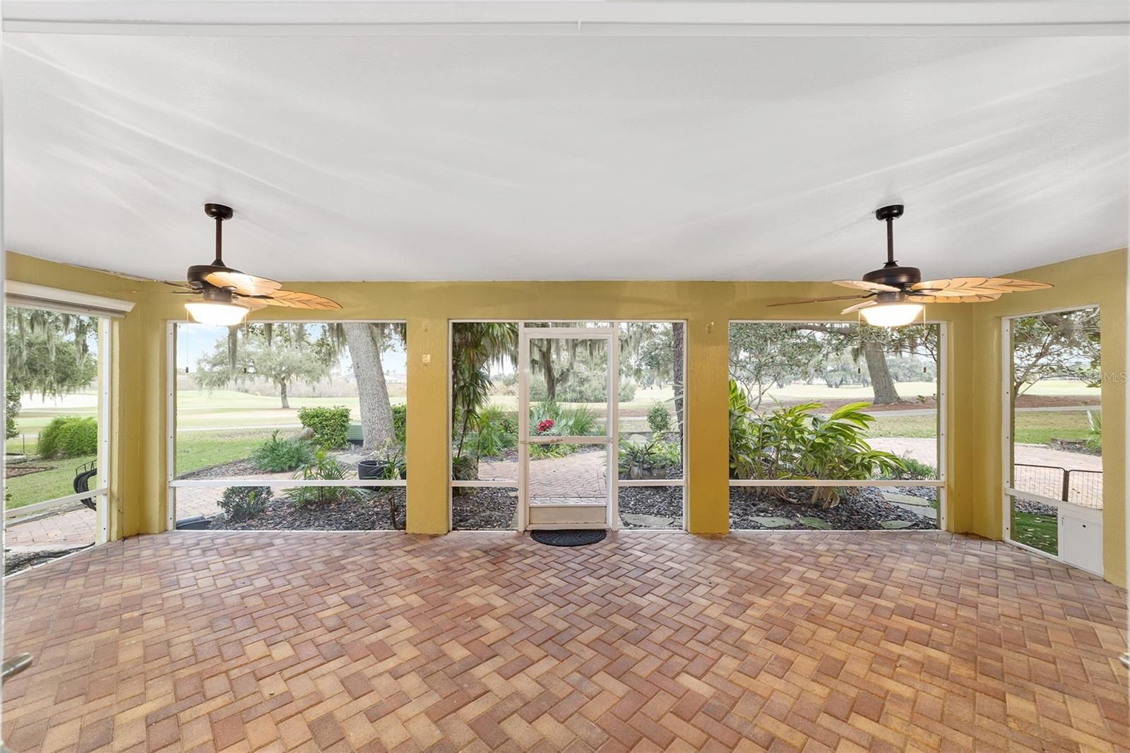 DRAMATIC PRICE ADDJUSTMENT! BOND PAID! NEW ROOF 2022! NEW HVAC 2021! GOLF COURSE FRONTAGE! Beauty abounds at every corner of this Gardenia floor plan home. Private, shaded, landscaped garden paradise on a golf front expanse. Freshly painted interior, plantation shutters and crown molding through-out. Beautiful hardwood floors in bedrooms and light ceramic floors in bathrooms and living areas. 3 Adjustable Solar tubes bring warm natural light into the main living area. Kitchen offers granite countertops, premium stainless appliances with gas range, French door refrigerator and pull outs in cabinets. Primary bedroom with sliding doors to screened patio has double closets, en suite bathroom with walk in shower and private water closet. Second bedroom is configured with upscale built-in office. Both bathrooms have granite counters. Professionally designed landscaping on entire property. Gorgeous paver driveway, walkway and large, shaded paver patio in rear of property. Rear patio offers lush perennial gardens, a beautiful place to entertain your guests. Patio overlooks fantastic views of the 4th tee and 7th fairway of Caroline Championship golf course in the Village of Mallory Square. 2 car garage WITH GOLF CART GARAGE, added built in storage closets, attic access and workbench. Other features include: Tankless water heater, HVAC 2021, Roof 2020, Updated washer and dryer, New sod in front yard, Full house water purification system, refurbished silent garage doors, expansive outdoor living areas, Irrigation and floral drip systems for effortless ground maintenance, doggie door off screened patio. Room for pool/spa. This one-of-a-kind golf-front property is exceptional, well maintained and convenient to Lake Sumter Landing, entertainment, shopping, medical and of course golf. This centrally located home has it all, Make this one yours today! All information is believed correct but should be verified by Buyer