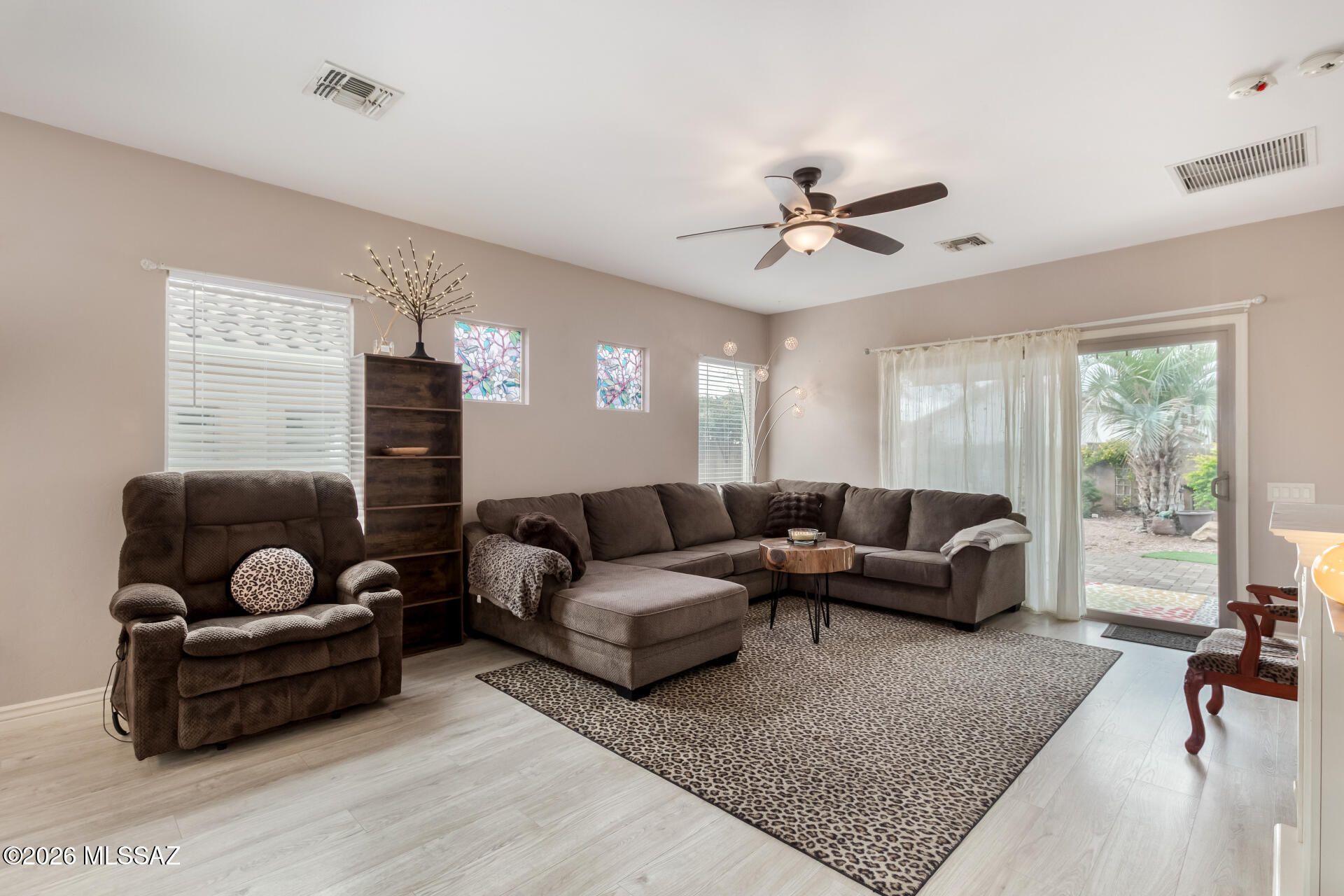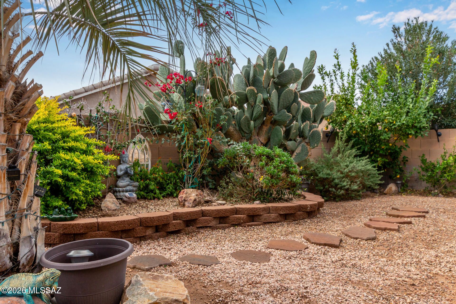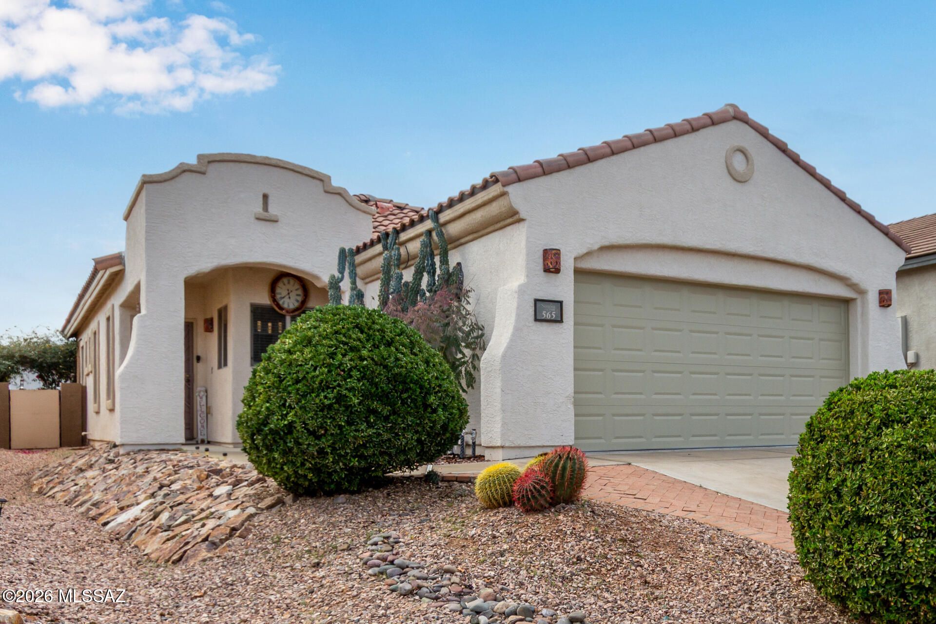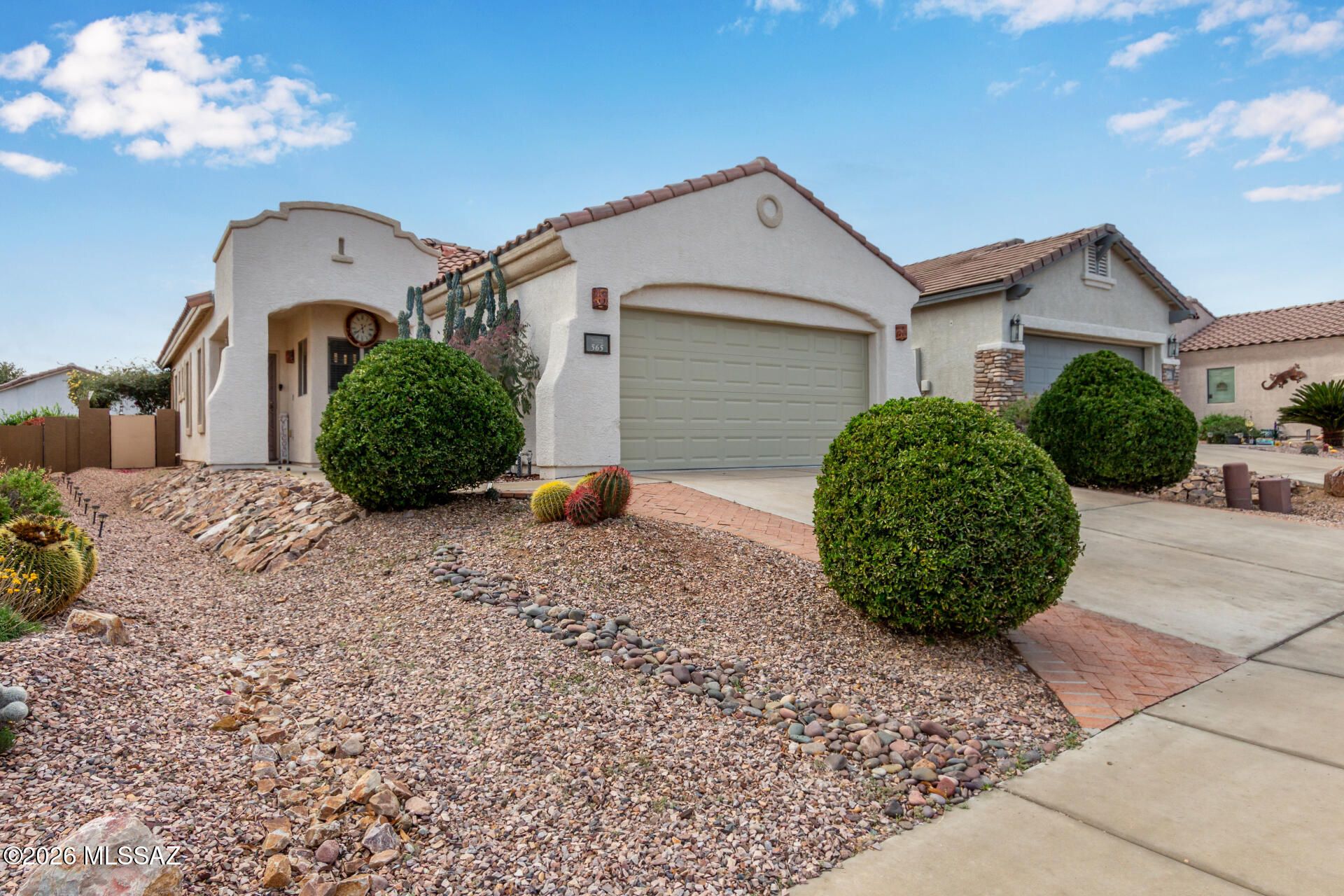 Look no further! This beautiful 2 bed, 2 bath property in Rancho Sahuarita (55+)is the one for you! Featuring great curb appeal, a low-maintenance desert landscape, pavers, and a 2 car garage w/built-in cabinets. Come inside to discover a spacious living room w/elegant wood-look flooring and crisp palette throughout, The eat-in kitchen is equipped w/everything you'll need for home cooking, ample cabinetry, quartz counters, tile backsplash, and stainless steel appliances. Enjoy a good night's sleep in the primary suite, boasting soft carpet, a private bath w/dual sinks, and a walk-in closet for all your belongings. Lastly, the sizeable backyard w/its covered patio and artificial turf, is the perfect place for a summer cookout w/friends & loved ones! Hurry, act now!