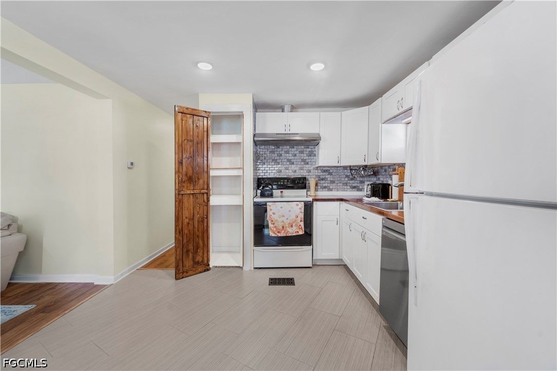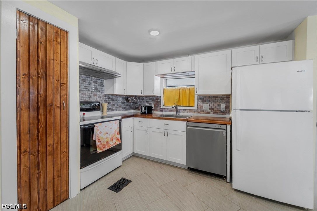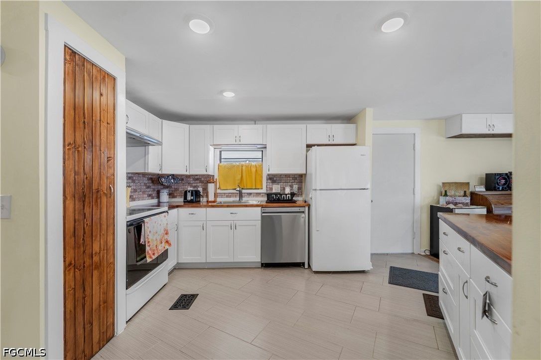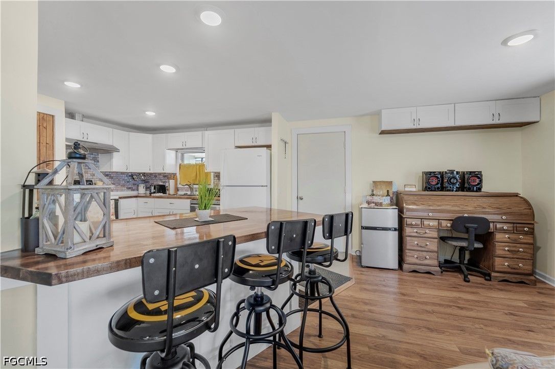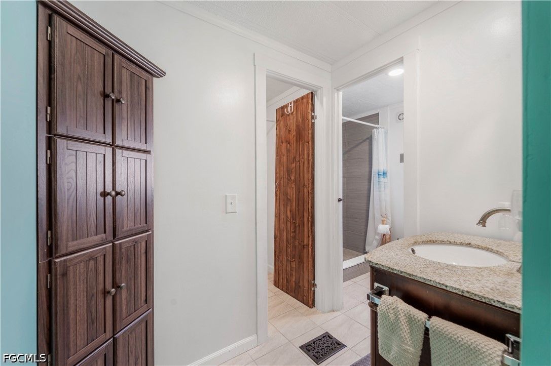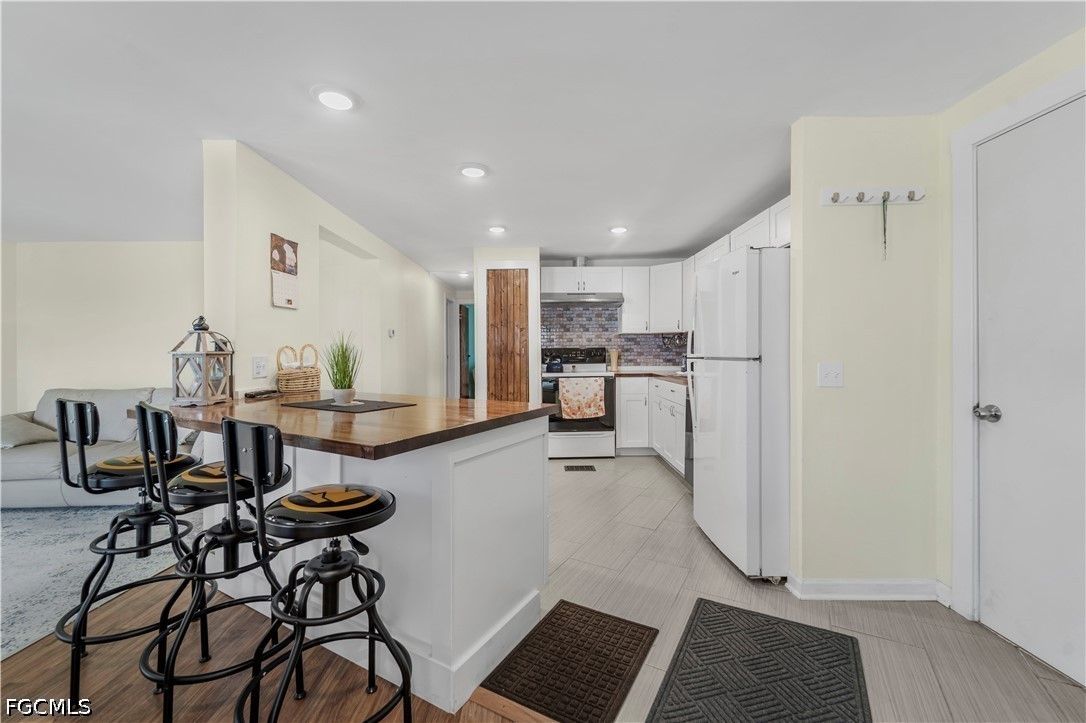Completely remodeled 2 bedroo., 2 bathroom home with new flooring, fresh interior/exterior paint, new foam insulation under the home, and a new metal roof. Custom rustic pine wood doors throughout add warmth and charm, while shutters on most windows and low utility bills enhance efficiency and comfort. Open-concept kitchen, dining, and living area—perfect for entertaining. Updated kitchen features new cabinetry and a large island with deep drawers and ample storage. Sold furnished (minus personal effects) with all appliances.9 Golf cart included (needs battery). Spacious primary suite with walk-in closet and updated bath featuring walk-in shower. Second bath fully remodeled with tub/shower combo. Located in Old Bridge Village, a resident-owned 55+ boating community with marina, boat ramp, and cool working lighthouse. Amenities include pools, fitness center, pickleball, tennis, bocce, clubhouse, and more. Prime location just minutes to downtown Fort Myers, Cape Coral, or Punta Gorda and a quick drive to RSW or PGD airports.