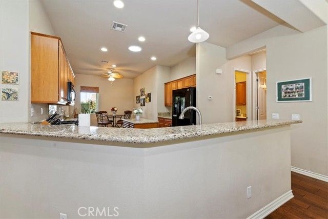 Solera by Del Webb 55+ Resort Living! Pride of ownership is evident in EVERY detail. This super clean 3 bedroom/2.5 bathroom residence boasts an open-concept layout with a large kitchen and dining room adjacent to the great room. The spacious primary bedroom connects the full ensuite bathroom and enormous walk-in closet. The private guest room overlooks the serene backyard and a walking trail. The third bedroom currently functions as an office with views of the front yard. Stunning wood floors adorn the main living areas. Indulge in Solera's incredible amenities: the opulent Mountain Lodge with an indoor walking track, three pools, gym, and spa, plus sport courts for pickleball, tennis, and bocce ball. This like-new home offers vibrant, active resort living near golf, dining, and healthcare. Tax rolls show home as a 2 bedroom.