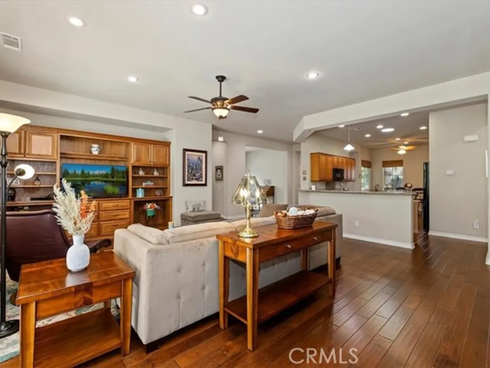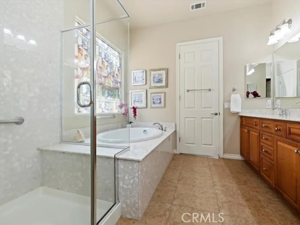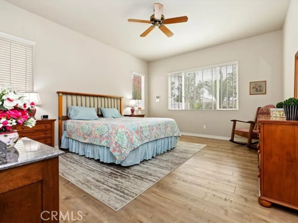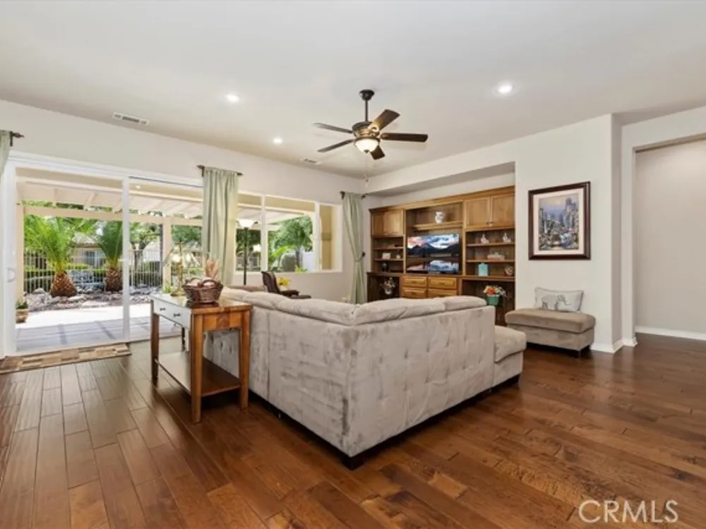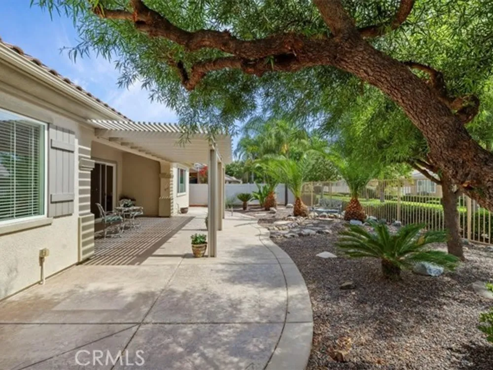 55+ RESORT LIVING! Highly desirable location on cul-de-sac street, this large lot is nestled along a tranquil paseo inside Solera by Del Webb. This beautiful Pulte home is loaded with builder upgrades! Super clean & move-in ready! The open-concept layout includes 2 bedrooms on opposite sides of the home for privacy, a den/office space for functionality, and 2.5 bathrooms. A stunning wood floor welcomes you into the entry and continues throughout the main living areas and kitchen. The great room features picturesque views of the backyard and the paseo; high ceilings; and a custom entertainment center. A kitchen skylight illuminates the island and expansive granite counters. The luxurious primary suite includes a walk-in closet and full ensuite with dual sinks, shower and garden bathtub. The low-maintenance backyard, with its covered patio and mature landscaping, offers a perfect retreat for relaxation. The two-car garage has storage cabinets; water softening system; and extra space for storage/hobby area. Enjoy resort-style living with access to the opulent Mountain Lodge featuring banquet facilities; billiards; indoor pool & spa; indoor walking track; and full gym. The grounds also include 2 pools; spa; BBQ area; and sport courts for pickleball, tennis, and bocce ball. This is an