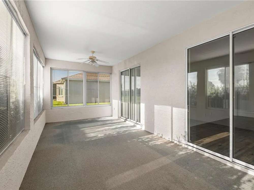 Welcome to Ocala Palms, a premier 55+ golf course community! his beautifully maintained home is perfectly positioned on the 17th hole, offering serene views of the lush greens right from your backyard. Designed with comfort and convenience in mind, the open floor plan and split-bedroom layout create a seamless flow for both everyday living and entertaining. Inside, you’ll find newer flooring throughout, a spacious kitchen with a center island, and a bright, inviting living area. The primary suite features a walk-in shower and an oversized soaking tub, offering the perfect retreat at the end of the day. Step outside to the enclosed lanai, complete with a summer kitchen, where you can relax, dine, or entertain while enjoying the peaceful golf course backdrop.Located just 3.6 miles from the World Equestrian Center, this property is ideal for horse enthusiasts or anyone looking for a vibrant lifestyle in a prime Ocala location. This home combines the best of resort-style living, a great floor plan, and unbeatable location—all within one of Ocala’s most desirable 55+ communities. Roof 2019 AC/ 2014.