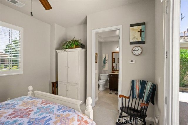 Welcome to this rare casita home located in the highly sought- after 55+ community of Solera Diamond Valley by Del Webb. Beautifully upgraded and meticulously maintained, this exceptional property offers a main home with 2 bedrooms and 2 bathrooms, plus a detached 1 bedroom 1 bathroom casita-perfect for guests, a home office, art studio or whatever suits your lifestyle. From the moment you arrive, the homes curb appeal stands out with newly landscaped front yard, Pebble Tec walkways in the courtyard, an oversized sliding glass door in the primary suite-every detail has been carefully considered. Inside, an open-concept floorplan is adorned with plantation shutters, solar tubes, tile flooring, crown molding, high ceilings, all ideal for everyday living. The kitchen features granite countertops, a breakfast bar, pantry and breakfast nook. Adjacent to the kitchen, a spacious laundry room offering ample storage, connects conveniently to the 2-car garage. The living space is centered around a warm fireplace creating a cozy atmosphere on cool nights. Just off of the main space is a versatile den- perfect as a formal dining area, home office, or additional sitting room. The Primary suite is a private retreat, complete with a large walk-in shower, soaking tub, custom walk-in closet, and a private sliding door to your personal spa. The guest bedroom is thoughtfully situated for privacy and comfort. Step outside from either the primary suite or living room into a tranquil backyard oasis-a sense of space ideal for reading, relaxing or entertaining. Homes like this don't come on the market often, don't miss this opportunity.