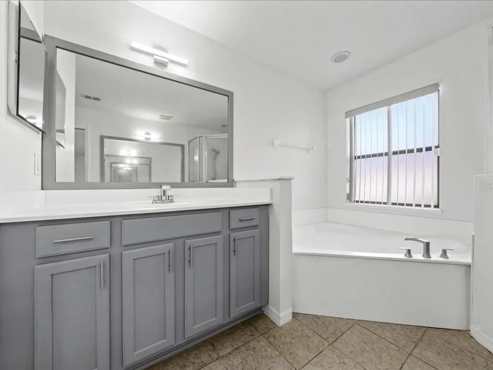 Welcome home to this newly renovated 4 bedroom 3 bathroom customized property with a side entry garage and over 3,000 square feet total. Renovations include: painted interior and exterior with trim, laminate flooring in bedrooms, quartz kitchen counters and breakfast bar, marble stone backsplash, updated mirrors and lighting fixtures. Eat-in Kitchen includes a breakfast nook, bay window, pantry along with new stainless steel range, microwave, and dishwasher. Owner's suite includes walk-in closet, two sinks/vanities, linen closet, shower, and whirlpool tub. Fourth bedroom has a private bathroom with separate entry/exit. Other features include security system, camera/doorbell, digital water heater with solar, and an inside laundry with a sink. Annual HOA cost is currently under $200.00! Vacant and move in ready. Enjoy nearby shopping centers, restaurants, and a library.