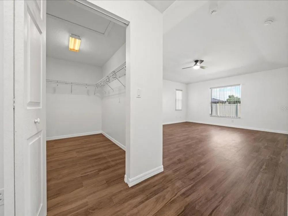 - Ceiling Fan(s), Eat-in Kitchen, High Ceilings, Open Floorplan, Thermostat, Walk-In Closet(s)