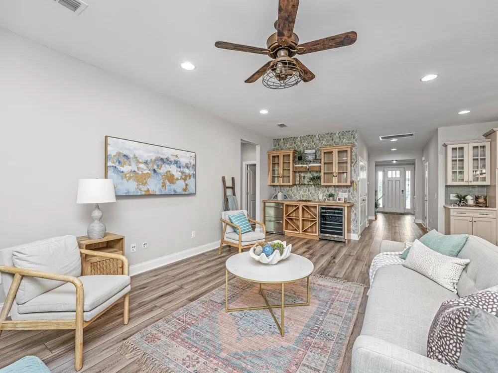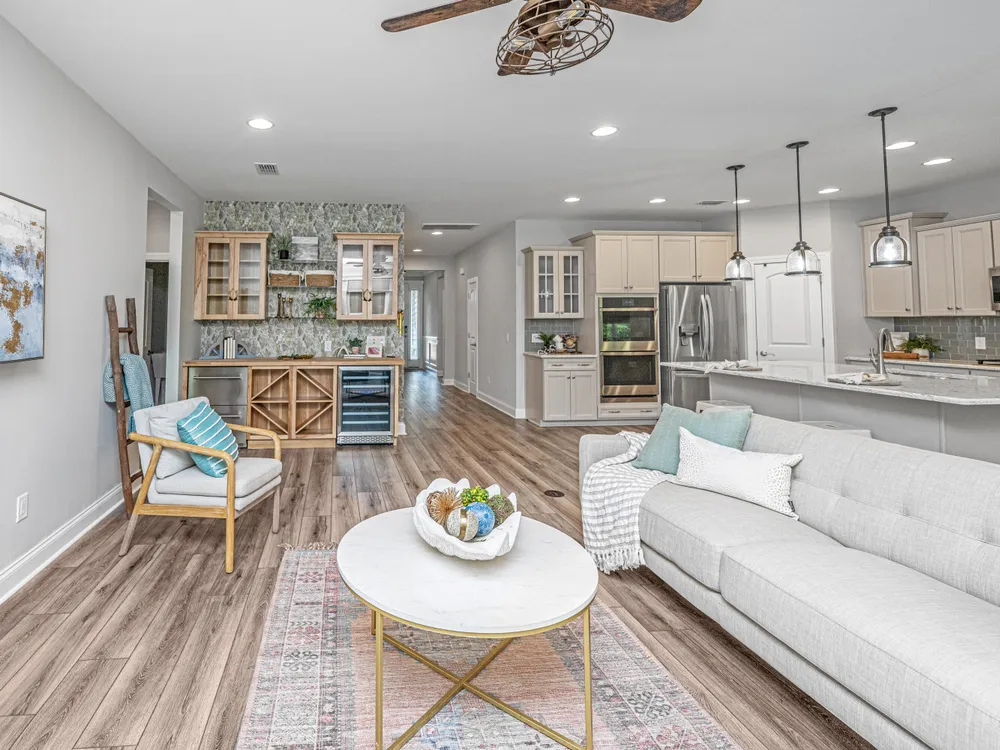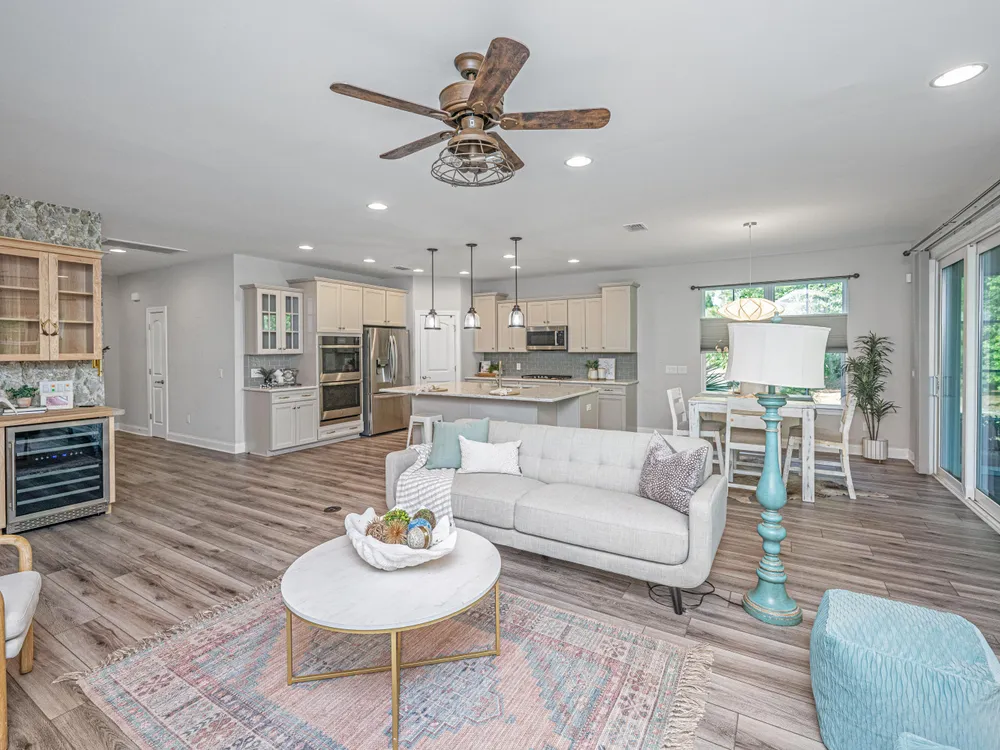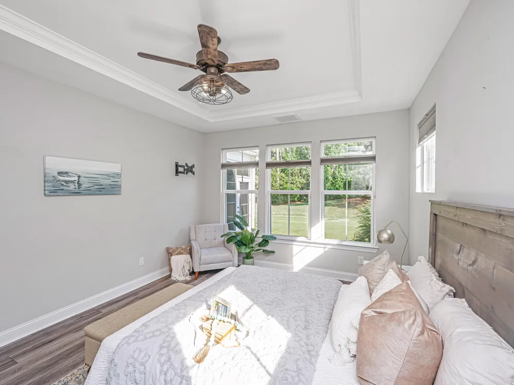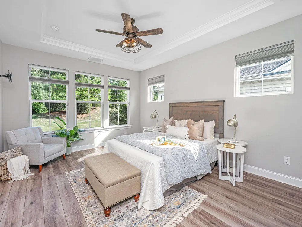 Welcome to 566 Four Seasons Boulevard! Start with a 2% lower interest rate. Keep reading!!This stunning one-story home is nestled in the highly sought-after, gated, 55+ community of Four Seasons in Cane Bay Plantation. Situated on a premium and private wooded lot, this 3-bedroom, 2.5-bathroom home offers unmatched privacy, with no neighboring construction to the side, ensuring a serene living experience. As you approach the home, you'll be captivated by its exceptional curb appeal, highlighted by meticulously manicured landscaping. The inviting front porch is the perfect spot to unwind, whether you're sipping sweet tea or enjoying a glass of wine while taking in the tranquil surroundings...Step inside and be greeted by the foyer, featuring elegant wainscoting and a mini tray ceiling. The stunning Armstrong laminate wood flooring flows seamlessly throughout the home (except for the laundry and bathrooms), creating a warm and inviting atmosphere. The open-concept design includes a gourmet kitchen that is sure to impress, complete with a large island, pendant lighting, tile backsplash, quartz countertops, white cabinetry, pull-out sliding drawers, stainless-steel appliances, double wall ovens, 5-burner gas cooktop, built-in microwave, pantry, recessed lighting, and an eat-in area. The spacious family room, with a ceiling fan, is adjacent to the kitchen and features a dry bar with a wine fridge and dual drawer mini fridgeperfect for entertaining. The master suite is your own private retreat, located away from the other bedrooms for added tranquility. It boasts a tray ceiling, ceiling fan, multiple windows, and a custom-built walk-in closet. The luxurious master bath includes tile flooring, vanity w/dual sinks, a linen closet, a separate water closet, and an impressive tiled walk-in shower with seamless glass doors and dual shower heads, including a ceiling rain shower. Handicap bars are also thoughtfully installed for added safety. The two additional bedrooms are spacious, and each includes built-in closet organizers. A second full bathroom, a powder room, and a laundry room with built-ins and a utility sink add to the home's functionality. Above the garage, you'll find a large bonus room with the same beautiful laminate flooring, offering endless possibilities for use as an office, guest room, or hobby space. Enjoy year-round outdoor living in the all-seasons porch, which is outfitted with dual ceiling fans, recessed lighting, and epoxy flooring. Step outside to the patio and semi-private backyard, beautifully landscaped to create a peaceful and private oasis. Additional highlights of this home include low-voltage landscape lighting, an extended driveway, a two-car garage with epoxy floors, a Generac whole-home generator, a Leaf Guard system, and a Rinnai tankless water heater. Four Seasons is a premier 55+ community offering a wealth of amenities, including a lakeside clubhouse, hiking and biking trails, pickleball courts, fitness center, pools, tennis courts, kayaking, fishing, boating, and much more. Situated around a picturesque 300-acre lake system, this community offers the ideal combination of natural beauty and resort-style living. Come discover not just a beautiful home, but a vibrant, close-knit community that you'll be proud to be a part of. Don't miss outschedule your showing today! Start with a 2% LOWER interest rate! Seller will pay the cost to procure a 2-1 buydown for the buyer, the cost not to exceed 2.5% of the buyer's loan value. A 2-1buydown is a loan in which the first year's interest rate is 2 percentage points below the note rate for the loan. The second year's interest rate is 1 percentage point below the note rate for the loan. At the beginning of year three, the interest rate reverts to the note rate for the remainder of the loan term.