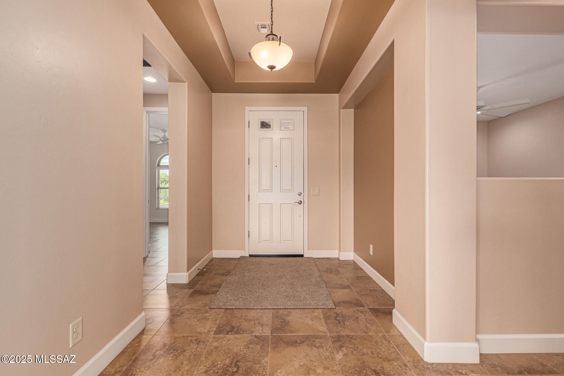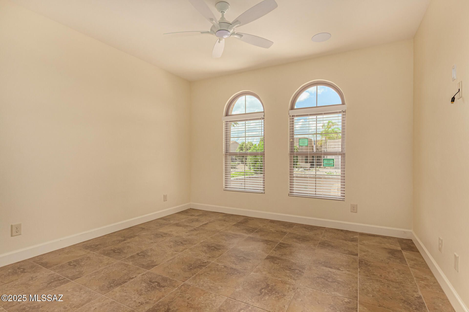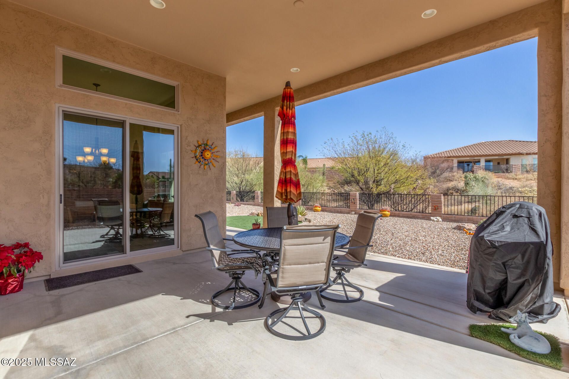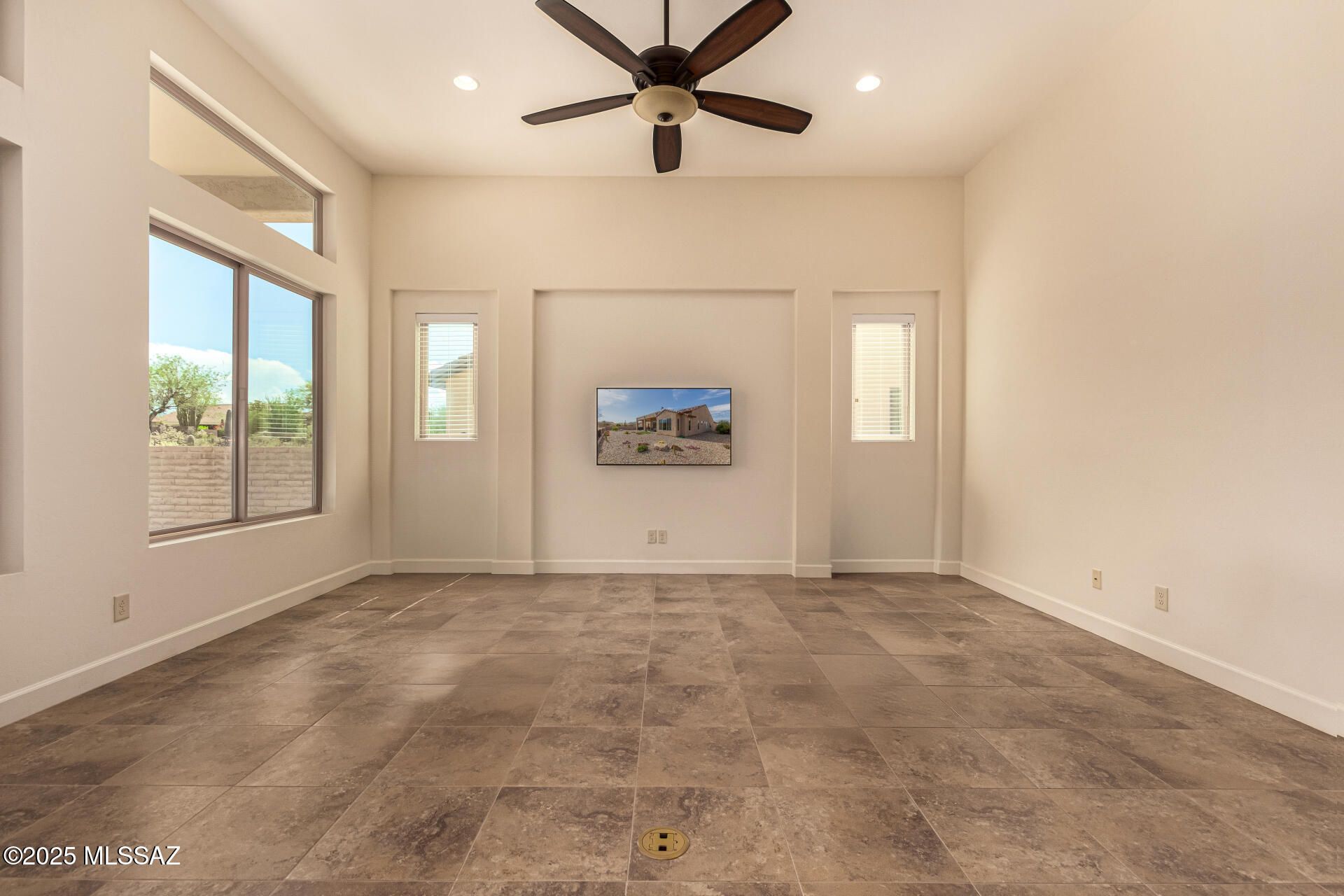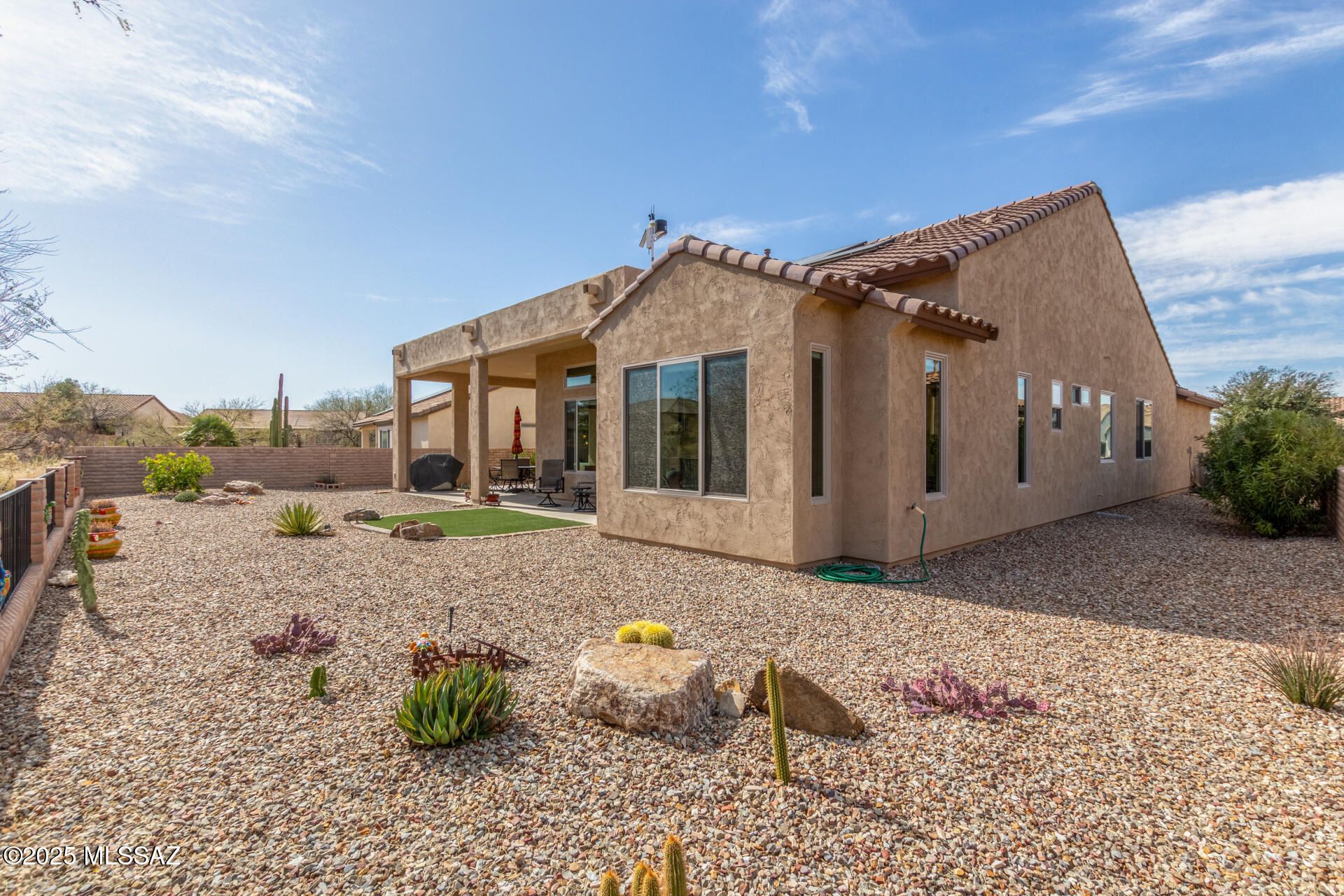 This spacious Sonata model offers 2 bed, 2.5 baths, a dedicated library/den, and a highly sought-after bonus room to suit your needs. A welcoming foyer with coffered ceiling opens to the bright great room and chef-inspired kitchen. Neutral colors flow throughout, creating a warm, timeless backdrop. The kitchen boasts a large island, quartz countertops, under-cabinet lighting, dual ovens, spacious pantry, and ample prep spacea''ideal for everyday living and entertaining. Soaring 12-ft ceilings and expansive windows fill the home with light, enhancing the open layout. Step outside to the extended covered patio with fully fenced yard. The view fencing showcases the natural beauty of the open arroyo behind the home. Solar panels provide added utility savings. Extended 2.5 garage with epoxy.