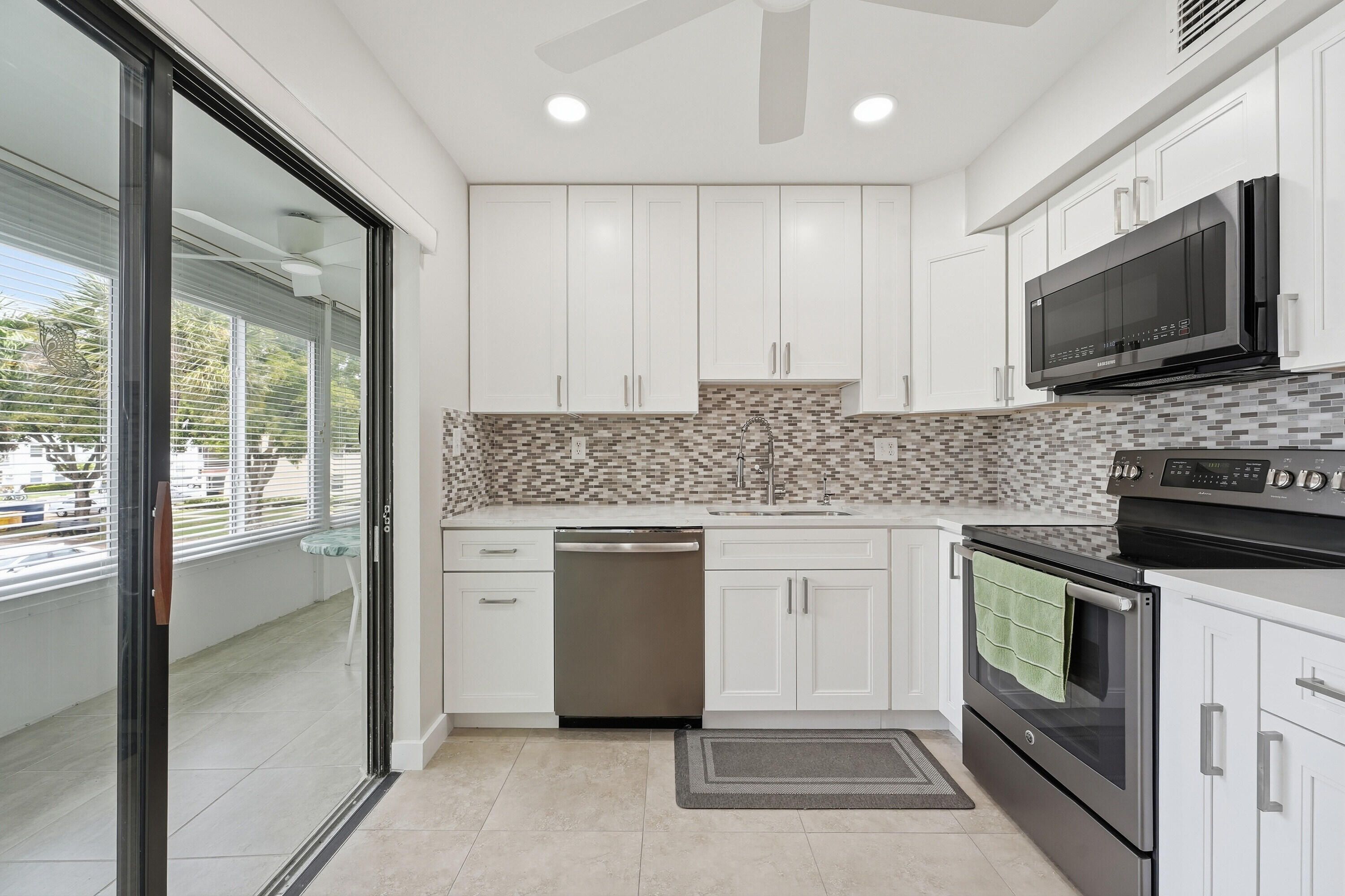 Move right into this beautifully remodeled, partially furnished condo in the Piedmont Section of Kings Point. This 2nd-floor unit, conveniently located near the elevator, features tile flooring throughout and a fully updated kitchen with new cabinetry, countertops, backsplash, and stainless-steel appliances. Both bathrooms have been tastefully renovated with walk-in showers, modern fixtures, cabinetry, tile, and grab bars. The kitchen opens to an oversized enclosed patio overlooking the entranceway, complete with a portable A/C unit for added comfort. Enjoy resort-style living in this vibrant 55+ community offering multiple clubhouses, pools, golf, tennis, pickleball, fitness centers, a 1,250-seat theater, cafes, clubs, activities, and courtesy shuttles. Easy access to I-95 and Turnpike.