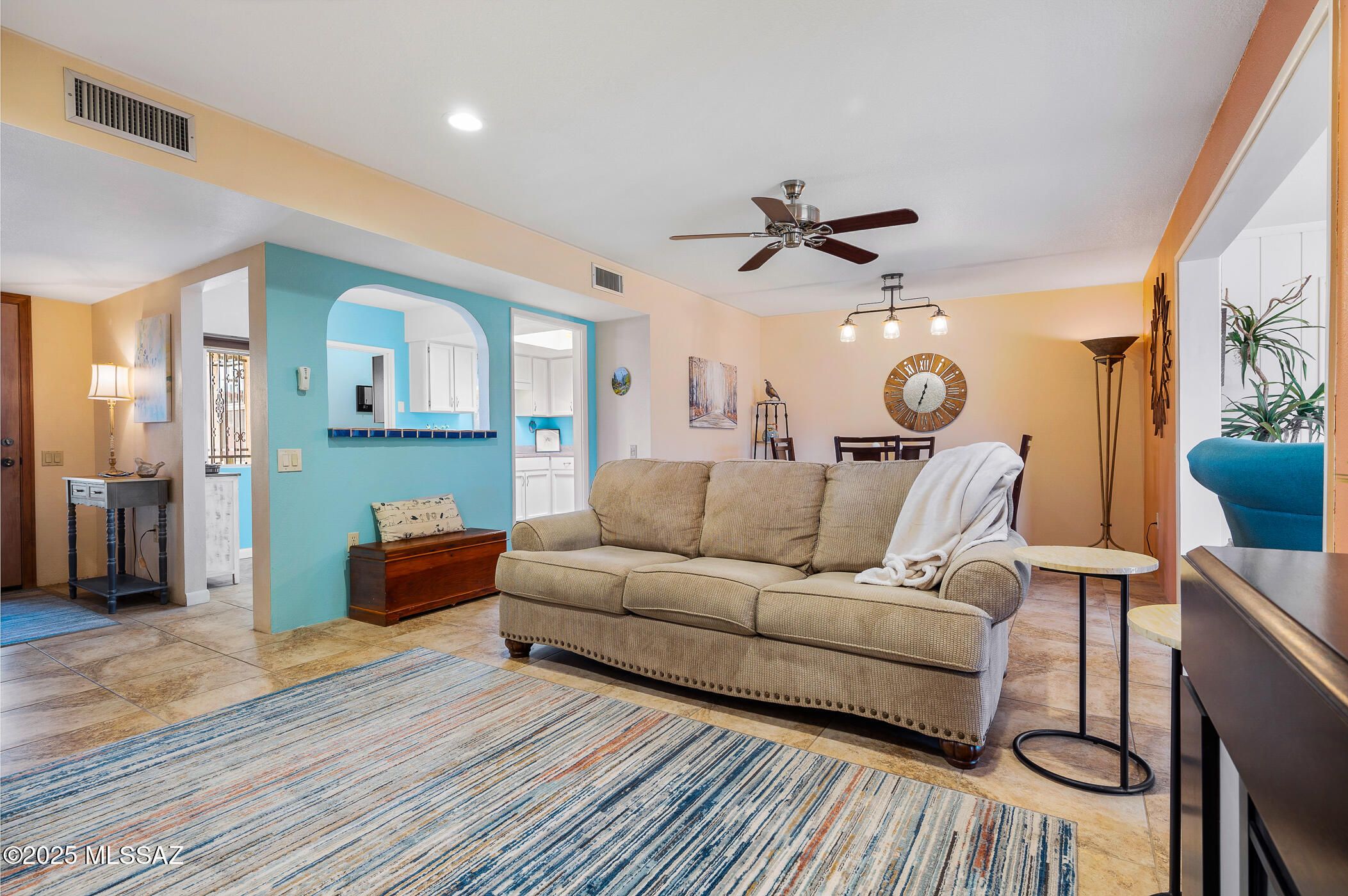 Charming, fully furnished 2 bed/2 bath home with incredible desert & mountain views, truly move-in ready. This impeccably clean residence has been thoughtfully maintained & features professionally cleaned carpets (including couch and chair), a 2019 heat pump, electronic air cleaner, smart thermostat, & under-cabinet rechargeable magnetic lighting. The kitchen has been tastefully updated with custom countertops by Stone House of Tubac and updated cabinetry, while both bathrooms have been nicely updated as well. The roof was recoated in late April, & pre-emergent was applied in December. Enjoy low-maintenance living in the heart of Green Valley with access to GVR pools, fitness centers, pickleball, clubs, & classes. Perfect as a full-time home or seasonal retreat AZ living at its best!