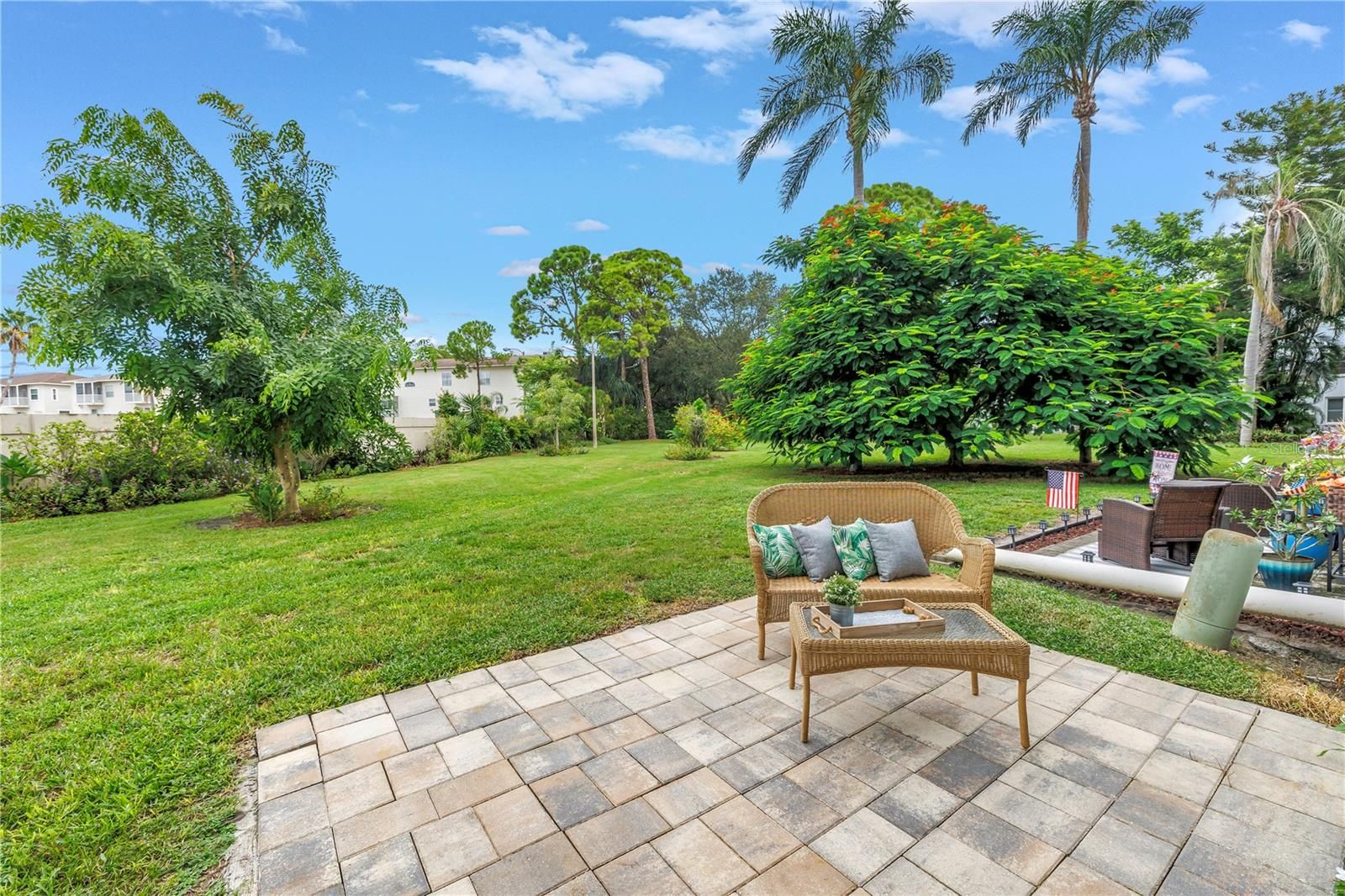RARELY AVAILABLE – GROUND FLOOR, CORNER UNIT with a great view and a nearby carport! This highly desired corner unit is overlooking a park-like setting, including a private pavered patio, trees and benches. The open floor plan is light and bright and easy to entertain in. Updated kitchen features hardwood soft-close cabinets, granite countertops, and a dedicated pantry. There is BOTH a breakfast bar for casual dining and a dining room. Enjoy your morning coffee on the private patio while enjoying the garden. Primary bedroom is spacious and can accommodate large furniture and has a large walk-in closet. Primary includes a private en-suite bathroom complete with a tiled walk-in shower and granite vanity. Guest bedroom is also spacious and also includes a large walk-in closet. Updated guest bathroom features a tiled walk-in shower and granite vanity. No detail has been missed. Updates include: Newer impact rated windows (2018), and AC (2015). This gorgeous unit was freshly painted and is move-in ready! A quick closing is OK here! Low monthly HOA fees include building insurance and exterior maintenance, gas for cooking and heating, water, sewer, trash, cable and Internet are all included – SAVES YOU MONEY $$!! Five Towns has tons of social opportunities, and has extensive amenities including six heated pools, a fitness center, card rooms, a billiard room, tennis courts, clubhouse/entertainment centers, bocce ball, horseshoes, and shuffleboard courts. Close to restaurants, shopping and award-winning beaches.