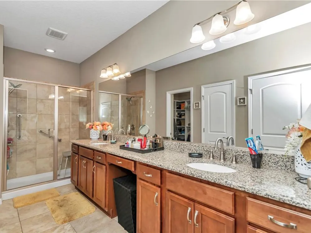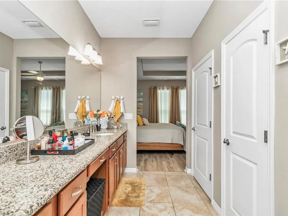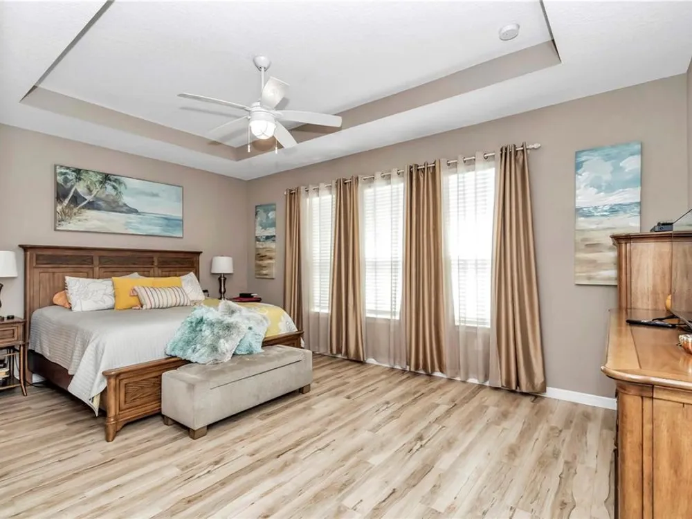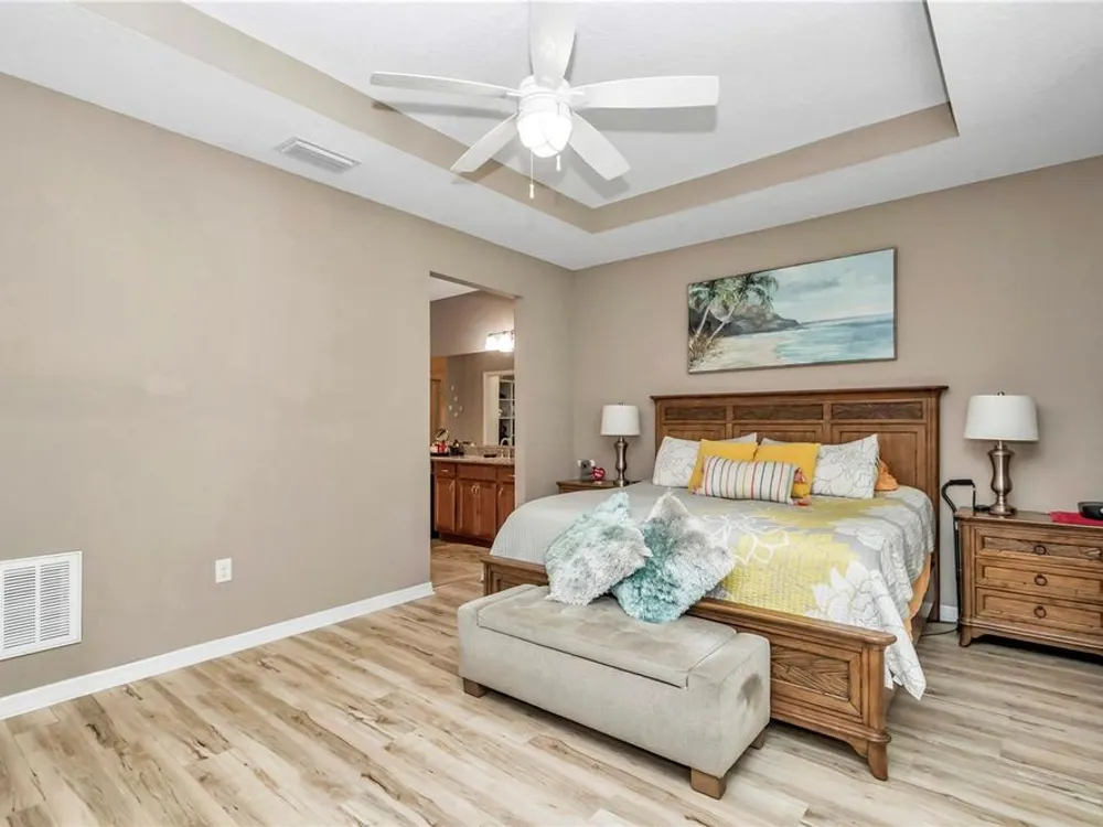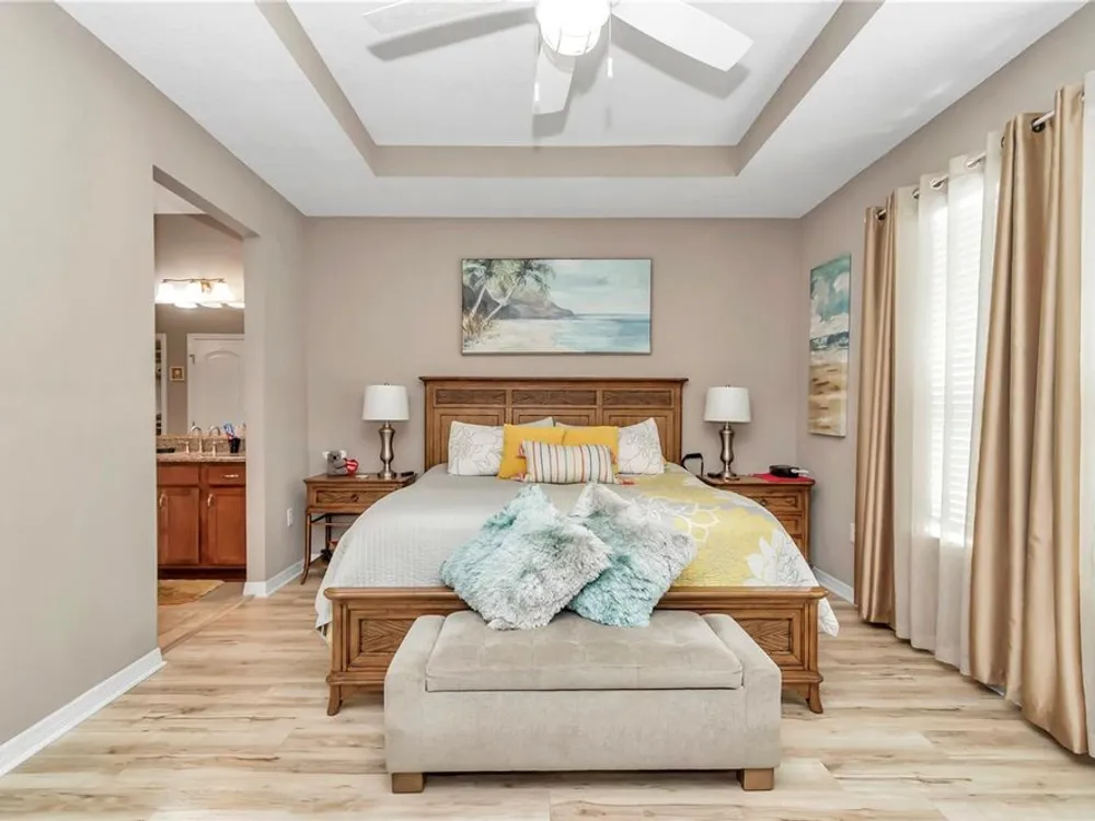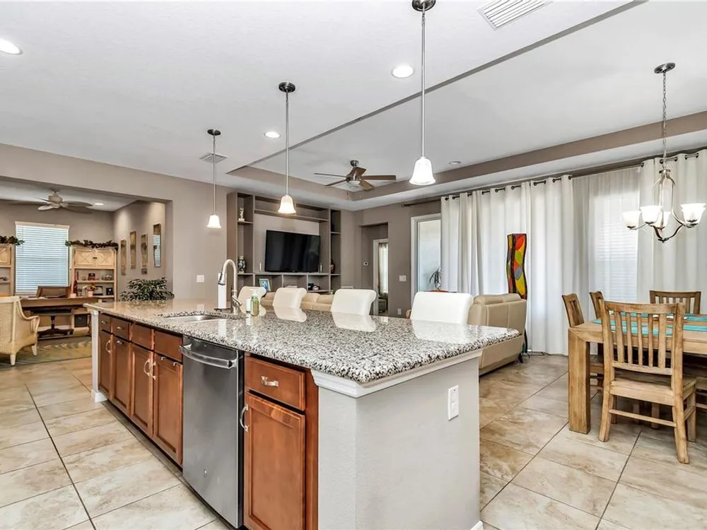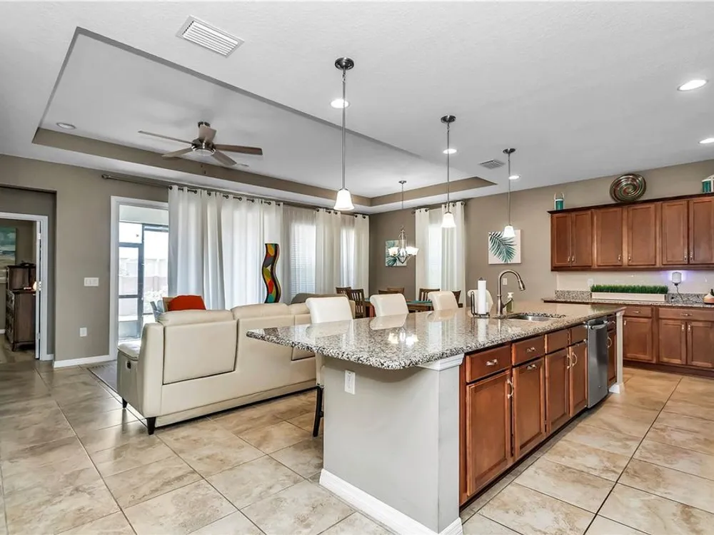 - Ceiling Fan(s), Crown Molding, Eat-in Kitchen, Open Floorplan, Split Bedrooms, Stone Counters, Tray Ceiling(s), Vaulted Ceiling(s), Walk-In Closet(s)