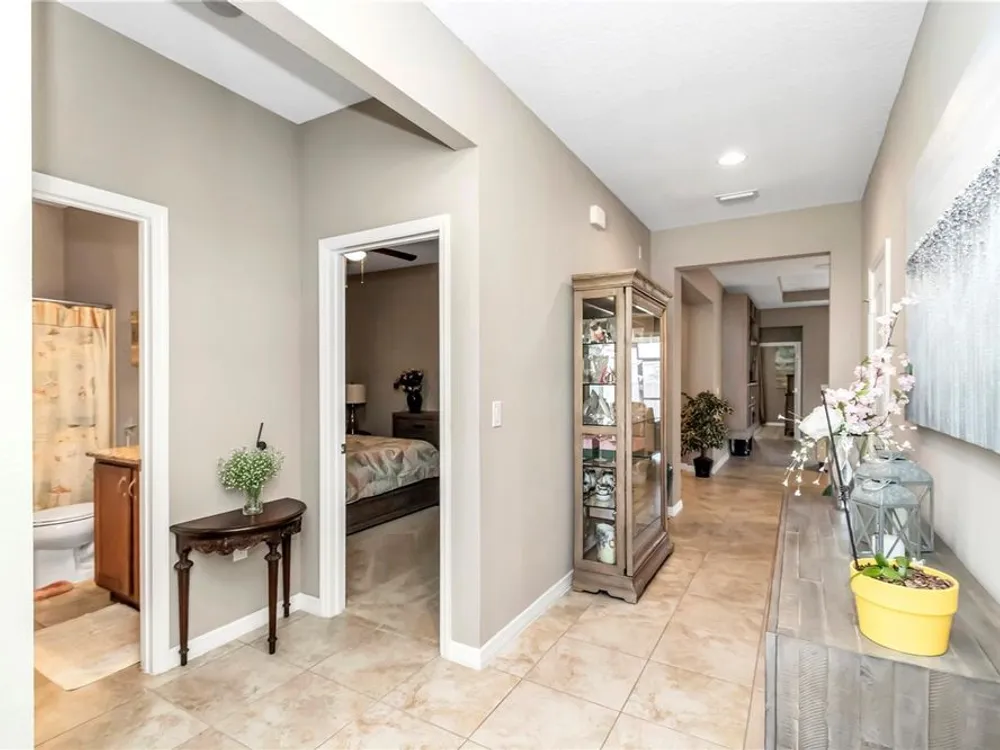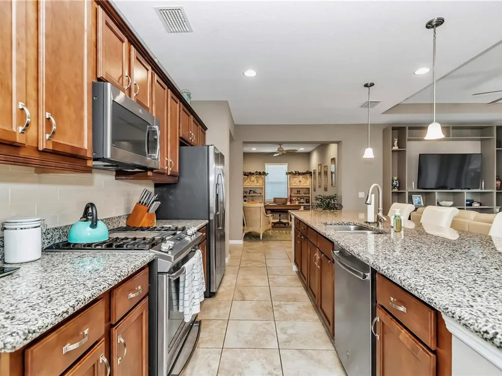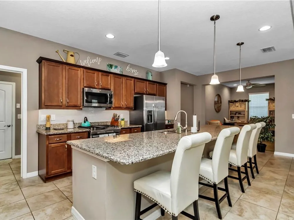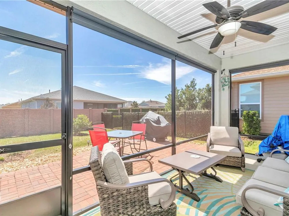 Ocala Preserve an exclusive gated community in rated #2 Forbes rated Ocala Fl for 2025 WITH INCREDIBLE AMENITIES! This is the connect floor plan built by Shea homes. 2019 architectural shingle roof. 2019 A/C and hot water heater. The home is right under 1,900 square foot open concept layout with a 3 bedroom 2 bath home PLUS Den/Office. The 2 car garage includes overhead storage staying with the home. Located in the gated community. This home is walking or driving your golf cart distance to the clubhouse and amenities! As you walk through the beautiful glass inserted front door, you will see this home has upgrades! Crown molding throughout, tray ceilings, and tall baseboards all add to the fit and finish of the home. Upgraded high end tile flooring with vinyl plank flooring and carpet only in the bedrooms. This is a split floor plan which allows privacy for the master bedroom. Located between the 2nd and 3rd bedrooms you will find the guest bathroom with a shower/tub combo and a stunning vanity with granite tops. The kitchen is loaded with upgraded options. The cook in the home will love the granite countertops spacious area with an abundance of cabinet space. Amazing oversized floating kitchen island with canned lighting and it can sit multiple bar stools. Just off of the kitchen you'll find a laundry room, which has extra storage space and a pre plumbed for a utility sink. The master bedroom is located off of the living room. Enjoy more natural light with (3) large windows and tray ceilings. The spa-like bathroom has multiple cabinets and drawers, dual sinks, granite counters, a huge walk-in closet, and a beautiful walk-in shower. Ocala Preserve offers unique outdoor experiences including a 7-acre lake, three themed park winding throughout the 600+ acre community, and an expansive network of walking, biking, and hiking trails, Just Minutes from the World Equestrian Center, HITS, minutes from the historic downtown Ocala, and major highways, shopping and entertainment.