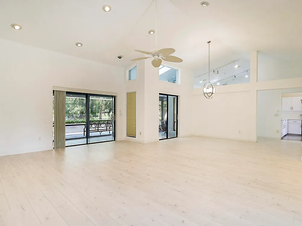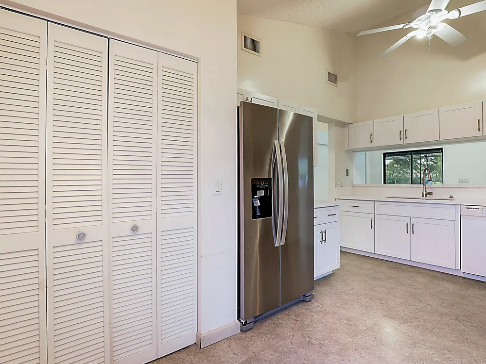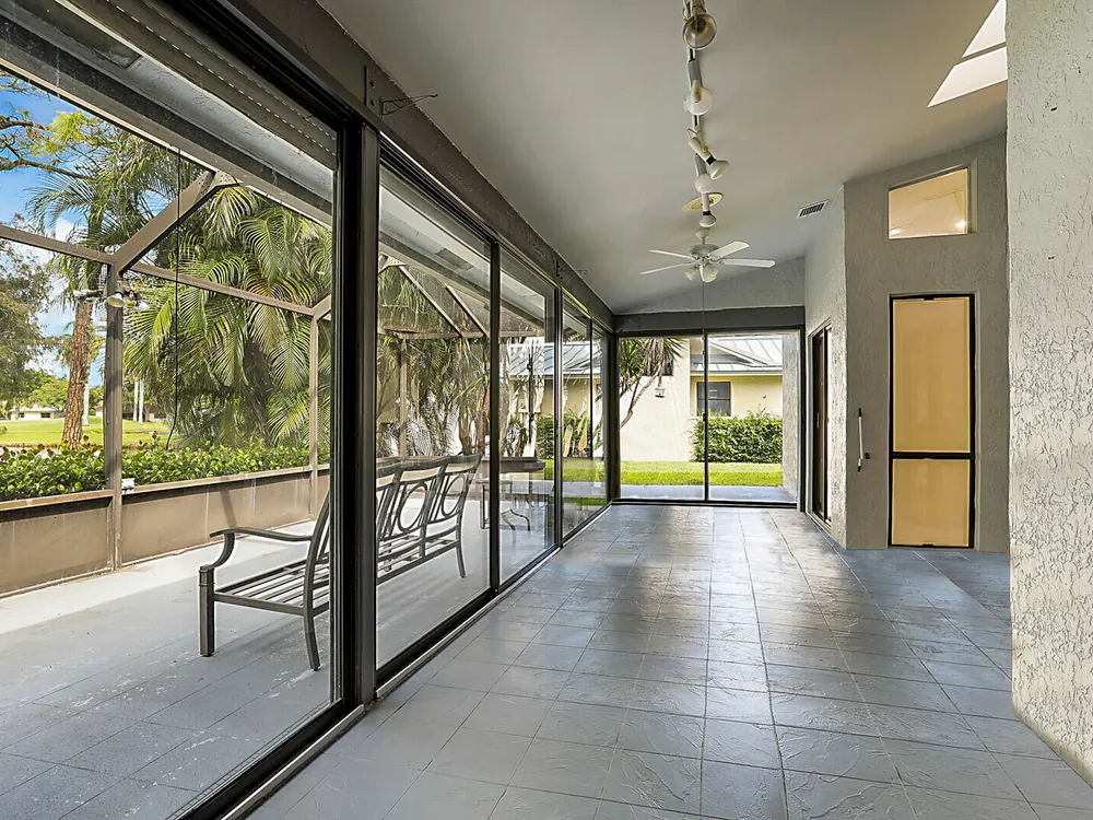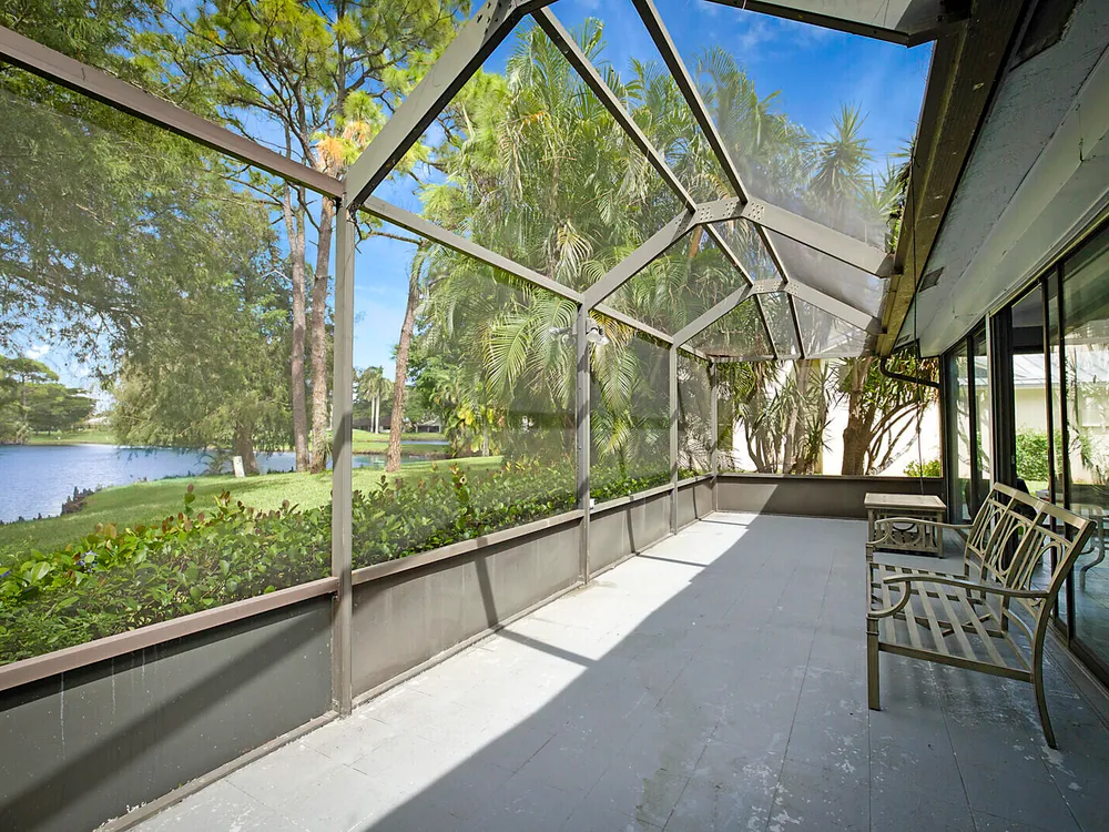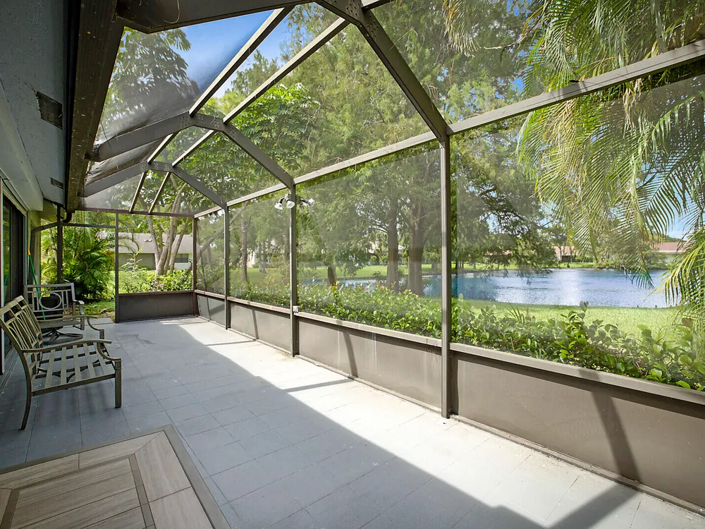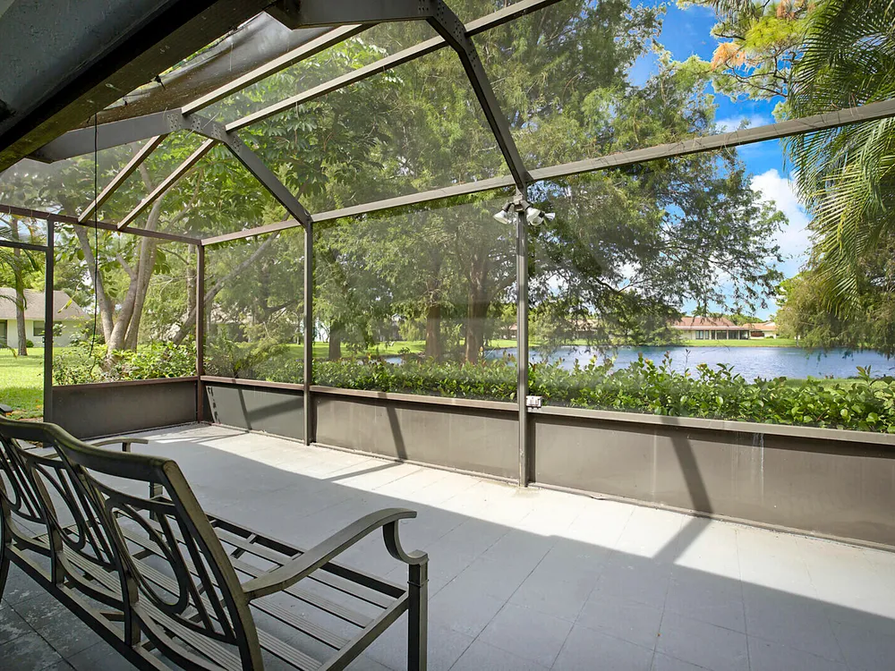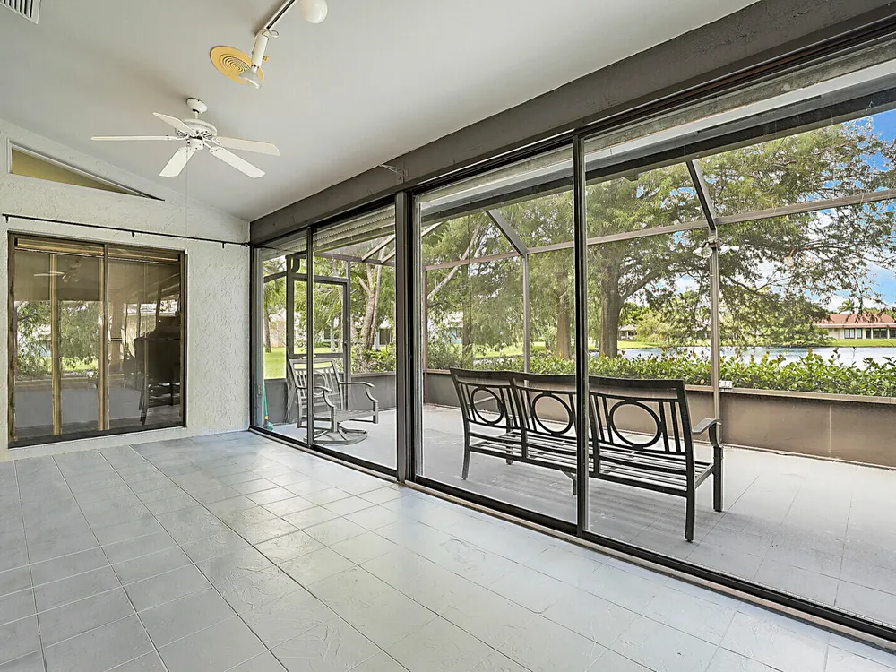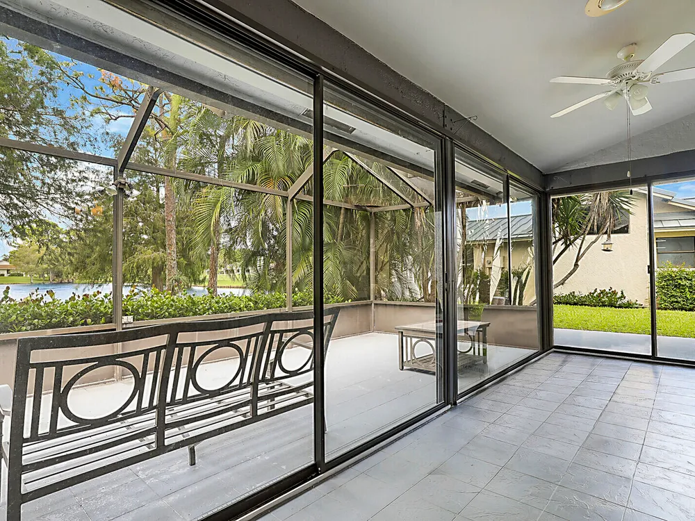 Fantastic 2-bedroom, 2-bathroom home with 2 car garage and a double lanai one with a glass enclosure for an oversized Florida room and the other is a screened enclosure for indoor outdoor living. Both show the expansive lake views. This home offers a newer A/C 2022, GE Electrical Panel, newer laminate flooring and an updated kitchen and more. Boca Delray & CC is a NON-MEMBERSHIP country club that allows ''Pay As You Play'' or Purchase Golf Membership if you desire. 24/7 manned gate, 18-hole, Par-60 Executive Golf course, pro-shop, 4 tennis courts, pickle ball, fitness center, restaurant, 2 pools and 2 entertainment clubs.