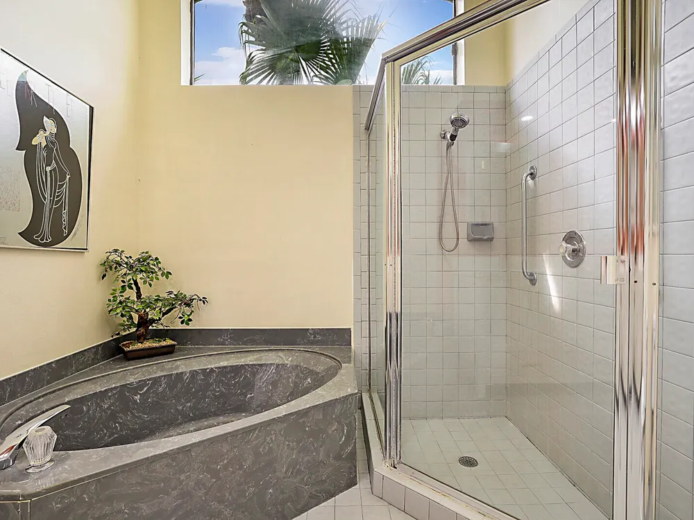 - Cathedral Ceiling(s), Garden Tub/Roman Tub, High Ceilings, Walk-In Closet(s), Attic, Florida Room, Storage, Kitchen/Dining Combo, Eat-in Kitchen, Primary Downstairs, Separate Shower