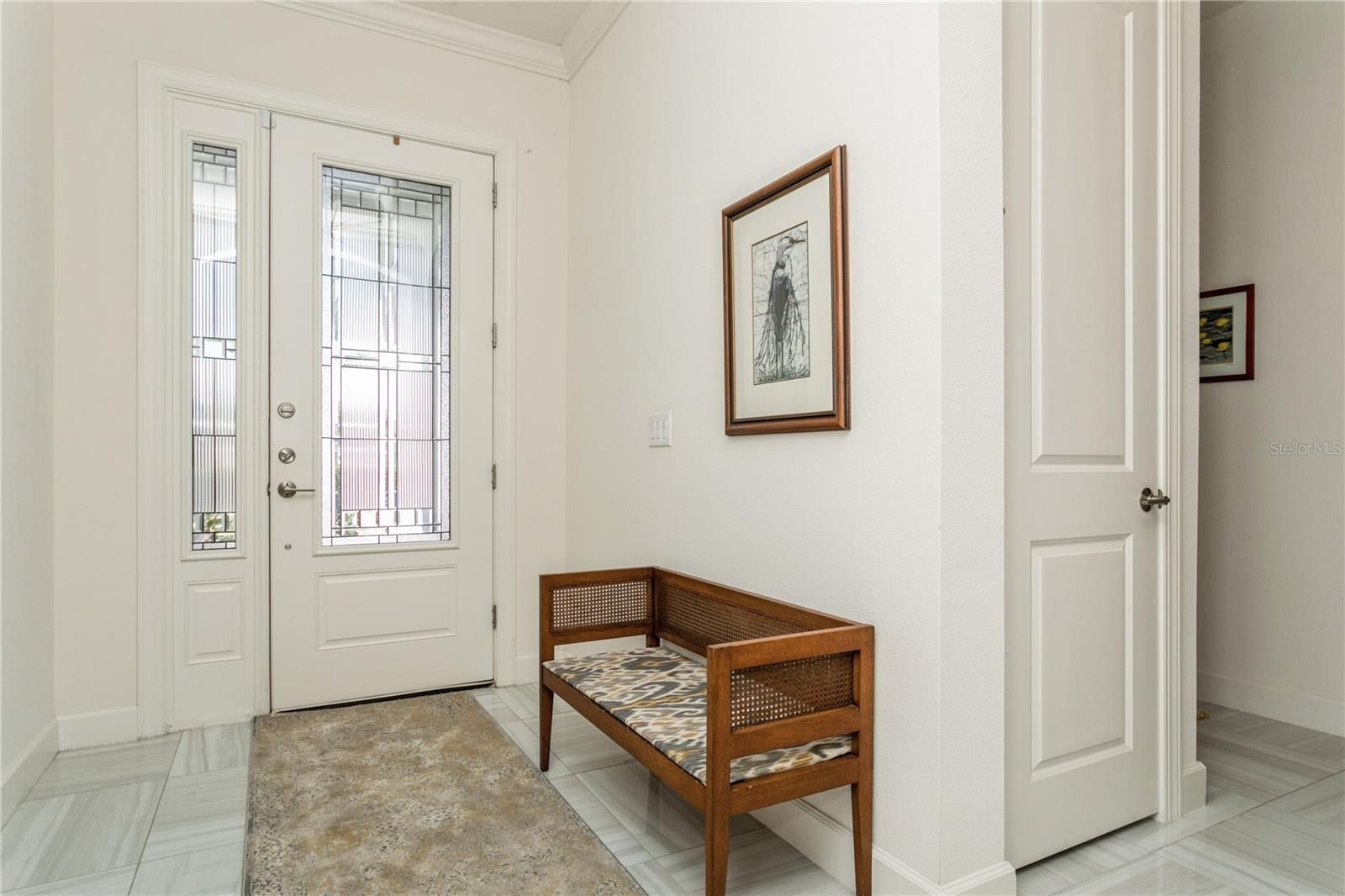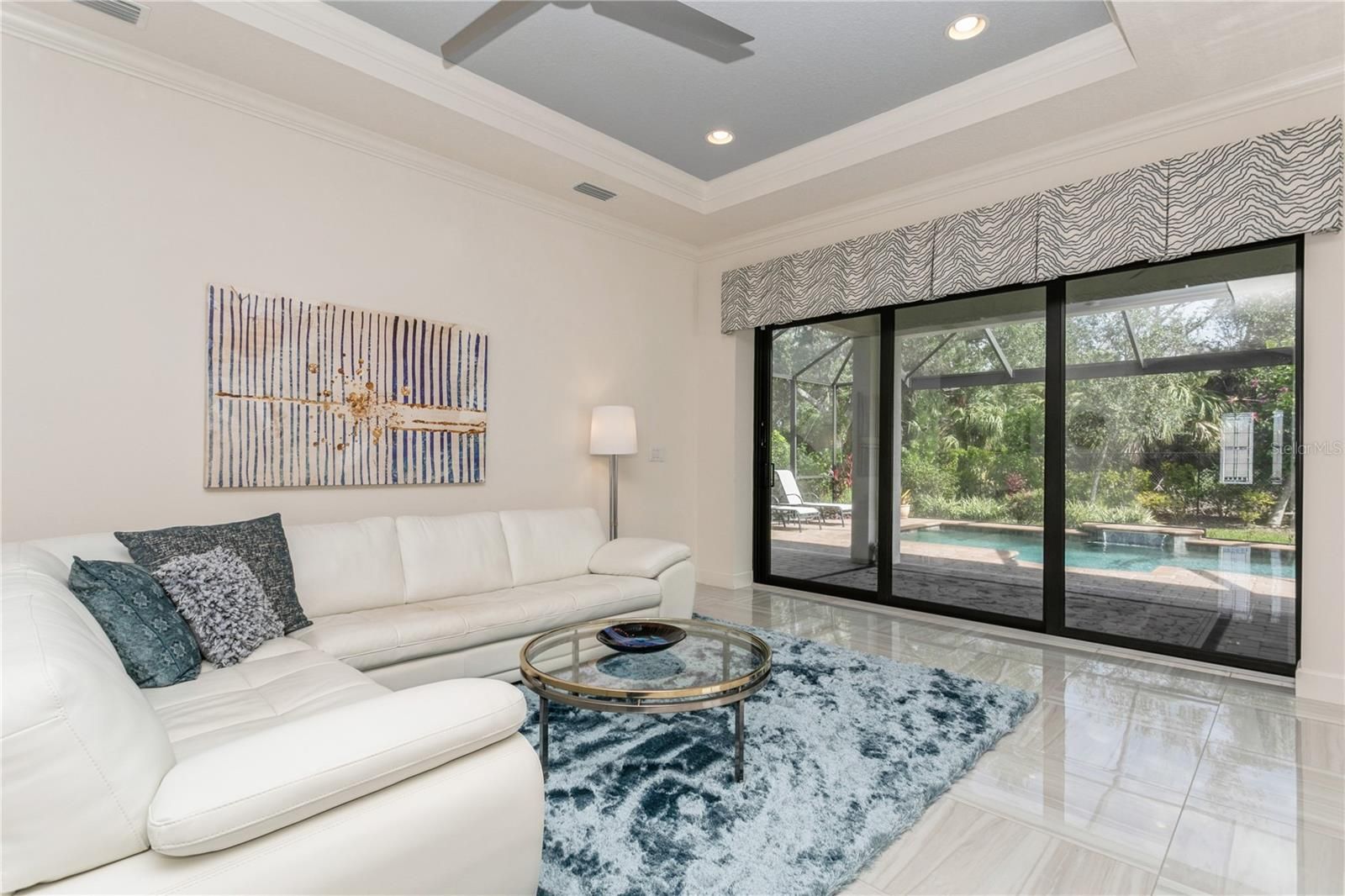 Live the Florida lifestyle you’ve been dreaming of in this stunning Taylor Morrison Farnese model, located in the resort-style, maintenance-free community of Bellacina by Casey Key! From the moment you arrive, this immaculate 2-bedroom, 2.5-bath plus den home impresses with impact windows and doors, timeless elegance, and a seamless blend of luxury and comfort. Step through stunning stain glass front door into the grand foyer with tray ceilings and crown molding, and you’ll immediately feel the sophistication that flows throughout. The 24” x 24” polished porcelain tile flooring extends through every room, perfectly complemented by custom Silhouette window treatments that fill the home with soft natural light. At the heart of the home, the gourmet kitchen is a chef’s delight — featuring a large island, quartz countertops, and stainless appliances including a natural gas range and showpiece refrigerator. Whether you’re cooking, entertaining, or enjoying morning coffee in the cozy breakfast nook, this kitchen delivers both style and function. The open living room invites relaxation with triple sliding glass doors that extend your living space outdoors to a screened lanai overlooking a serene preserve. Here, you’ll find your own private paradise — a sparkling rectangular pool with a waterfall and sun shelf, plus space already plumbed for an outdoor kitchen — perfect for hosting unforgettable gatherings. Your primary suite is a true retreat, offering tranquil views, a large walk-in closet, and a spa-worthy ensuite bath with a beautifully tiled walk-in shower. Guests will appreciate the privacy of their own en-suite bedroom, while the den provides flexible space for a home office or media room. Additional highlights include a fully equipped laundry room, epoxy-coated extended garage, and peace of mind knowing the home sits in a non-flood zone with no CDD fees. Beyond your front door, Bellacina by Casey Key offers an unparalleled lifestyle — with resort-style amenities including a heated community pool with cabanas, clubhouse with chef’s kitchen, 24-hour fitness center, outdoor spa, fire pit, and plenty of ways to stay active: pickleball, tennis, bocce ball, walking trails, dog parks, and a playground. A full-time activities director ensures there’s always something exciting on the calendar! And when you’re ready to explore, you’re just 2.5 miles to Nokomis Beach, 5 miles to historic Downtown Venice, and a short drive to Siesta Key, Downtown Sarasota, and SRQ Airport. This isn’t just a home — it’s a lifestyle of luxury, leisure, and coastal living at its finest. Schedule your private showing today before this exceptional opportunity slips away!