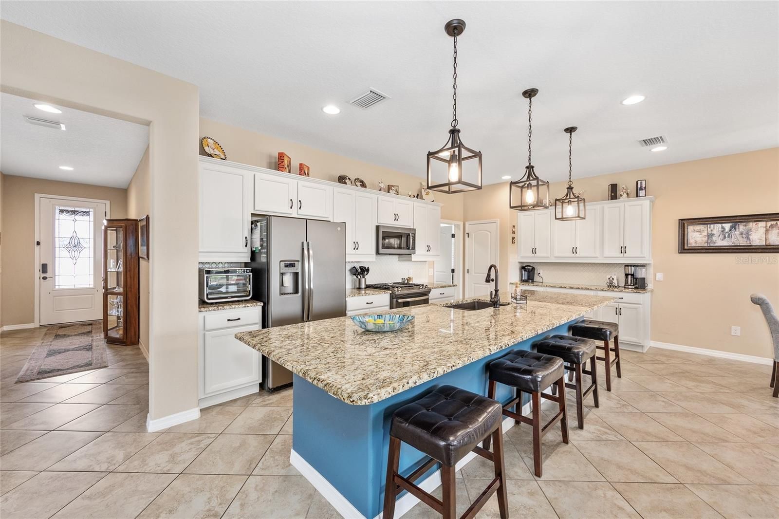 PRICED HAS BEEN REDUCED! This home has it all, don't miss this opportunity ! Resort-Style Living in a Shea Home - Connect upgraded model! This well-designed block home, set on a corner lot with no rear neighbor, features a stone facade and a widened brick paver driveway with an additional two feet on each side. Outdoor living is enhanced by custom landscaping, a 16 x 21 brick paver courtyard with stone knee-wall & a pre-plumbed gas line with shut off valve. There is also a comfortable screened lanai with an upgraded ceiling fan. Inside, the flexible floor plan offers 3 bedrooms and a den, office, work-out room with built in bookshelves; highlighted by granite counters, bullnose corners, 36" upper kitchen cabinets with LED under cabinet ambient lighting. Upgraded appliances, island with sink, casual dining area and extra cooking space ideal for baking, etc. Additional features include , comfort-height toilets and closet organizers. Smart and energy efficient features a NEST programmable WIFI thermostat, 50 Gallon STATE hot water heater and a PELICAN two stage water filtration system. The garage is equipped with an overhead storage rack system and durable floor coating. Custom light fixtures, an irrigation system, gutters and downspouts and numerous upgrades complete this move-in ready home.