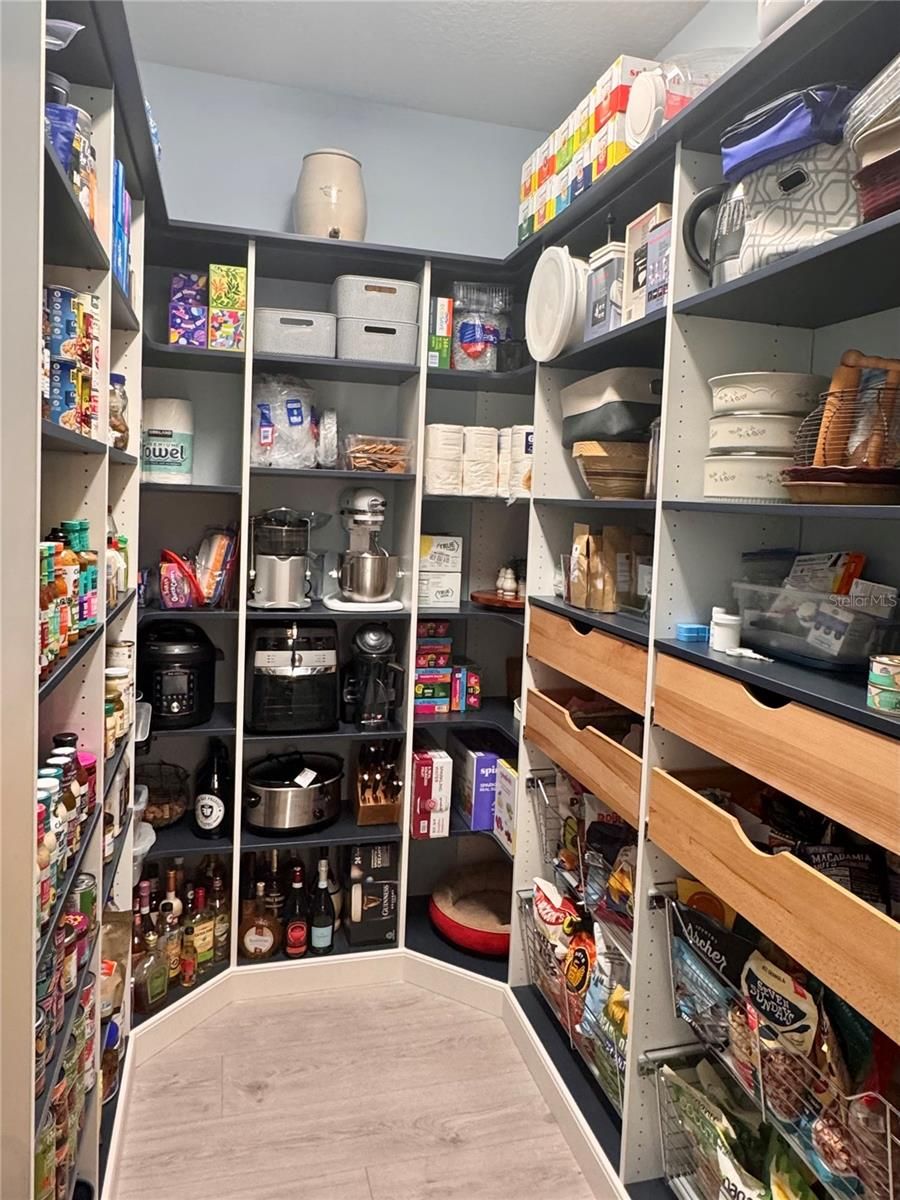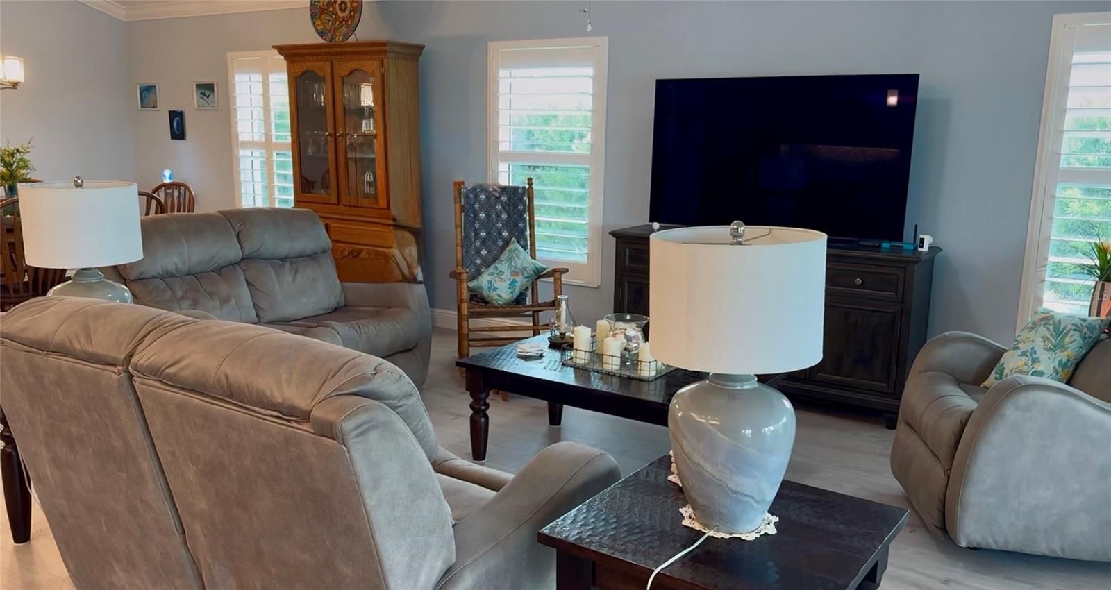 Welcome to this absolutely stunning CUSTOM DESIGNER home where modern elegance meets relaxed Florida living. Perfectly situated on a serene water view lot, with a preserve view, this nearly new residence offers both beauty and functionality at every turn. From the moment you arrive, the curb appeal captures your attention. From the decorative driveway with a custom turtle design to the rich navy-and-pale blue exterior accented by crisp trim, lush landscaping, and stylish lighting.Step inside and prepare to be wowed. The open-concept layout is bright, airy, and finished with upscale touches throughout. The gourmet kitchen is the true heart of the home, featuring dramatic Navy cabinetry, striking quartz countertops, an oversized island with pendant lighting, and a designer tile backsplash that extends all the way to the ceiling. Stainless steel GE Profile appliances — including a gas cooktop, wall oven, and built-in microwave, combine performance with style. A walk-in custom pantry offers exceptional storage and organization for the home chef.The spacious living and dining areas flow effortlessly, enhanced by waterproof Laminate flooring, crown molding, and abundant natural light. The primary suite is a luxurious retreat, complete with a tray ceiling, large closet, and a spa-inspired en-suite bath. Here you’ll find double vanities, granite countertops, and a large, walk-in Roman-style shower with decorative tile. Guests will feel right at home, too, with a beautifully appointed guest bath and an additional bedroom with a pocket door offering comfort and privacy.Outdoor living is where this home truly shines. Step through the sliding doors to the expansive 29x20 screened lanai that’s all under cover. It’s an entertainer’s dream with a beautiful water and preserve view Whether it’s your morning coffee or an evening glass of wine, this space invites you to unwind and enjoy the view. Down a separate hallway, you will find a large laundry with built-ins, a linen closet ,and bedroom #3 which has a built-in Murphy Bed and walk-in closet.The oversized three-car garage (including golf cart space) features epoxy flooring, built-in organization, and room for all your Florida toys. Additional upgrades include a tankless water heater, upgraded lighting throughout, and meticulous attention to detail in every corner.Located close to recreation centers, golf, shopping, and dining, this home combines luxury, convenience, and a peaceful setting — offering the best of The Villages lifestyle. 5675 Melvin Drive is more than a home — it’s your next beautiful chapter in Florida living. Call me today!!!