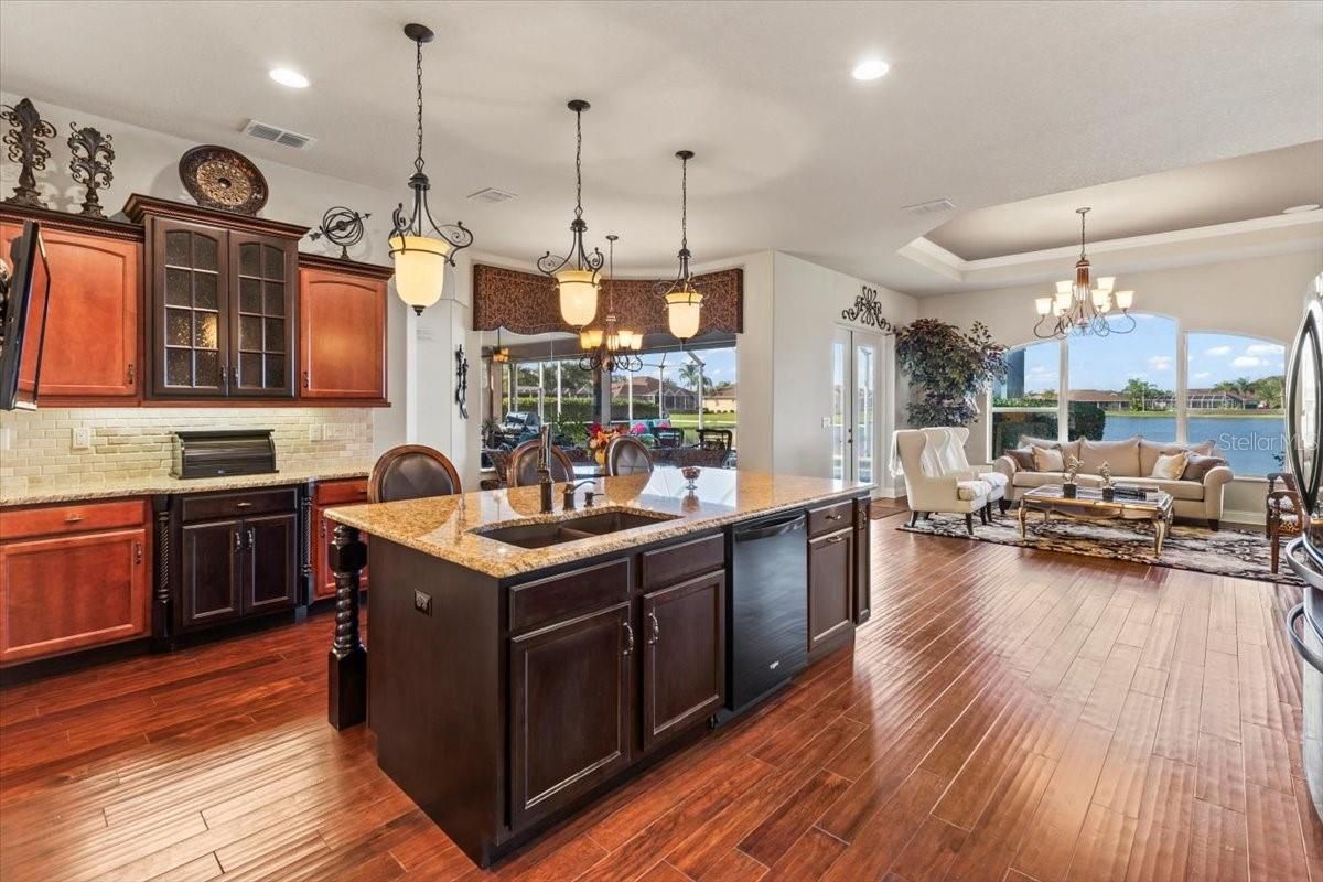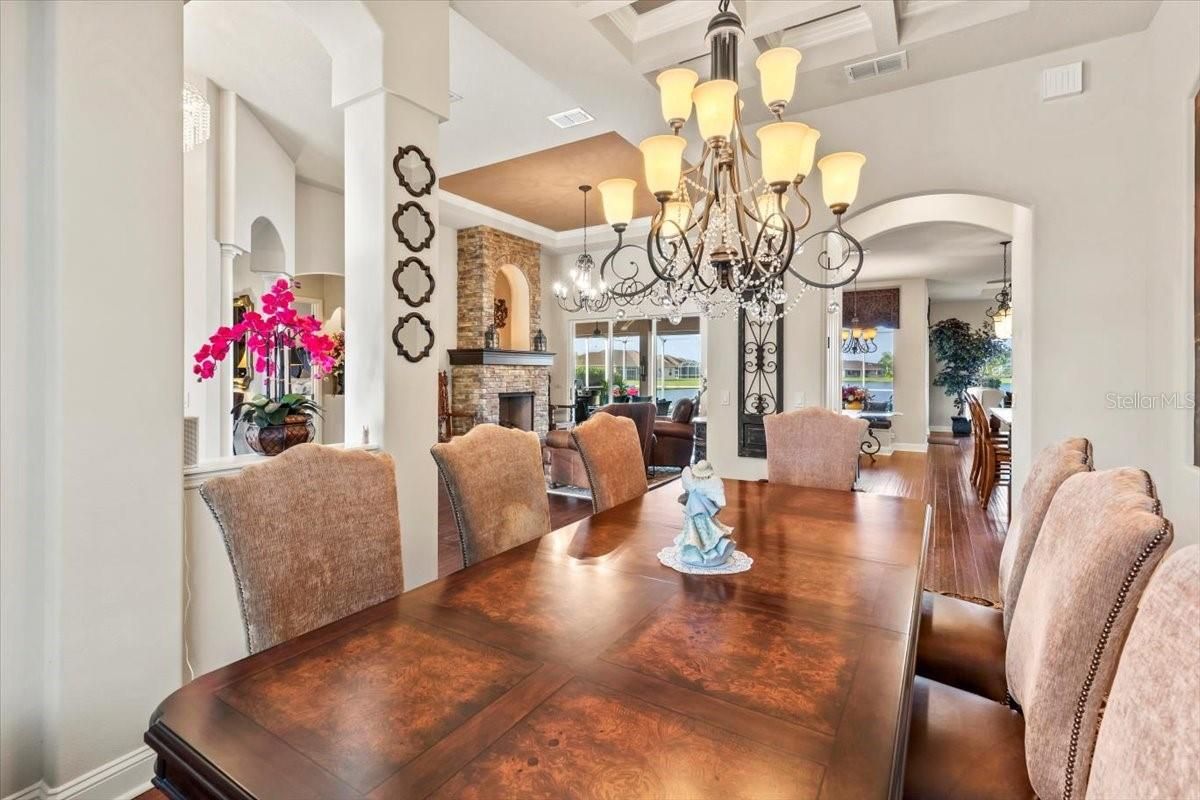 SITED ON PARK-LIKE GROUNDS WITHIN PROMENADE PARKE, THE MEDITERRANEAN-INSPIRED HOME EXTENDS A FORMAL WELCOME THROUGH LANCET ARCHES, STONE COLUMNS AND PAVER DRIVE THAT SPEAK OF SPANISH INFLUENCE. DRIPPING WITH LUXURY DETAILS AND SPLENDID OUTDOOR LIVING THIS WATERFRONT ESTATE IS IMPRESSIVELY SITUATED ON THE WATER! DOUBLE LEADED GLASS ENTRY DOORS OPEN TO ELEVATED CRAFTSMANSHIP WITH LAVISH FINISHES THAT CATER TO THE EXPECTATIONS OF TODAY'S LUXURY BUYER. IMMEDIATELY GREETED BY 10 FOOT CEILINGS AND AN OPEN, AIRY FLOOR PLAN THAT FEELS BOTH GRAND & WELCOMING. AT THE CENTER OF THE AMENITY SUITES IS THE WINE ROOM, THAT PLACES YOUR SPECIALTY WINES ON DISPLAY AND PROVIDES A FOCAL POINT AND SIMULTANEOUSLY CREATES A MEMORABLE SOCIAL EXPERIENCE WHILE ENTERTAINING. BEYOND THE DEN WITH A GAS, STONE FIREPLACE IS THE OUTDOOR LEISURE ROOM VISIBLE THROUGH WALLS OF GLASS. THE 1,000 SQUARE FEET OF COVERED OUTDOOR LIVING IS EQUIPPPED WITH A SUMMER KITCHEN, TV & BAR, A LINEAR FIRE PIT & GRILLING STATION, MULTIPLE LOUNGE AREAS INCLUDING A MARTINI SPOT WITH A LUXURIOUS POOL BATH AND BREEZY LAKE VIEWS. THE WATERSIDE, HEATED SALTWATER SWIMMING POOL SHOWCASES CARIBBEAN BLUE PEBBLE TECH FINISH AND SCREENED ENCLOSURE. THIS RESORT-STYLE ENTERTAINMENT AREA IS THE IDEAL PLACE TO UNWIND & RELAX TO THE FOUNTAIN THAT ADDS AN UNCOMMON SENSE OF OPENNESS AND TRANQUILITY. INSIDE COLUMNS, ARCHWAYS, BUILT-INS AND COFFURED CEILINGS ACCENT THE FLOWING 3 WAY SPLIT FLOOR PLAN THAT OFFERS PRIVACY AND NATURAL MOVEMENT. OFFERED DECORATOR FURNISHED AND TURN-KEY READY. THE STUNNING KITCHEN TO SERENE BEDROOM RETREATS, EVERY DETAIL IS CURATED FOR COMFORT AND STYLE. THE DINING AREA SERVES 12 COMFORTABLY FROM THE BURLWOOD TABLE, IN A MATCHED BOOKEND DESIGN ADJACENT TO THE DREAM KITCHEN, DESIGNED TO ACCOMMODATE MULTIPLE PREPARATION AREAS. EQUIPPED WITH FURNITURE QUALITY CABINETRY, FULLY INTEGRATED APPLIANCES, A BUTLER'S PANTRY AND BUILT-IN BANQUETTE SEATING WITH GLASS SURROUND, EMPHASIZING THE HOME'S SEAMLESS CONNECTION BETWEEN INDOOR COMFORT AND OUTDOOR BEAUTY. THE GRAND LIVING ROOM FEATURES CUSTOM WINDOWS AND A MEDIA WALL, DESIGNED FOR INTIMATE LIVING AND LARGE SCALE ENTERTAINING, THAT OPENS TO THE STONE PAVED LOGGIA, ALLOWING FOR EFFORTLESS INDOOR-OUDOOR FLOW. ALL WATERFRONT ROOMS ARE EQUIPPED WITH HURRICANE SHUTTERS FOR ADDED PROTECTION DURING A STORM. THE PRIMARY SUITE IS A PRIVATE SANCTUARY WITH TREY CEILINGS,HIS & HERS CLOSETS AND MAJESTIC BATHROOM, USES WARM NEUTRAL TONES, DECORATIVE MOSAIC TILES, TRANSOM LIGHTING AND GENEROUS WALK-IN SHOWER. THE SECONDARY BEDROOM SUITES, EACH WITH THEIR OWN BATH, CLAD IN RICH WOOD WITH BESPOKE, OIL RUBBED BRONZED FIXTURES ARE LOCATED IN THE GUEST WING AND CONVENIENT TO THE CHEF INSPIRED KITCHEN. VENETIAN BAY OFFERS INSTANT ACCESS TO TOP-TIER DINING, BEACHES AND I-4 TO THE THEME PARKS. COMPLEMENTING THIS ELEGANT LIFESTYLE IS THE LOCATION IN PROMENADE PARKE, CONVENIENTLY LOCATED TO THE GOLF & COUNTRY CLUB, THE TOWNE CENTER WITH A FITNESS CENTER, A WELLNESS SPA, AN 18 HOLE CHAMPIONSHIP GOLF COURSE AND TIKI COVE-BAR AND RESTAURANT. THIS IS A TRUE WORLD-CLASS RESIDENCE THAT COMBINES EUROPEAN ROMANCE WITH MODERN FLORIDA LIFESTYLE, OFFERING BOTH SUMPTUOUS AND SERENE LIVING IN ONE OF THE AREA'S MOST COVETED COMMUNITIES OF NEW SMYRNA BEACH!