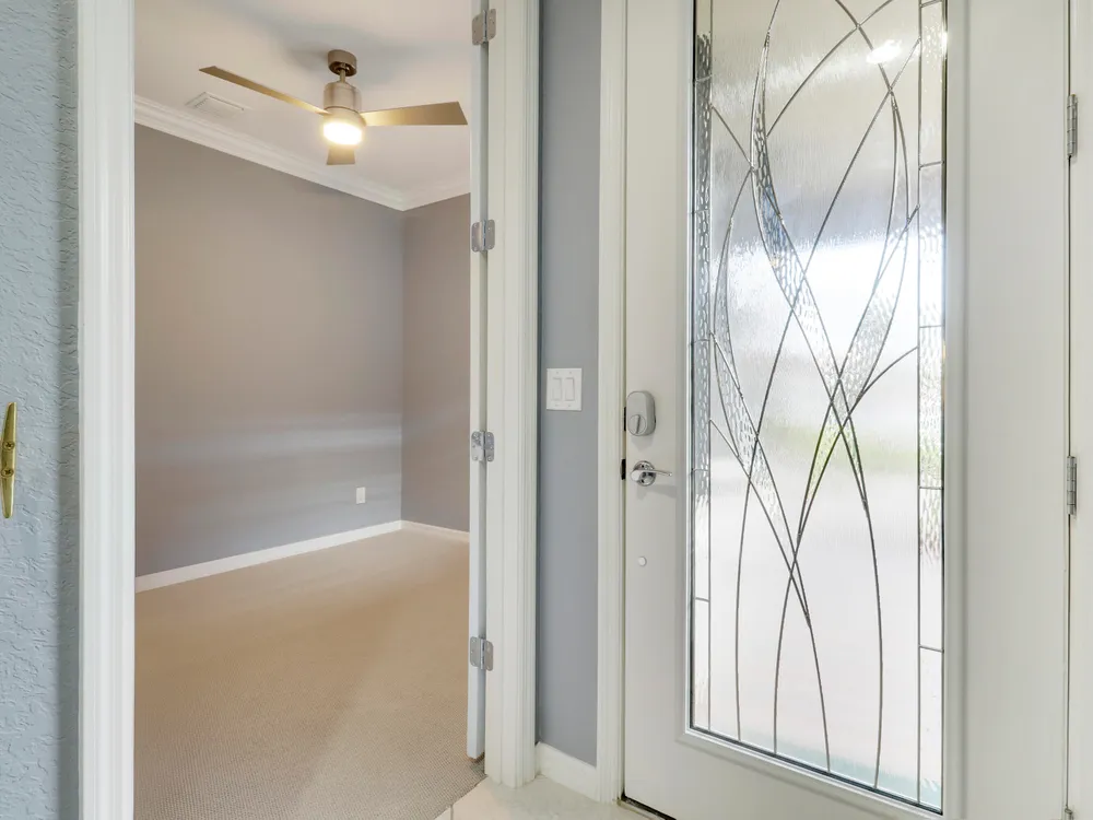 - Kitchen Island, Multiple Living Areas, Home Office, Loft, Impact Glass, Plantation Shutters, Primary Downstairs, Storm Shutters