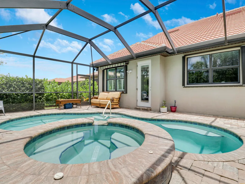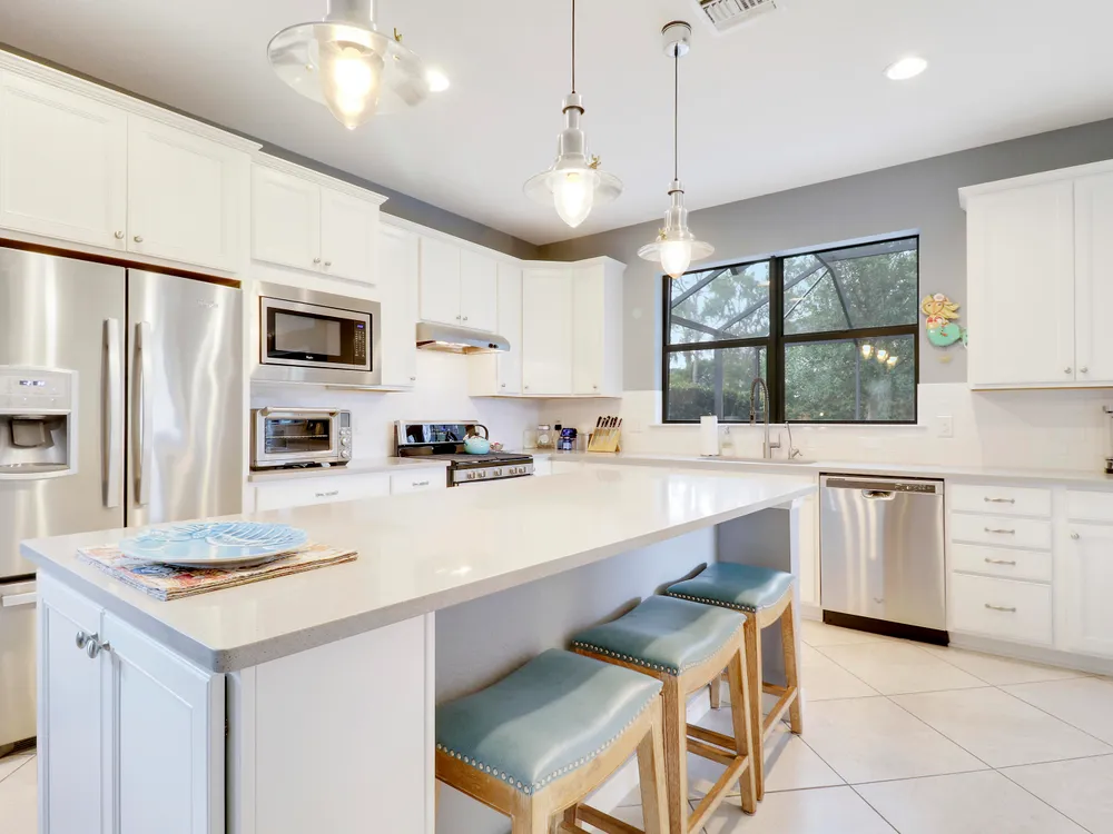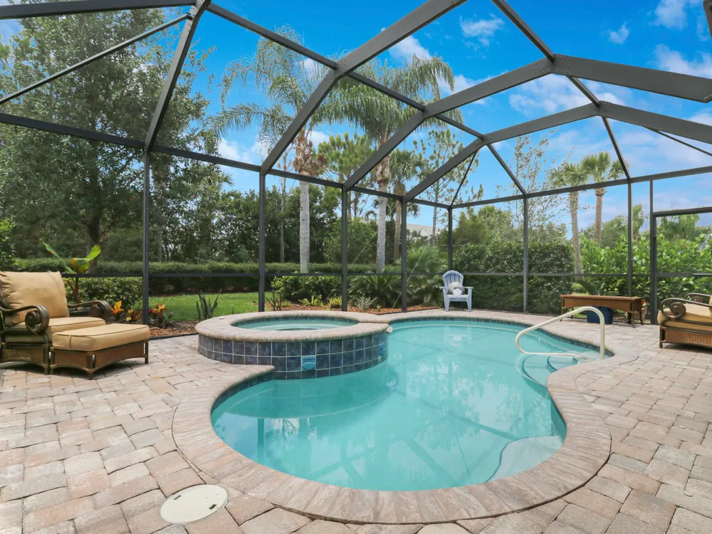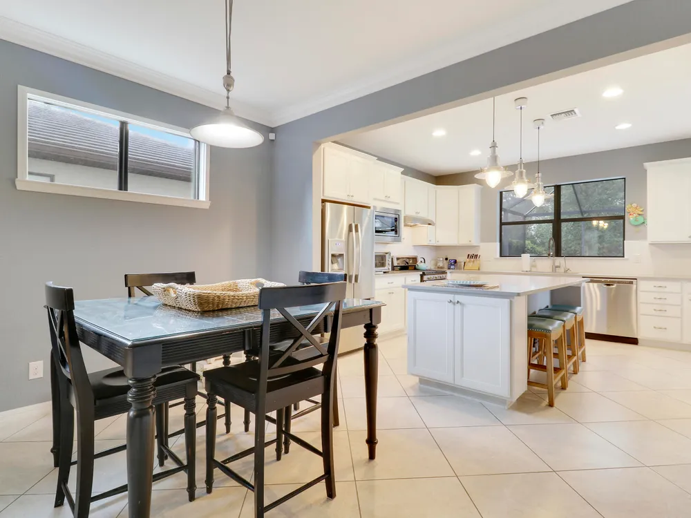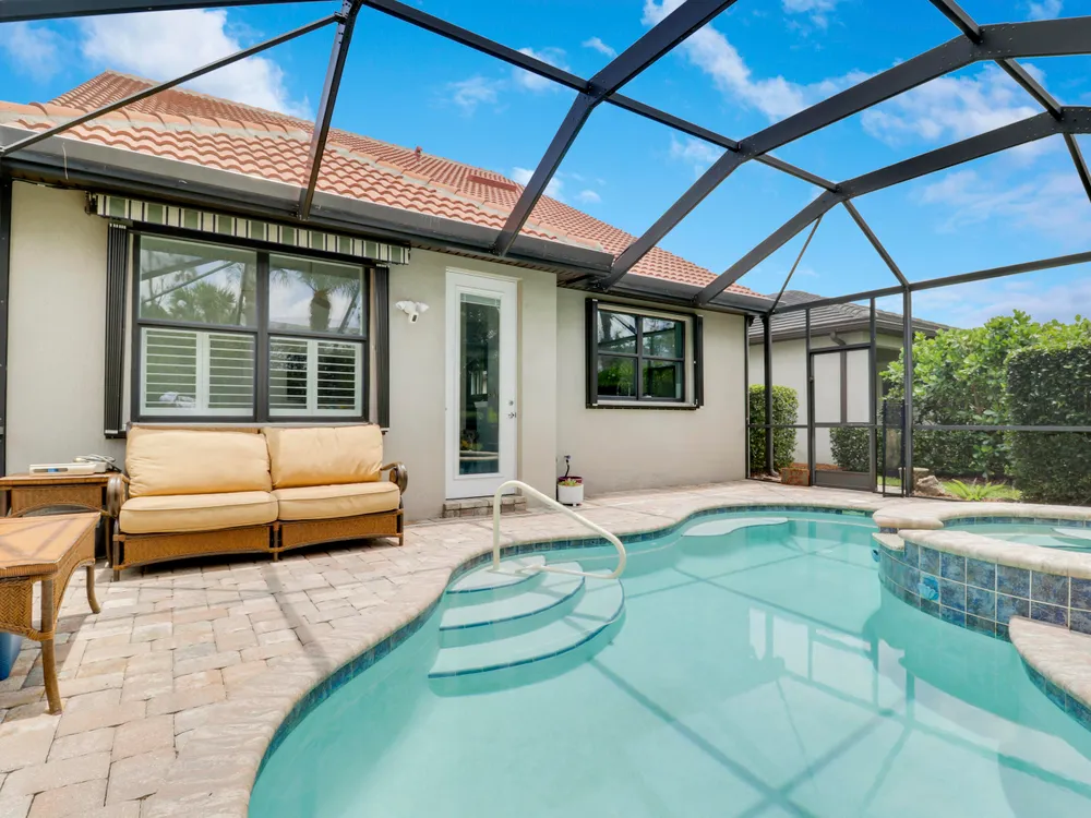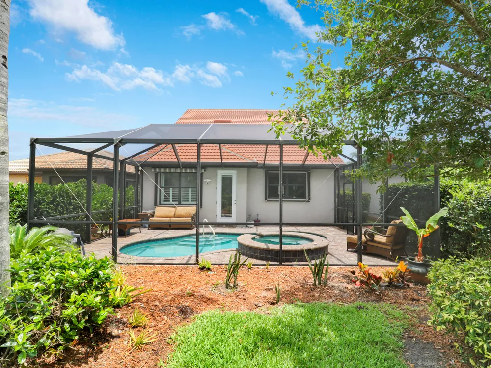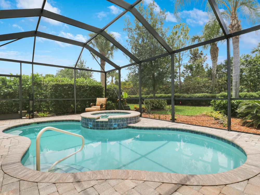Heated pool and spa home with your own private resort! This stunning 3-bedroom, 3-bath home includes a den and spacious bonus loft, perfect for a home office, guest space, or playroom. The modern kitchen features quartz countertops, stainless steel appliances, and a large island for gathering. Enjoy a bright, open floor plan with plenty of natural light, ideal for entertaining. New impact windows upstairs add storm protection and energy efficiency. Located in a gated community with resort-style amenities: heated pool, spa, fire pit, clubhouse, and fitness center. Near top dining, shopping, I-95, and FL Turnpike