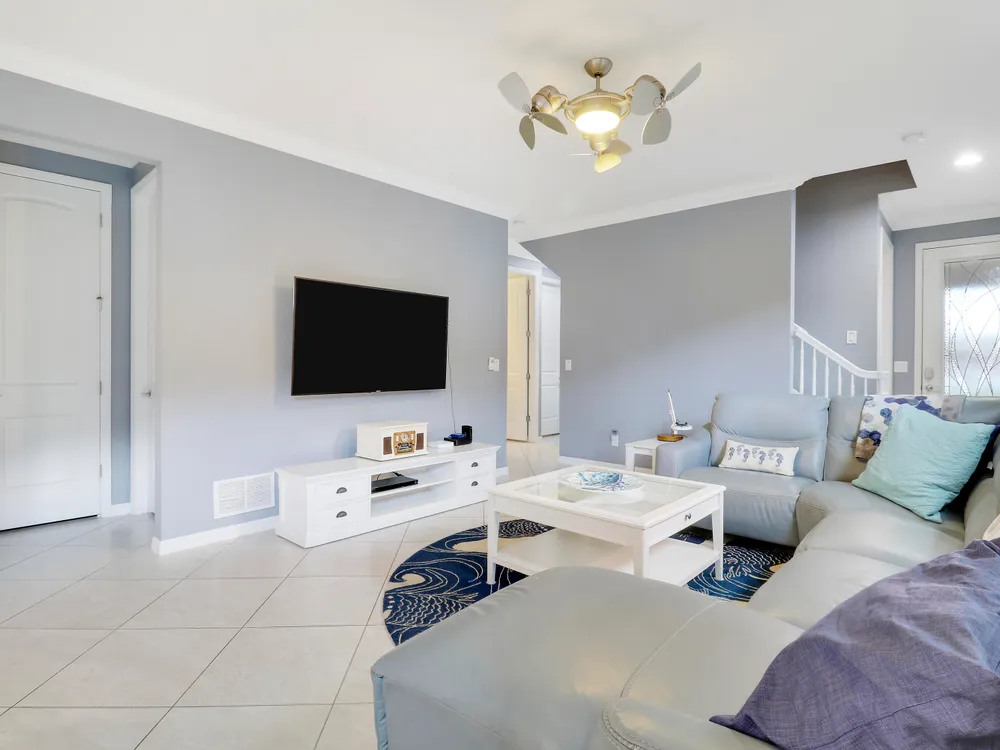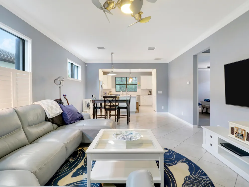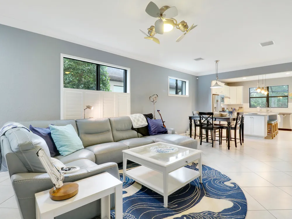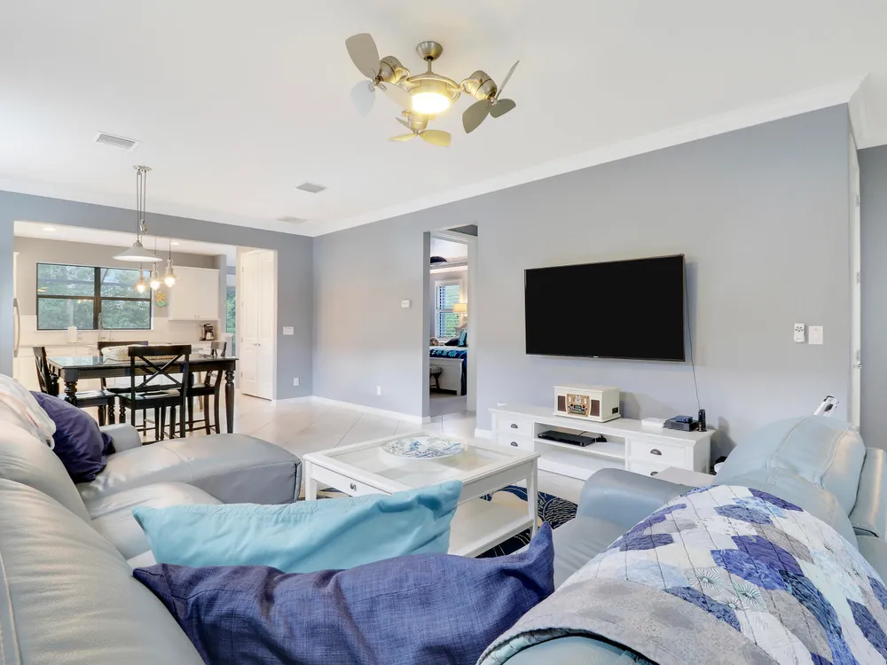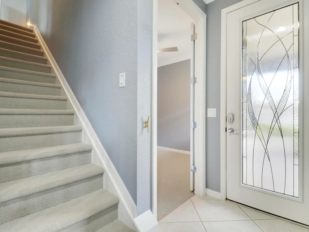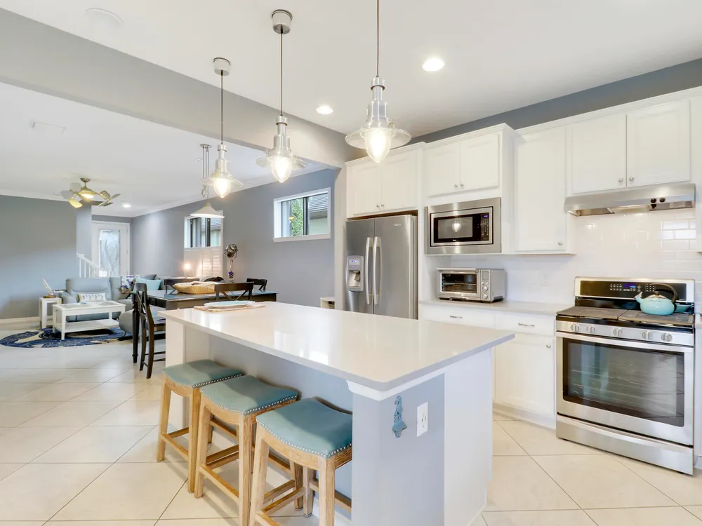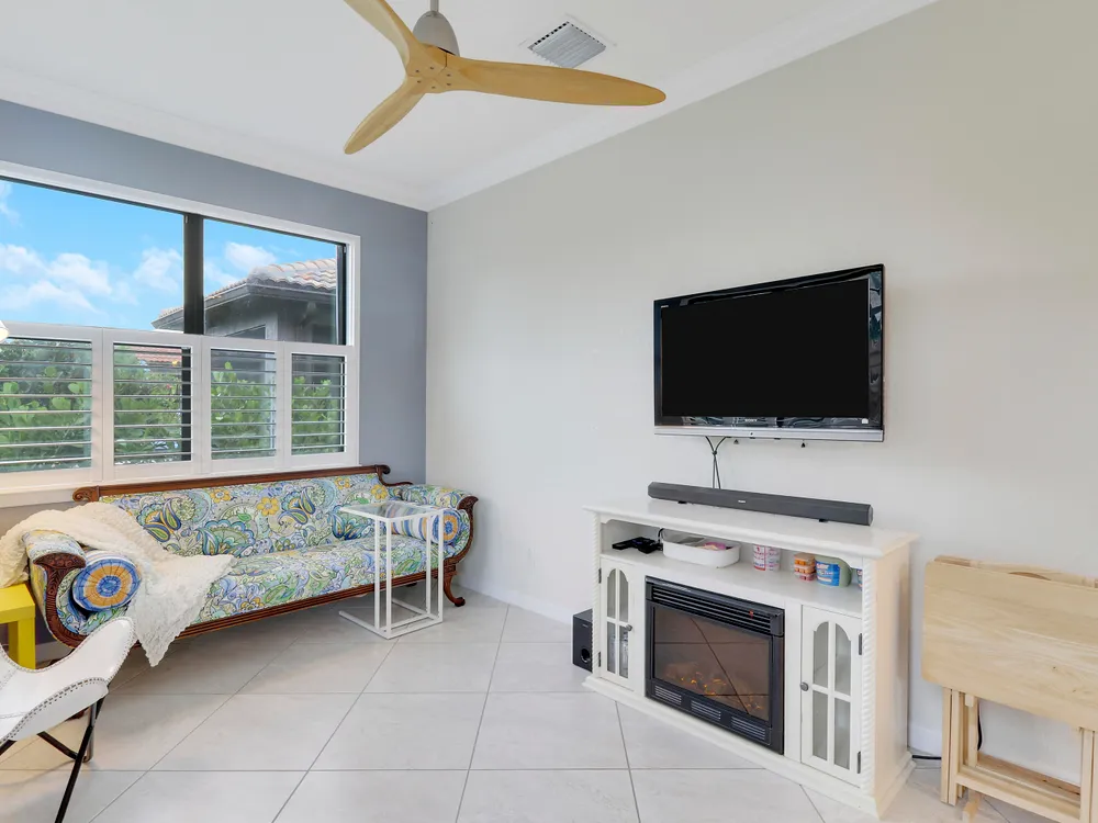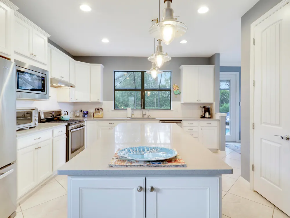 Heated pool and spa home with your own private resort! This stunning 3-bedroom, 3-bath home includes a den and spacious bonus loft, perfect for a home office, guest space, or playroom. The modern kitchen features quartz countertops, stainless steel appliances, and a large island for gathering. Enjoy a bright, open floor plan with plenty of natural light, ideal for entertaining. New impact windows upstairs add storm protection and energy efficiency. Located in a gated community with resort-style amenities: heated pool, spa, fire pit, clubhouse, and fitness center. Near top dining, shopping, I-95, and FL Turnpike