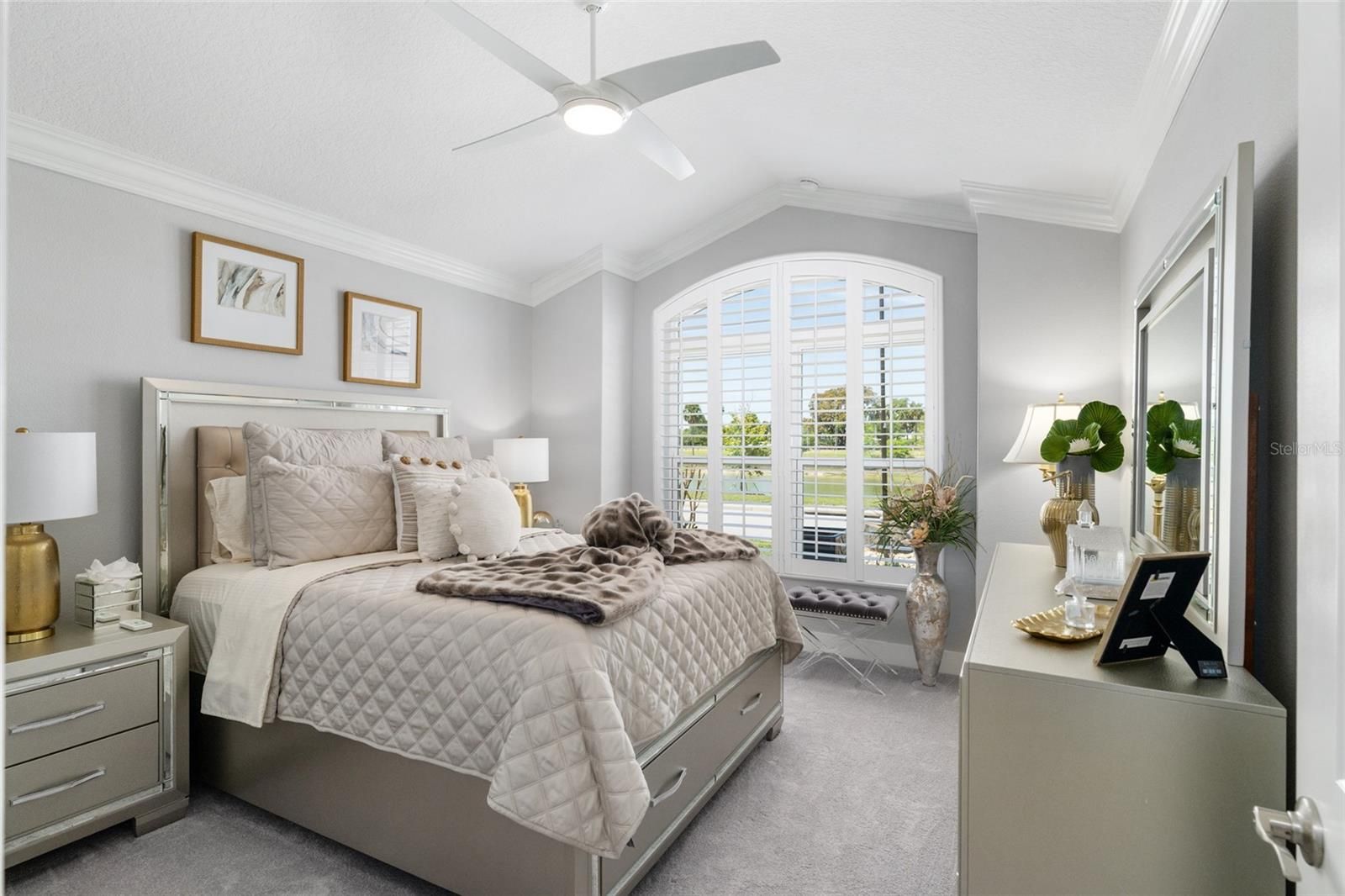 - Attic Ventilator, Ceiling Fan(s), Crown Molding, Living/Dining Room, Open Floorplan, Smart Home, Split Bedrooms, Tray Ceiling(s), Vaulted Ceiling(s), Walk-In Closet(s), Window Treatments