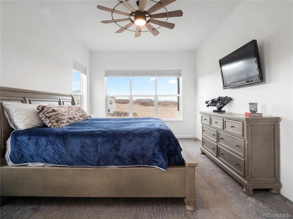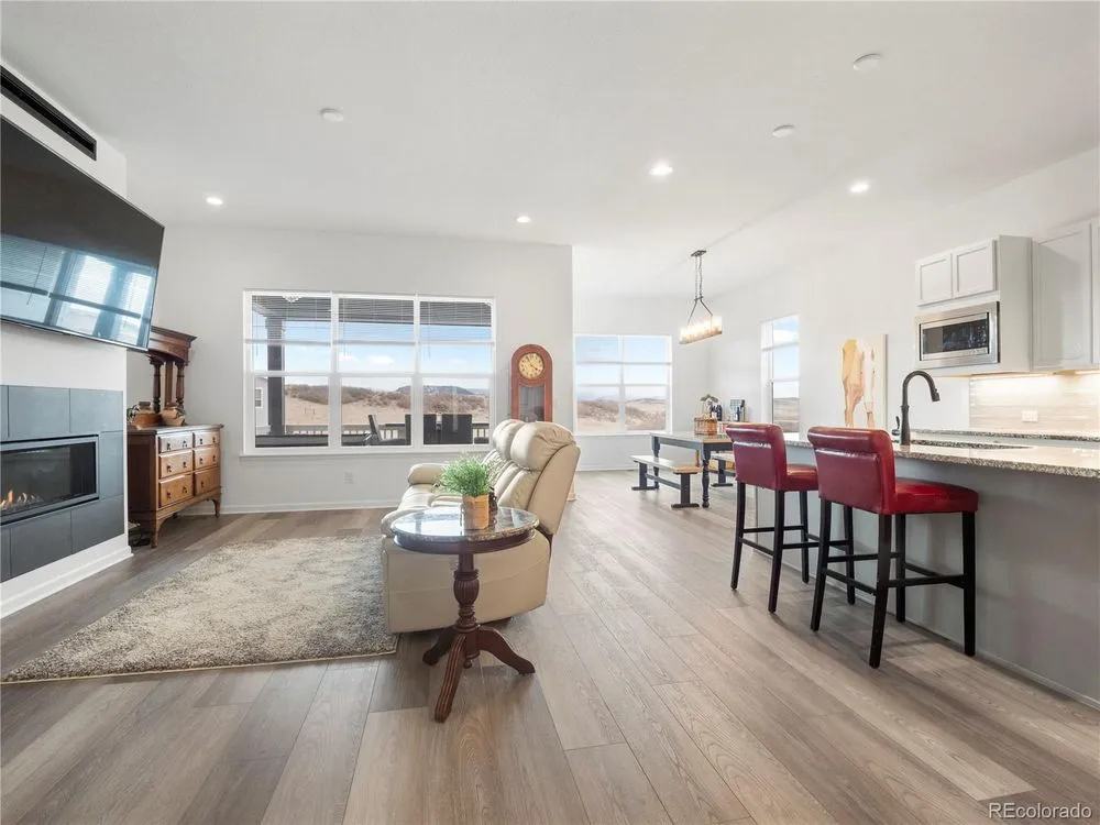 Step into style and sophistication with this stunning home. Designed for seamless living, this single-level ranch blends sleek modern design with effortless functionality. The open layout centers around a showstopping kitchen featuring a spacious island, granite countertops, high-end appliances, and an extended dining room. The living area flows effortlessly to a covered deck, where you’ll find breathtaking views of the open space and foothills beyond. The primary suite is a dream, complete with dual walk-in closets and a spa-inspired ensuite bath. A mudroom and dedicated laundry room add convenience, while the expansive unfinished walkout basement is brimming with potential. The home features and extra deep garage. This home also has solar installed to help with efficiency!. This is modern living at its best - don’t miss your chance to make it yours! The Regency at Montaine is a 55+ community that includes a fitness center, pool, hot tub, tennis and pickle ball courts. It is close to shopping, restaurants, hiking and biking trails.