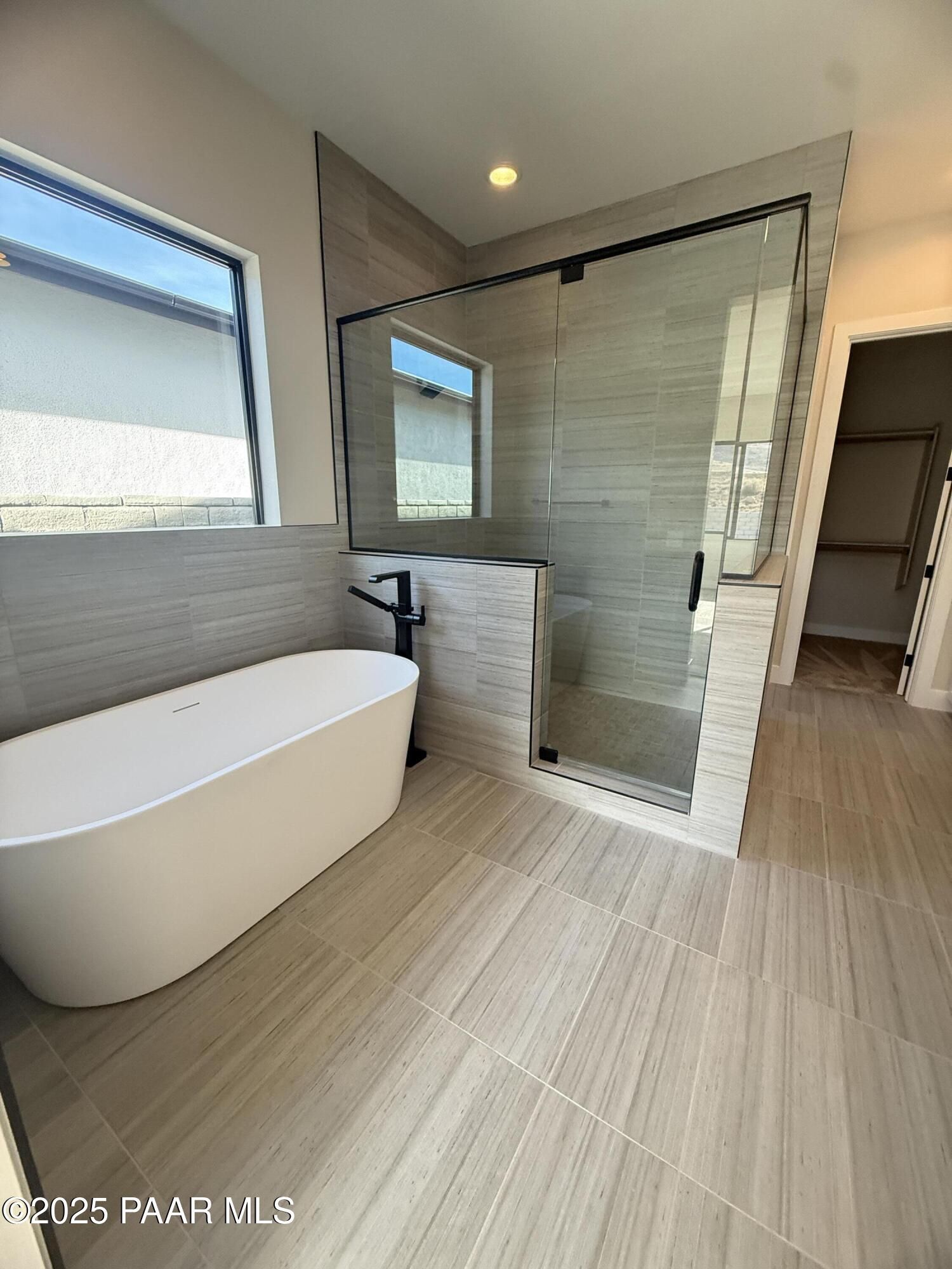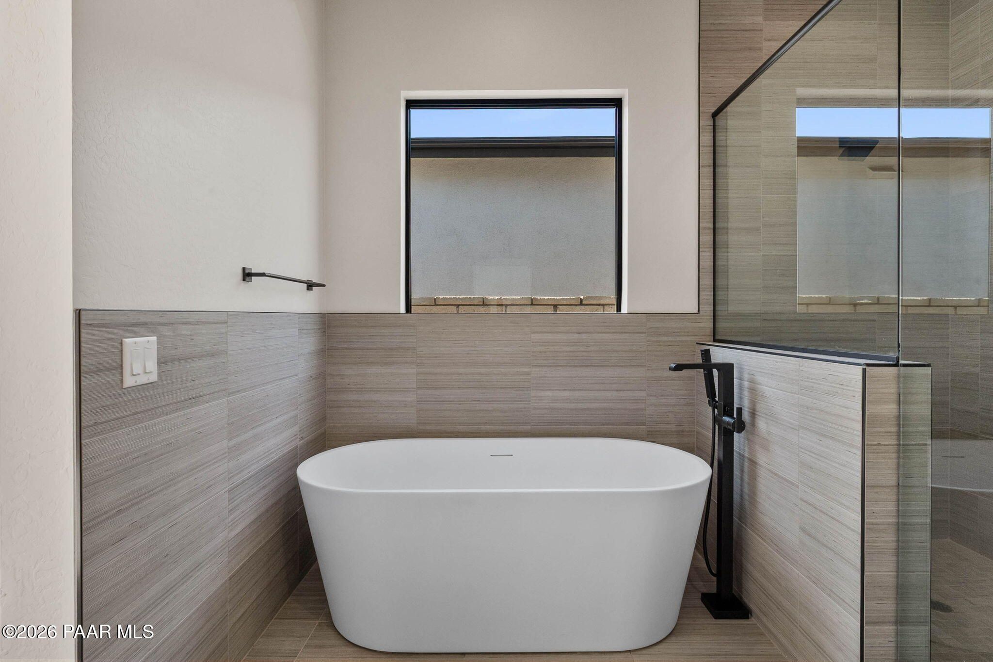 - Wired for Data, Soaking Tub, Kitchen Island, Living/Dining Room, Single Living Level, Primary Downstairs, Quartz Countertops, High Ceilings, Walk-In Closet(s), Washer/Dryer Hookup
