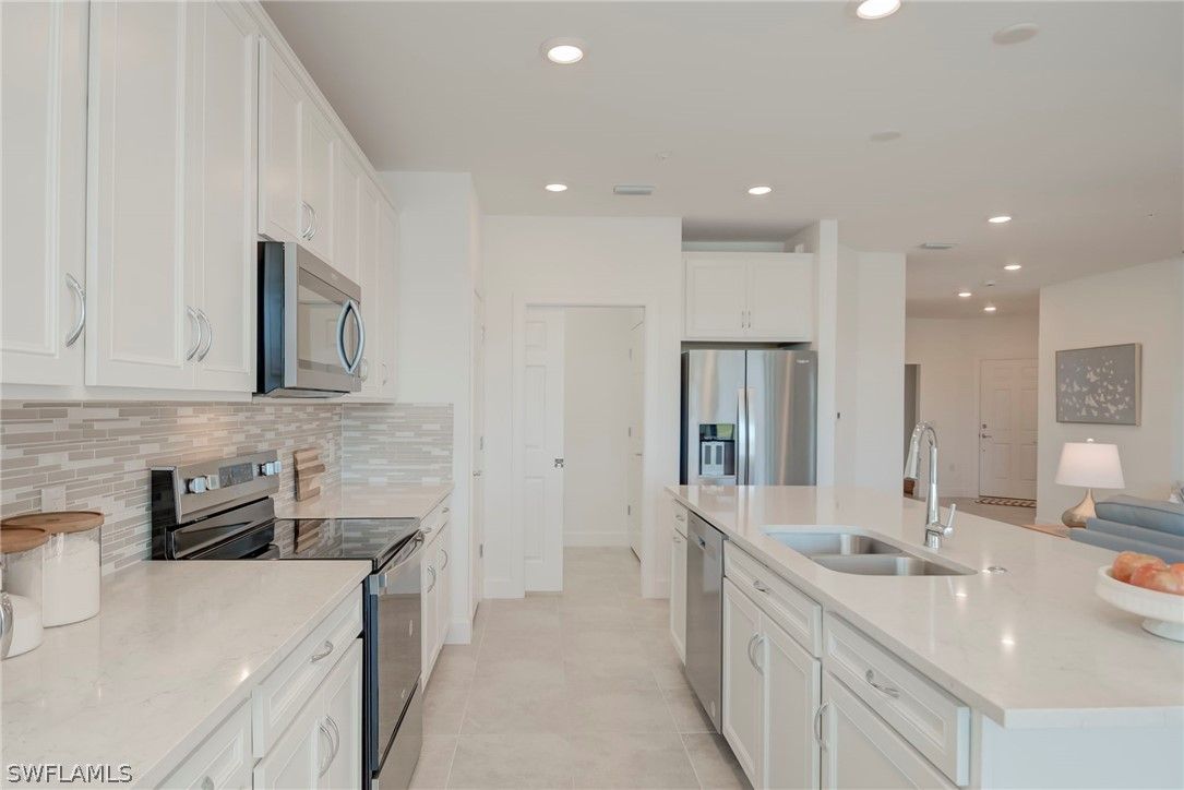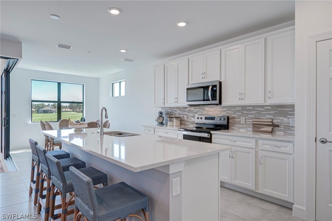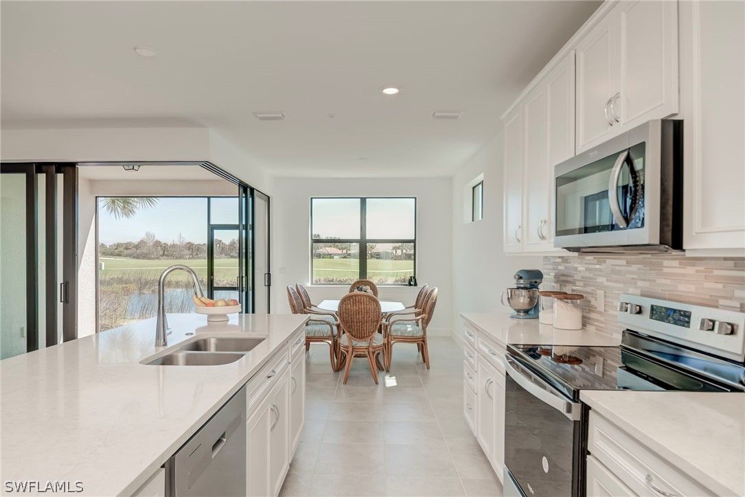 EXTREMELY MOTIVATED SELLERS! PRICE JUST REDUCED TO $289,900!! Located in highly sought-after 55+ Del Webb Naples, this 1st floor “EGRET” CARRIAGE home (2BR/Den/2BA) offers the perfect blend of luxury, comfort, & breathtaking natural beauty ~ PRICED AT THE LOWEST PRICE FOR THIS 2023 BUILT Model!! Start every morning with coffee & UNFORGETTABLE SUNRISES from private screened lanai. This PRISTINE END UNIT features ZERO-corner sliding glass doors, that seamlessly extend living space outdoors, showcasing SERENE LAKE VIEWS, ABUNDANT FLORIDA WILDLIFE & sounds of Nature, & picturesque scenery of golf course (6th hole). Step inside to a light-filled open-concept layout with tile flooring throughout and elegant finishes. Just off the entry, glass French doors lead to a versatile den—ideal for a home office or hobby room. The great room is enhanced by a wood accent wall, creating warmth and character. The GOURMET KITCHEN is truly the "heart of the home", featuring quartz countertops, stainless steel appliances, upgraded cabinetry, tile backsplash, custom pull-out drawers, & a large center island perfect for entertaining. The spacious owner’s suite offers peaceful views, a large walk-in closet, & an en-suite bath with dual vanities & a walk-in shower. The guest bedroom also features a walk-in closet & is conveniently located near the second full bath with tub/shower combination. Additional highlights include:• Epoxy-finished garage floor• A Great location just steps from South Park (where you can enjoy an amazing baseball field, 2 Tennis courts, Bocce, walking trails & Platform/stage for weekly Yoga & Pilates for the community) & a fenced dog park! Mayflower Condo HOA fees include: water, sewer, cable, building maintenance & insurance, fire alarm monitoring & repairs, roof & exterior paint reserves, pest control, & landscaping. EXCLUSIVE to CARRIAGE homeowners: enjoy a private pool & grilling area~perfect for relaxing & connecting with neighbors. Residents also enjoy full Del Webb amenity access, including:• Resort-style zero-entry pool, lap pool, spa• Steam and dry sauna rooms• Fitness and movement studios (Yoga, Pilates, and more)• Library, café, & beauty salon• Pickleball, tennis, bocce ball• The "Grand Hall" event center with catering kitchen• Golf simulator, billiards, cards, and meeting rooms• A vibrant calendar of social clubs and community events. Dine at the Rusty Putter at Panther Run Golf Club or explore nearby Ave Maria Town Center, our Beautiful Catholic Church, shopping, restaurants, Publix, community parks, water park, local events, and Ave Maria University activities open to the public. MIDTOWN now features NCH Urgent Care, Ace Hardware, Dunkin Donuts, Oil Well Brewery, Ledo's pizza, Coldstone Creamery, gas station & more! Experience Resort-Style Living, vibrant community life, and natural beauty all in one place ~~ PARADISE is waiting ~~ WELCOME HOME to Del Webb and Southwest Florida! ~MOVE-IN READY & PRICED TO SELL~