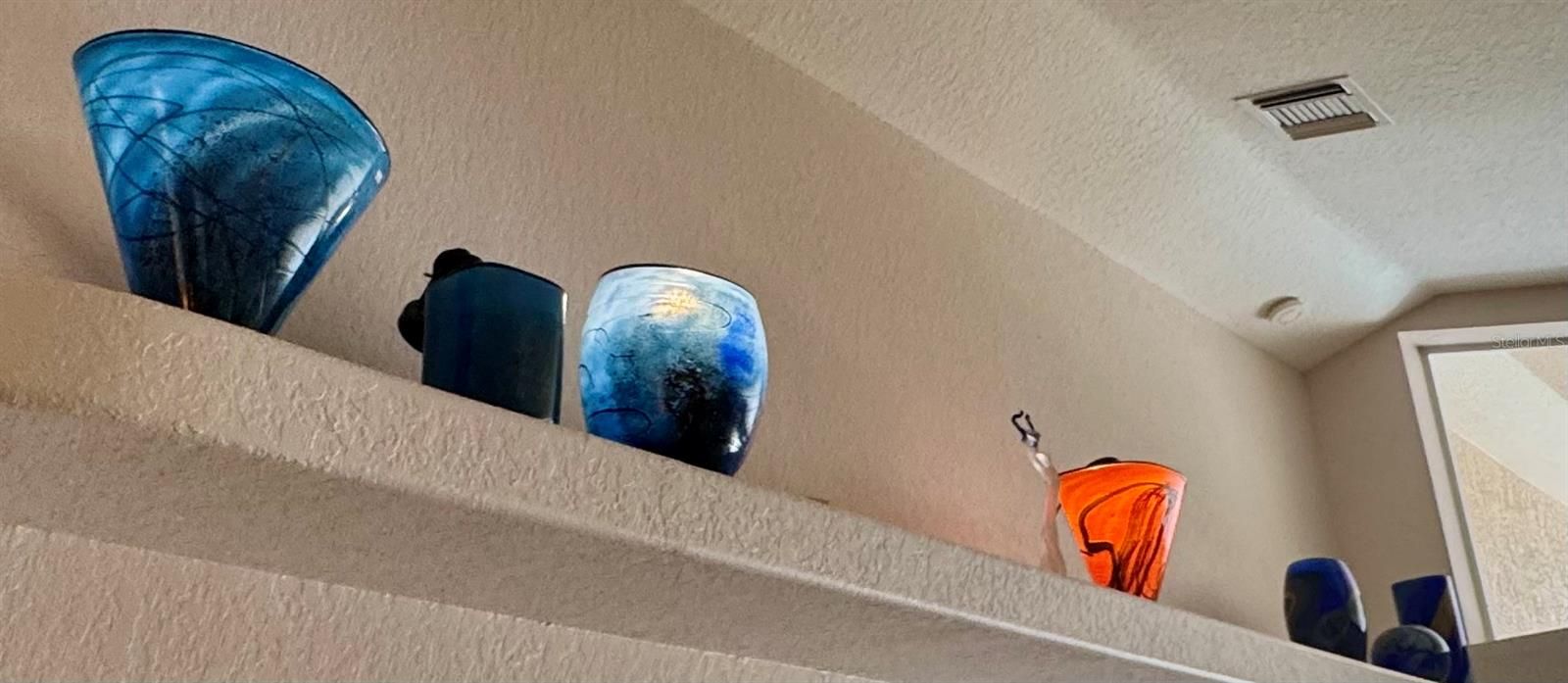 - Attic Ventilator, Cathedral Ceiling(s), Ceiling Fan(s), Crown Molding, High Ceilings, L-Shaped Dining Room, Open Floorplan, Main Level Primary, Walk-In Closet(s), Window Treatments