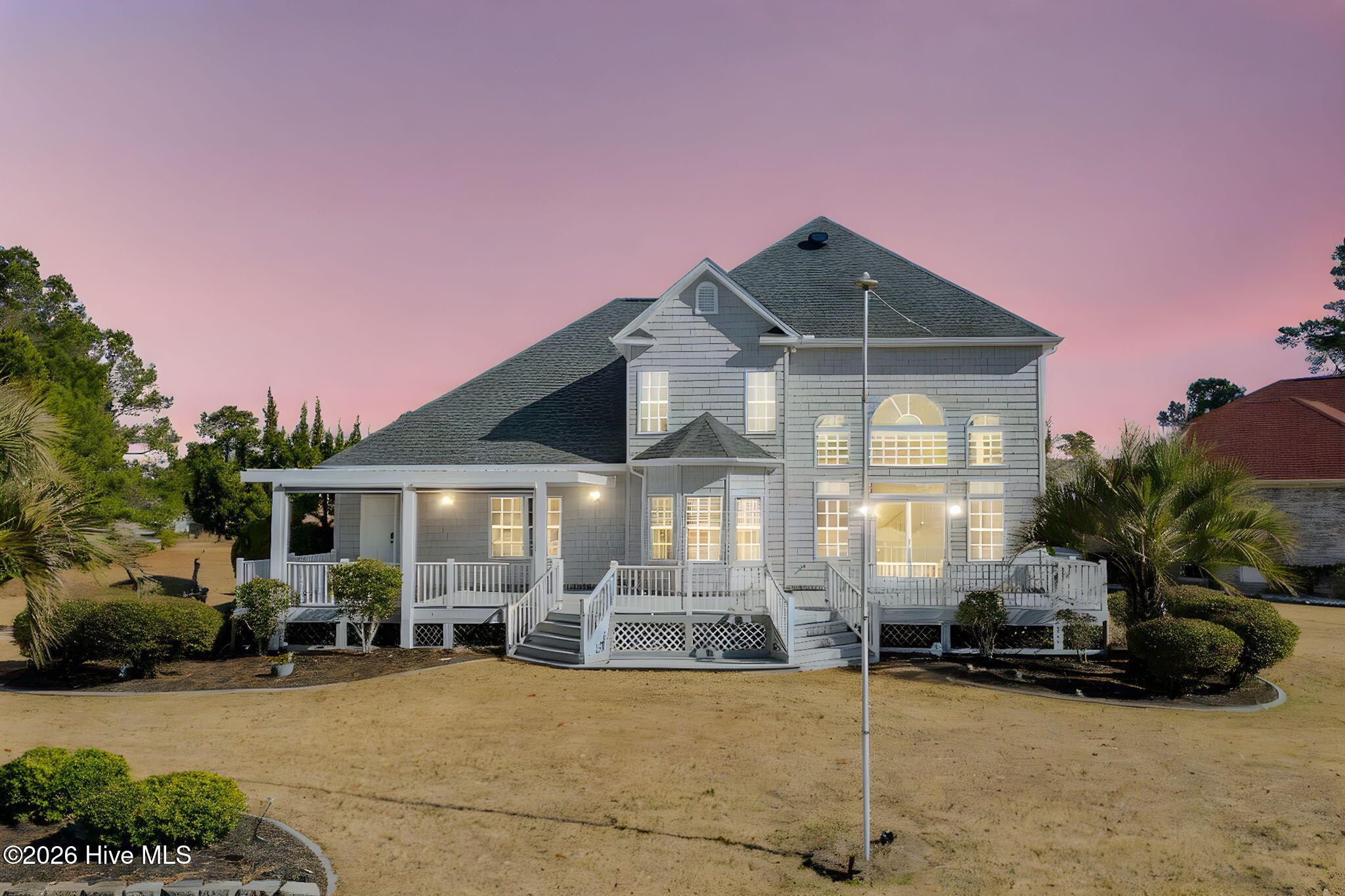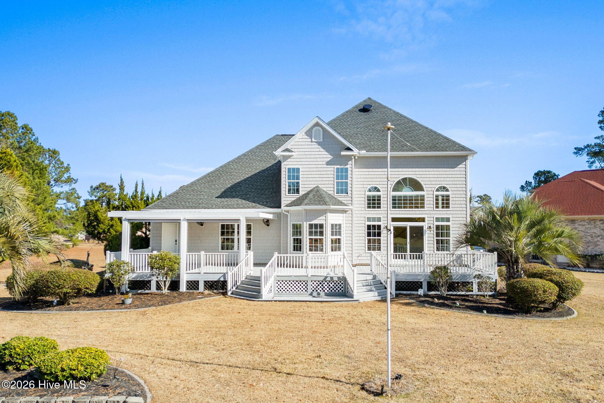 Custom built home on the Azaelea course showing both the #6 and #7 holes from tee to green! Whether entertaining on the expansive deck or under the electric pergola and electric solar shades enjoying a sunset cocktail and watching the golfers go by, feel the vacation paradise! This home has it all, primary bedroom on the main floor, office on main floor and 3 bedrooms upstairs with a bonus flex room for games, pool table or a man cave! Beautifull walk-in master shower, huge walk-in Master closet! All new kitchen appliances with a whole house generator for extra security. This home has the pond/golf course views and offers total serenity on a cul-de-sac, so no traffic! Come take a look and enjoy the best amenities from here to Wilmington for only a $100. /mo. HOA! Access to 27 holes of golf, tennis, pickleball, multiple pools and fitness centers, hot-tub, indoor heated saltwater pool, clubhouse, pro-shop and restaurant/bar is the complete package! 15 min to NMB, Shallotte, MB airport 45 min., or north to Wilmington in an hr., you have the best of both worlds and 15 min. to Sunset Beach. Seafood everywhere, this is a retirement dream! Manned front gate 24/7 with a person provides an added element of safety.