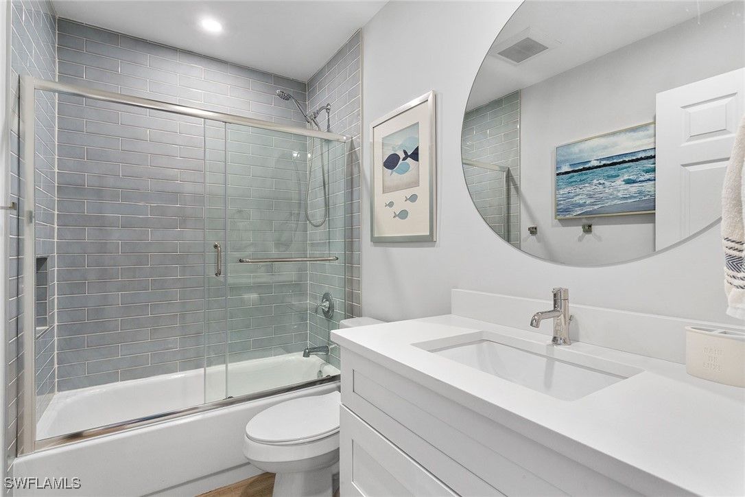 In the private oasis of Serendipity this beautifully renovated, turnkey, two bedrooms, two baths, furnished, coastal contemporary condominium in Pelican Bay is move-in ready. Within this spacious open-concept home is wide plank porcelain tile flooring with soaring vaulted ceilings. The kitchen has been totally remodeled including Adomus ¾-inch custom cabinetry, Pompeii quartz countertops, pantry, magnificent center island with counter seating and stainless-steel appliances. Each bath has been updated with high-end finishes which include high gloss ceramic backsplash, frameless ultra clear glass shower, fogless mirrors and walk-in closets. This gorgeous second-floor unit also offers plantation shutters throughout, LED lighting, remote-controlled window treatments and a large screened, glassed in lanai and access to two pools, spas and club clubhouse all surrounded by lush, beautifully landscaped grounds. This conveniently located condominium offers proximity to Artis-Naples/Baker Museum, Waterside Shops, two private beach club restaurants with beachside dining, chair and umbrella services, kayaks, sailboats, paddle boards, convenient tram service for easy access, and miles of nature trails great for biking, recreation and jogging. As a Pelican Bay resident, enjoy world-class amenities which feature three miles of private beachfront, a vibrant community center, art studio, card rooms, state-of-the-art fitness center, full-service fitness classes, wellness spa, world-class tennis with 18 Har-Tru courts and a new racquet center that will include eight additional Har-Tru courts and 20 pickleball courts. Pelican Bay offers the ultimate Naples lifestyle. Don't miss this rare opportunity!