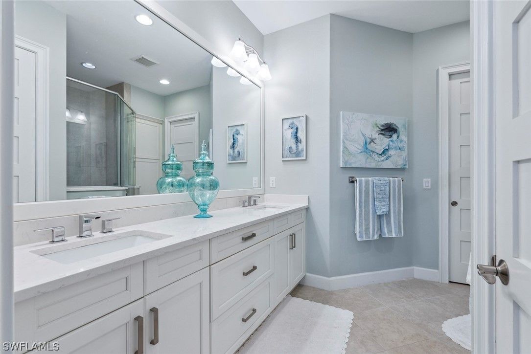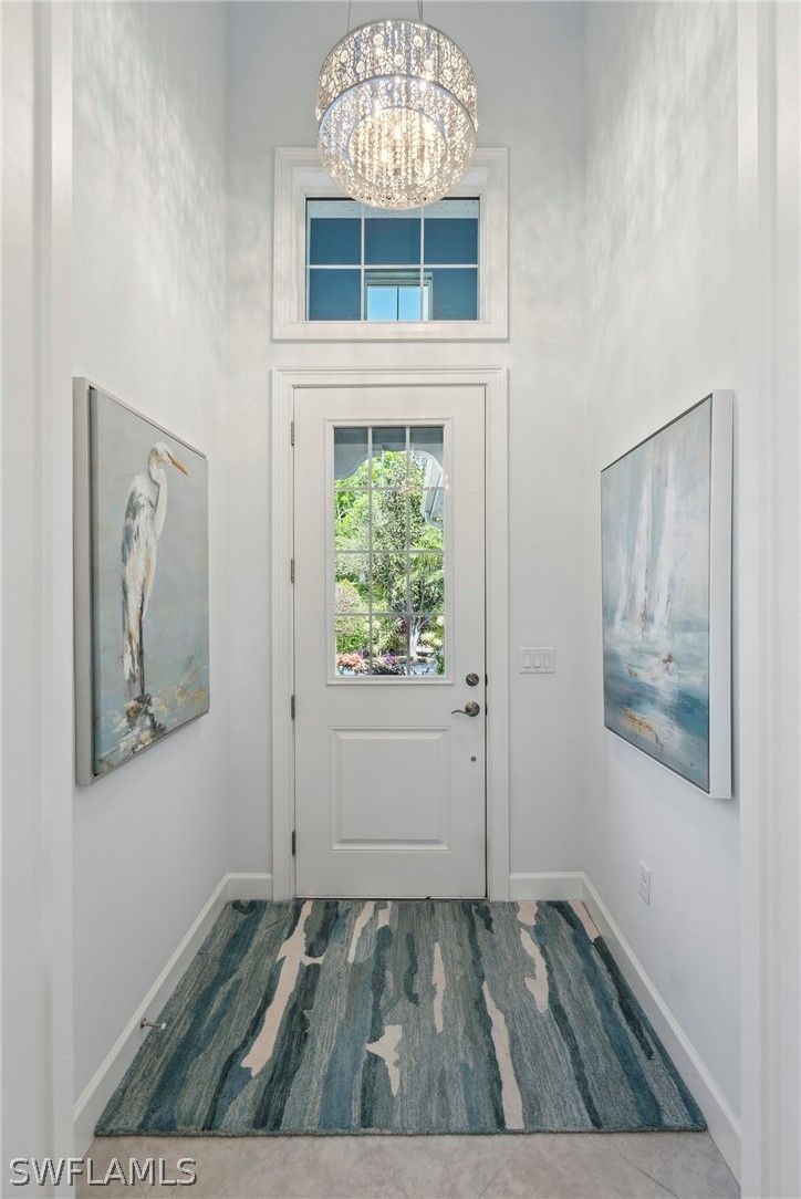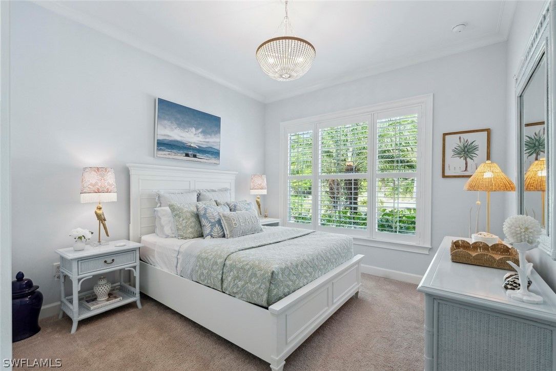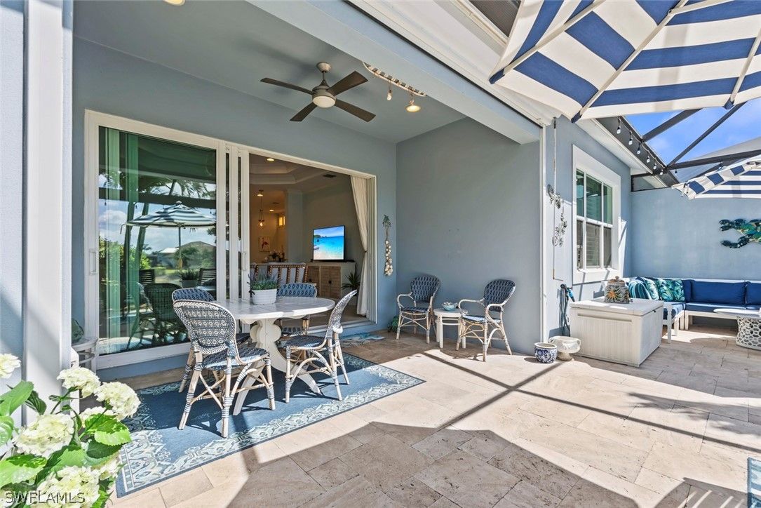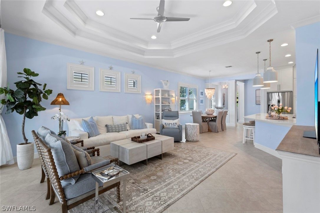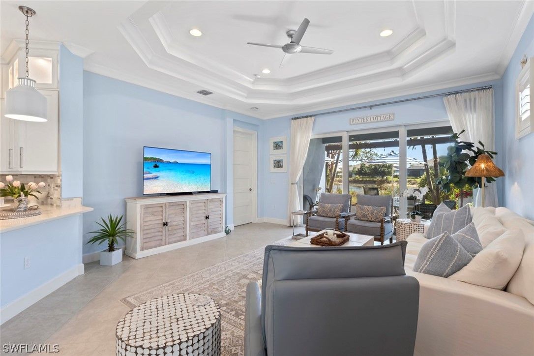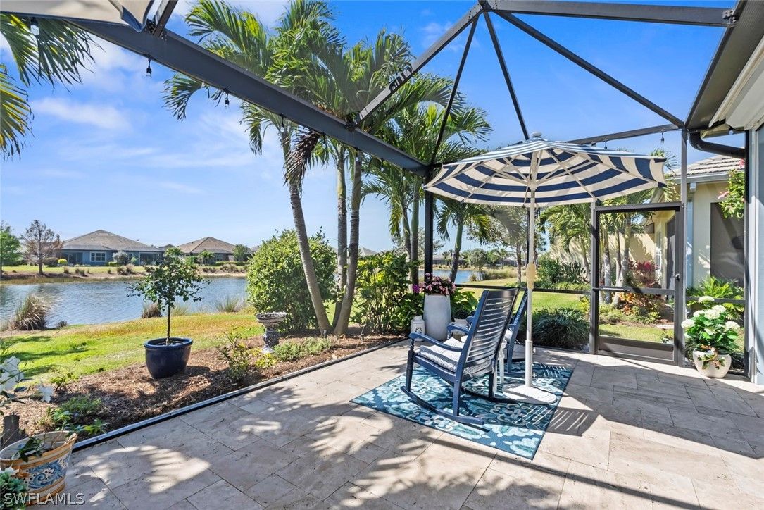 Welcome to 5690 Elbow Ave, one of the most beautifully maintained villas in the community. This Mimosa model offers both elegance and functionality, blending coastal-inspired design with modern upgrades. Immaculately kept and professionally decorated, this home boasts luxurious features, including a California-style walk-in closet, stacked bright white kitchen cabinets with recessed lighting, impact windows and doors, and tray ceilings with crown molding. Designer furnishings throughout create a sophisticated yet inviting atmosphere. The home is located on one of the most picturesque streets in the community, overlooking a serene lakefront setting. Enjoy seamless indoor and outdoor living with an expansive extended lanai, complete with a panoramic view and a screened cage, all surrounded by custom landscaping. Added peace of mind comes with remote-controlled hurricane shutters for security. Living in The Isles of Collier Preserve offers a wealth of amenities including 24-hour gated security, low HOA fees, and an impressive array of recreational options such as 8 miles of hiking and biking trails, tennis, pickleball, bocce, resort and lap pools, kayaking, a fitness center, dog park, and a restaurant. Plus, you'll be just minutes away from the botanical gardens, Bayview Park, Celebration Park, and the US Open Pickleball Championship Courts. For those who love shopping, dining, and enjoying beautiful beaches, downtown Naples is only a short drive away, with easy access to 3rd Street South and 5th Avenue for upscale shopping, fine dining, and entertainment. Don’t miss out on this exceptional home in one of the most sought-after communities in Naples!