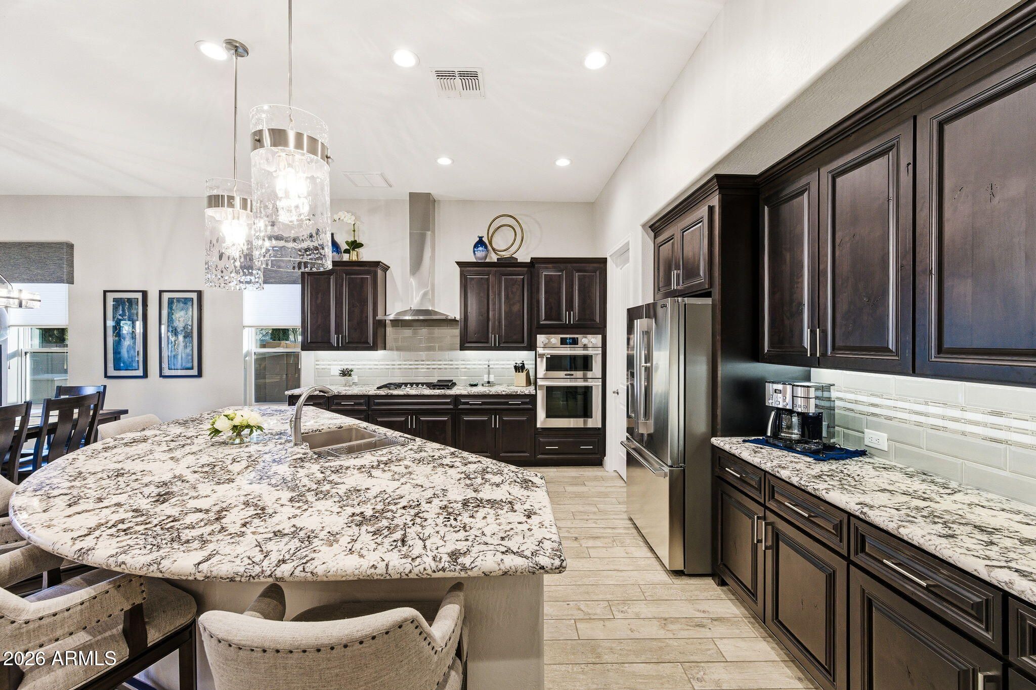 EXTENSIVELY UPGRADED VIENTA MODEL, Custom home completed in 2023! Stunning entertainers pool with elegant water features, patio fireplace, sun control blinds (lifetime warranty), pre-wired for hot tub, LOVELY CASITA, 340 glass windows, ''JS'' Home Theater (full home audio), exterior stucco repainted Dec. 2025, pre-wired for ELECTRIC vehicle. From the entry, beautiful floor tile, Chefs kitchen with upgrades, living room with custom wall unit. Full laundry cabinets and private front courtyard. All TV's and mounts included. Primary bedroom has custom closet. Built in gas BBQ with pergola. 3+ car extended garage, with cabinets and epoxy floor. . HOME IS BREATHTAKING! A must to see. One of Robsons finest. Over 2,700 sq feet of elegance. Back yard very private, enclosed with wall.