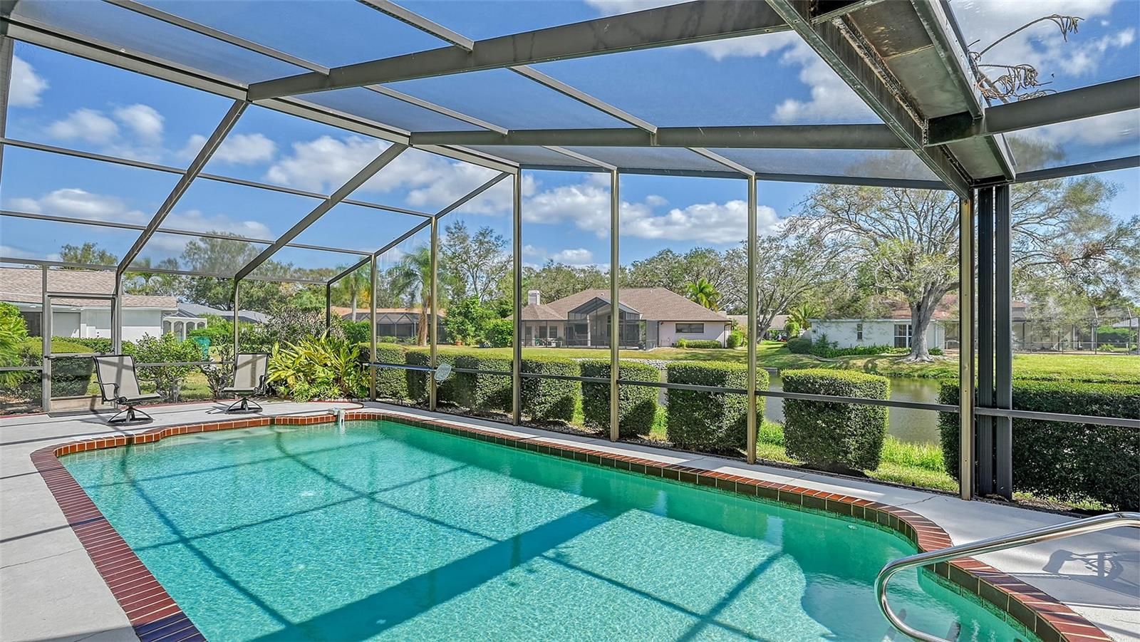 READY TO SELL! - MOTIVATED SELLERS WILL CONSIDER ALL OFFERS Move in condition home is ready for some future updates. Ample space to craft your private sanctuary. Welcome to Country Lakes, a quiet neighborhood, convenient to shopping and dining, and within the golf community of Palm Aire of Sarasota. This prime location is minutes from the UTC Mall, Sarasota-Bradenton International Airport and downtown Sarasota. Just a short trip to Lido Key, Siesta Key and Anna Maria Island beaches, this sprawling residence has a new roof (2023) and affords plenty of living space with magnificent lake views. With a living area of 3,260 square feet, this 3-bedroom, 3 bath home features large rooms including the inviting living room with a high, beamed ceiling and pocketing sliders, an office/den with French doors, and lots of storage. The kitchen opens to a beautiful family room with cathedral ceiling and a wood burning fireplace. The oversized screened lanai provides endless enjoyment of the outdoors and the full-size pool. (Pool heater new in 2022.) Optional membership in the Palm Aire Country Club offers amenities including two championship golf courses, tennis, pickleball, fitness center, dining and more. Take a look today!