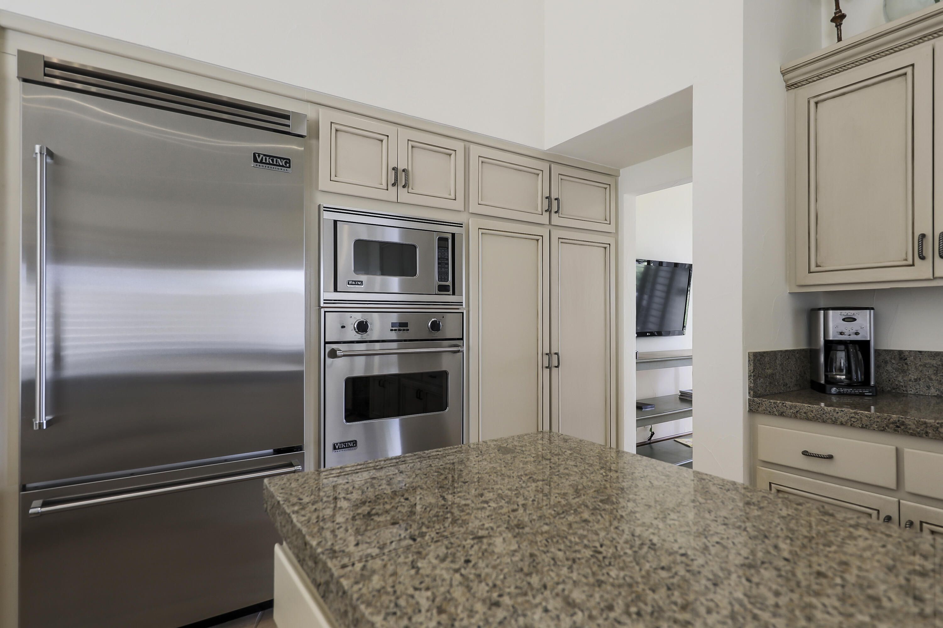 If you've been looking for that ''wow'' house that doesn't feel stuffy, this is it. We're talking about soaring ceilings, tons of natural light, and a literal front-row seat to the Nicklaus Private golf course. The kitchen is a total showstopper--it's been updated and features Viking appliances, granite countertops, double islands (yes, two!), so there's plenty of room for morning coffee, and wine night all at once. Plus, every single one of the 5 bathrooms has been remodeled, so you don't have to lift a finger. The best part? The primary suite is a total retreat. The ensuite is all marble with a huge steam shower--it's basically like having a private spa day every morning. Custom knotty alder doors and trim, crown moulding, brand new washer and dryer, Culligan water softener system and BBQ are more added features. Just mere steps to the many community pools. Unbeatable views of the fairway. This isn't just a house; it's a lifestyle. Come see it before someone else does!