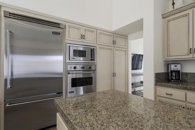 One of the best priced 4 bedroom home at PGA West. We're talking about soaring ceilings, tons of natural light, and a literal front-row seat to the Nicklaus Private golf course. Plenty of room to add a pool, spa and BBQ island. See photo.The kitchen is a total showstopper--it's been updated and features Viking appliances, granite countertops, double islands (yes, two!), so there's plenty of room for morning coffee, and wine night all at once. Plus, every single one of the 5 bathrooms has been remodeled, so you don't have to lift a finger. The best part? The primary suite is a total retreat. The ensuite is all marble with a huge steam shower--it's basically like having a private spa day every morning. Custom knotty alder doors and trim, crown moulding, brand new washer and dryer, Culligan water softener system and BBQ are more added features.Just mere steps to the many community pools. Unbeatable views of the fairway.This isn't just a house; it's a lifestyle. Come see it before someone else does!