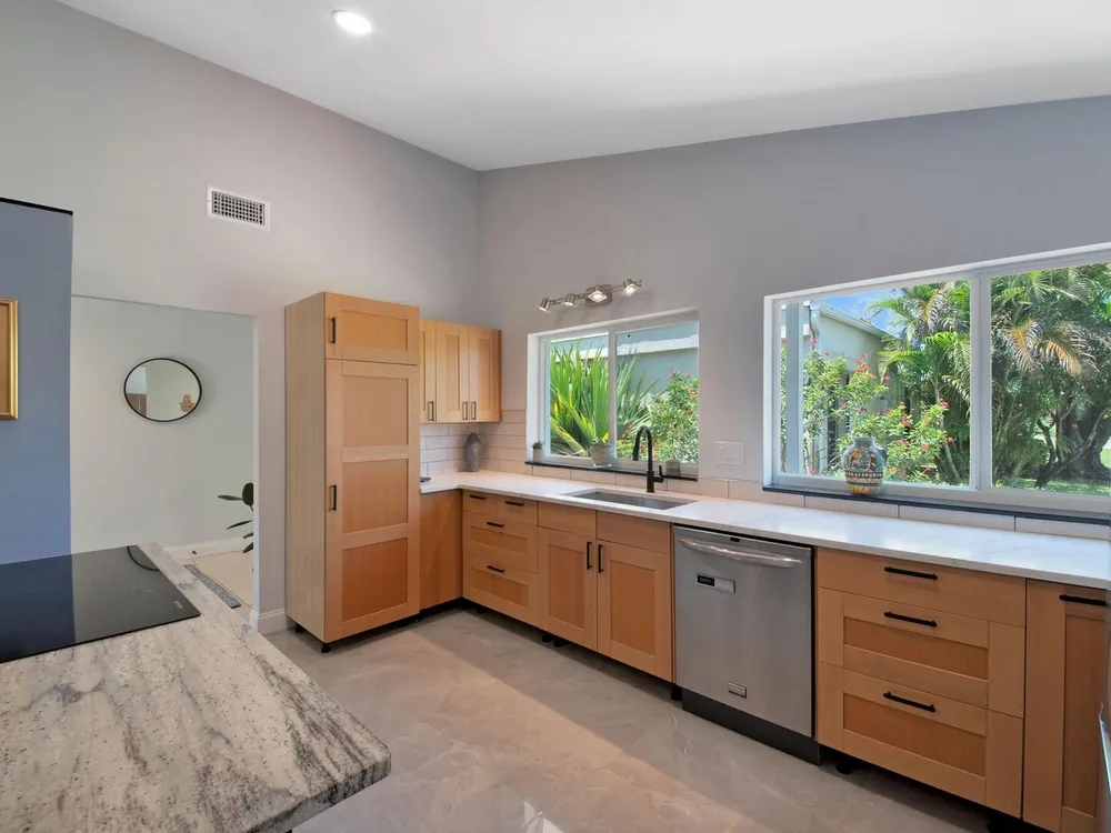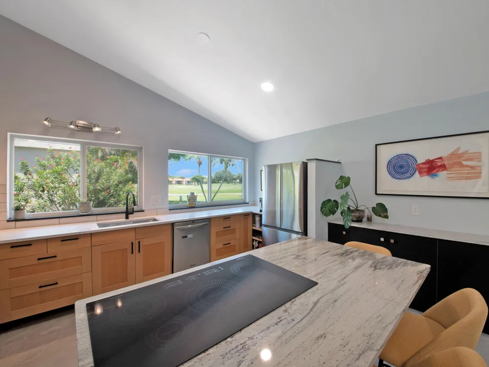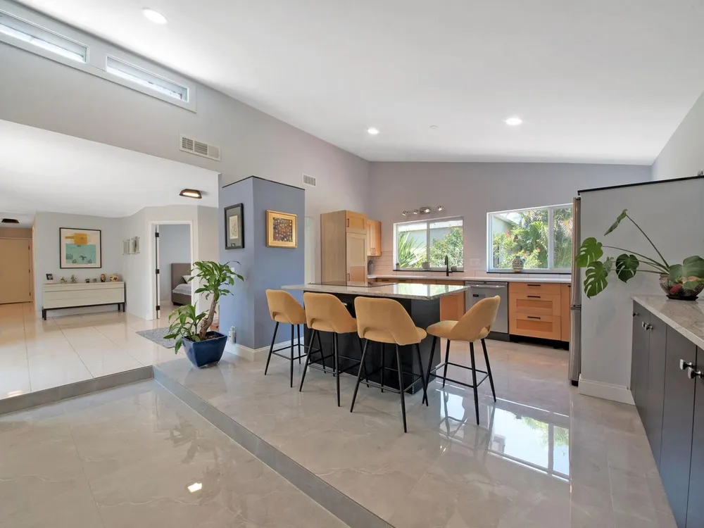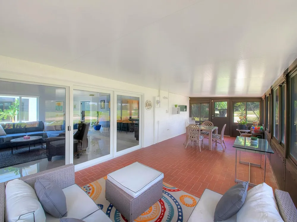 Welcome to your personal haven in a serene Florida location! Nestled in a peaceful cul-de-sac, this vibrant and modern home offers 3 bright bedrooms and 2 stylish bathrooms, ensuring the ultimate in comfortable living. As you step inside, you'll be greeted by smooth walls and a vaulted ceiling that amplify the airy feel. Natural light floods through impact windows, highlighting the neutral flooring. The home stays perfectly comfortable with a newer 4-ton Rheem AC and features an enclosed sunroom with its own A/C, perfect for relaxation. The kitchen is a chef's delight, showcasing quartz countertops, a chic tile backsplash, and wood cabinets with pots and pan drawers. It features a new refrigerator and an induction cooktop, making it a modern culinary space