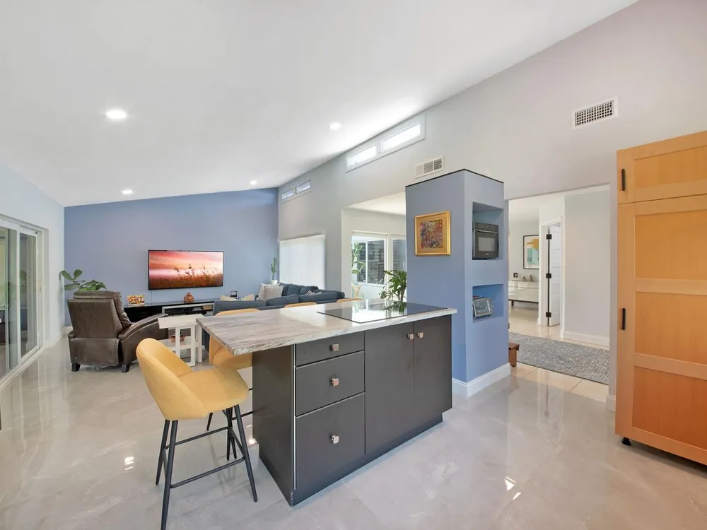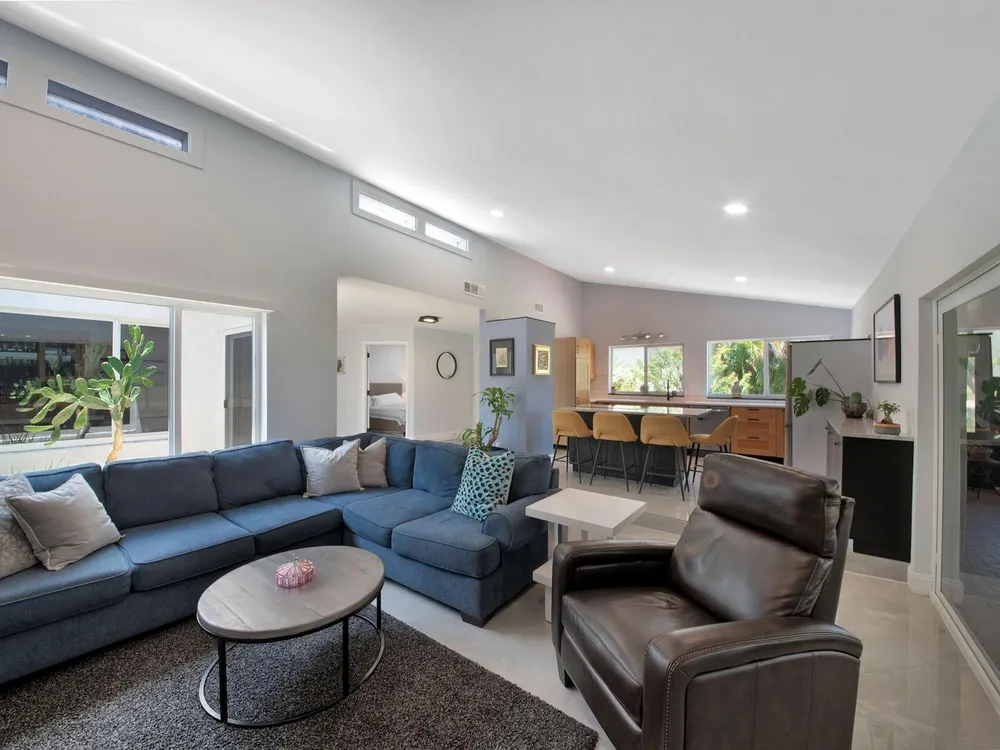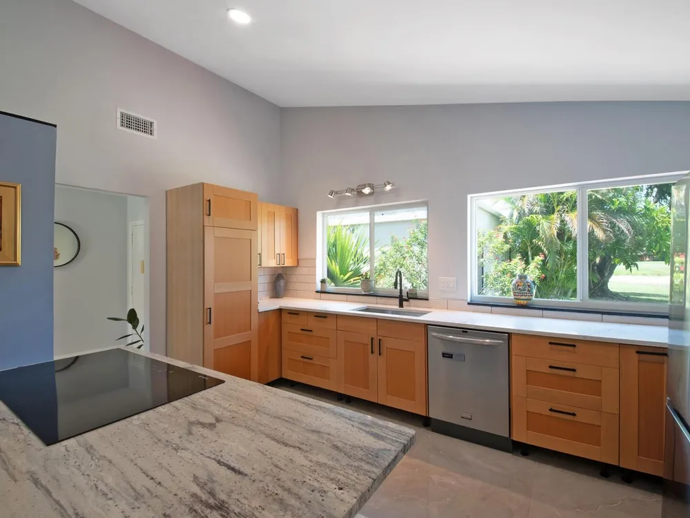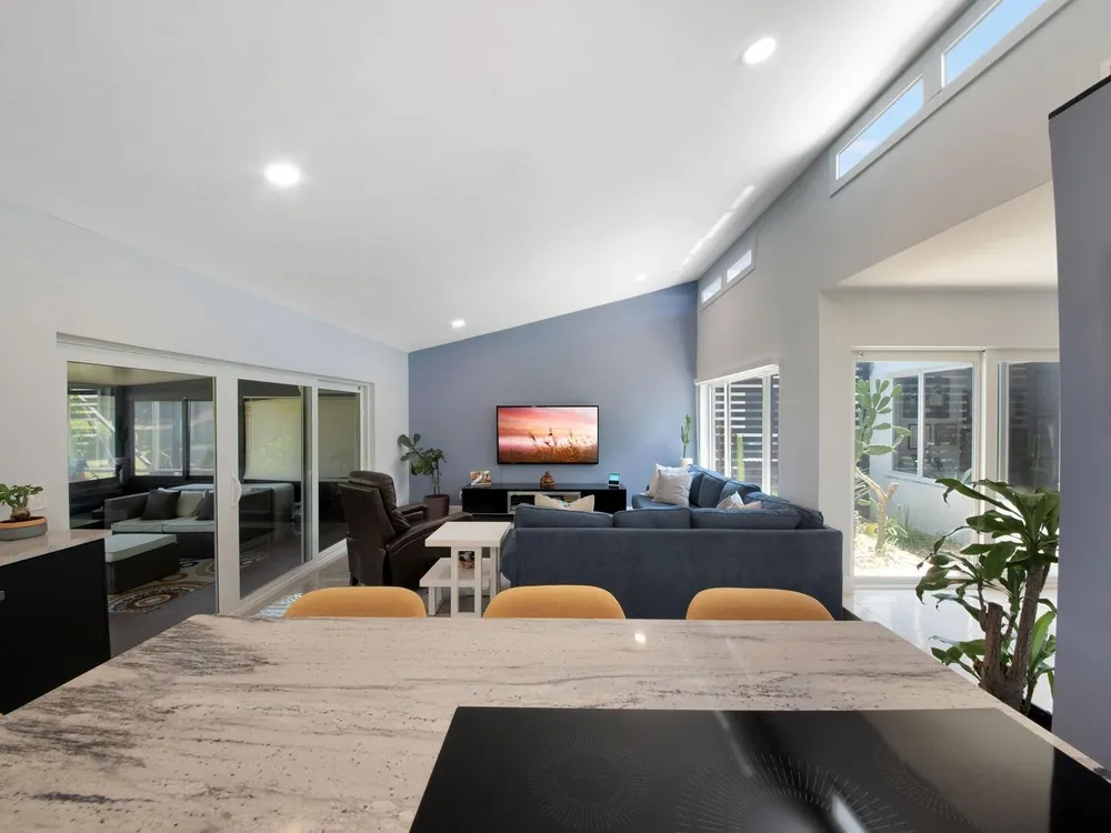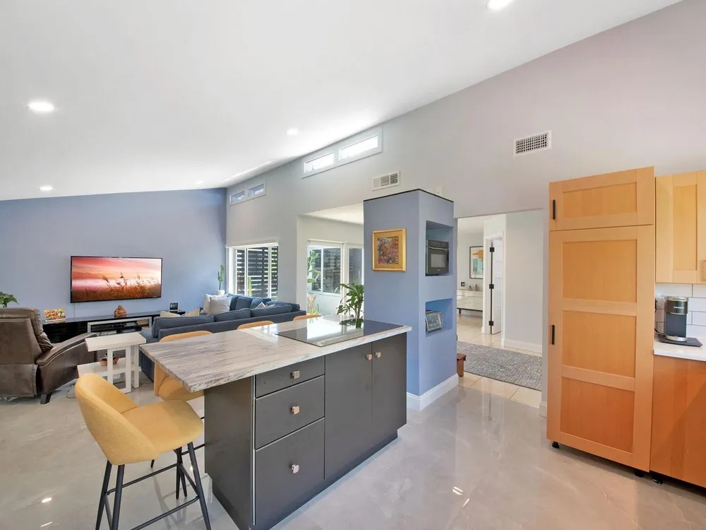 Welcome to your personal haven in a serene Florida location! Nestled in a peaceful cul-de-sac, this vibrant and modern home offers 3 bright bedrooms and 2 stylish bathrooms, ensuring the ultimate in comfortable living. As you step inside, you'll be greeted by smooth walls and a vaulted ceiling that amplify the airy feel. Natural light floods through impact windows, highlighting the neutral flooring. The home stays perfectly comfortable with a newer 4-ton Rheem AC and features an enclosed sunroom with its own A/C, perfect for relaxation. The kitchen is a chef's delight, showcasing quartz countertops, a chic tile backsplash, and wood cabinets with pots and pan drawers. It features a new refrigerator and an induction cooktop, making it a modern culinary space